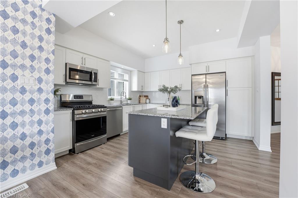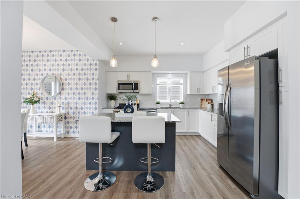 Tucked away on a quiet crescent in the desirable Pinehurst Community of Paris, 1 Bawcutt Crescent offers a rare blend of modern living and peaceful surroundings. This Lancaster model features 4 bedrooms, 3.5 bathrooms, and over 2,600 sq. ft. of finished living space. From the moment you step inside, the home feels bright and welcoming. A spacious foyer leads into an open-concept main floor with 9′ ceilings and finished with luxury vinyl plank flooring that seamlessly guides you through the living, dining, and kitchen spaces. The kitchen is both stylish and highly functional, showcasing a large centre island, sleek white cabinetry, and quality appliances (including a gas stove) – perfectly suited for everyday living and entertaining alike. The dining area opens to the backyard through patio doors, making indoor-outdoor living effortless. Enjoy relaxing on your back deck and soak up the beautiful sunsets this area is known for. Upstairs, you’ll find three generously sized bedrooms and two full bathrooms. The primary suite is bright and inviting, featuring a 3pc ensuite, walk-in closet, large windows, and a custom accent wall adding texture and a refined, upscale feel. The additional bedrooms and 4pc bath on this level provide flexible space for family, guests, or a home office. And let’s not forget the FULLY FINISHED BASEMENT! Offering luxury vinyl plank flooring, a cozy recreation room, an additional bedroom, a 3-piece bathroom, and a stylishly finished laundry room – ideal for extra living space, extended family, overnight guests, or multi-generational living. The home’s Craftsman elevation is highlighted by upgraded brickwork and a two-door double garage, adding both charm and everyday practicality. Located just minutes from schools, parks, shopping, and the vibrant downtown core – where the Grand and Nith Rivers meet – this home also offers convenient access to the 401 and 403, making it an excellent option for commuters. 1 Bawcutt Crescent truly is MOVE-IN-READY!