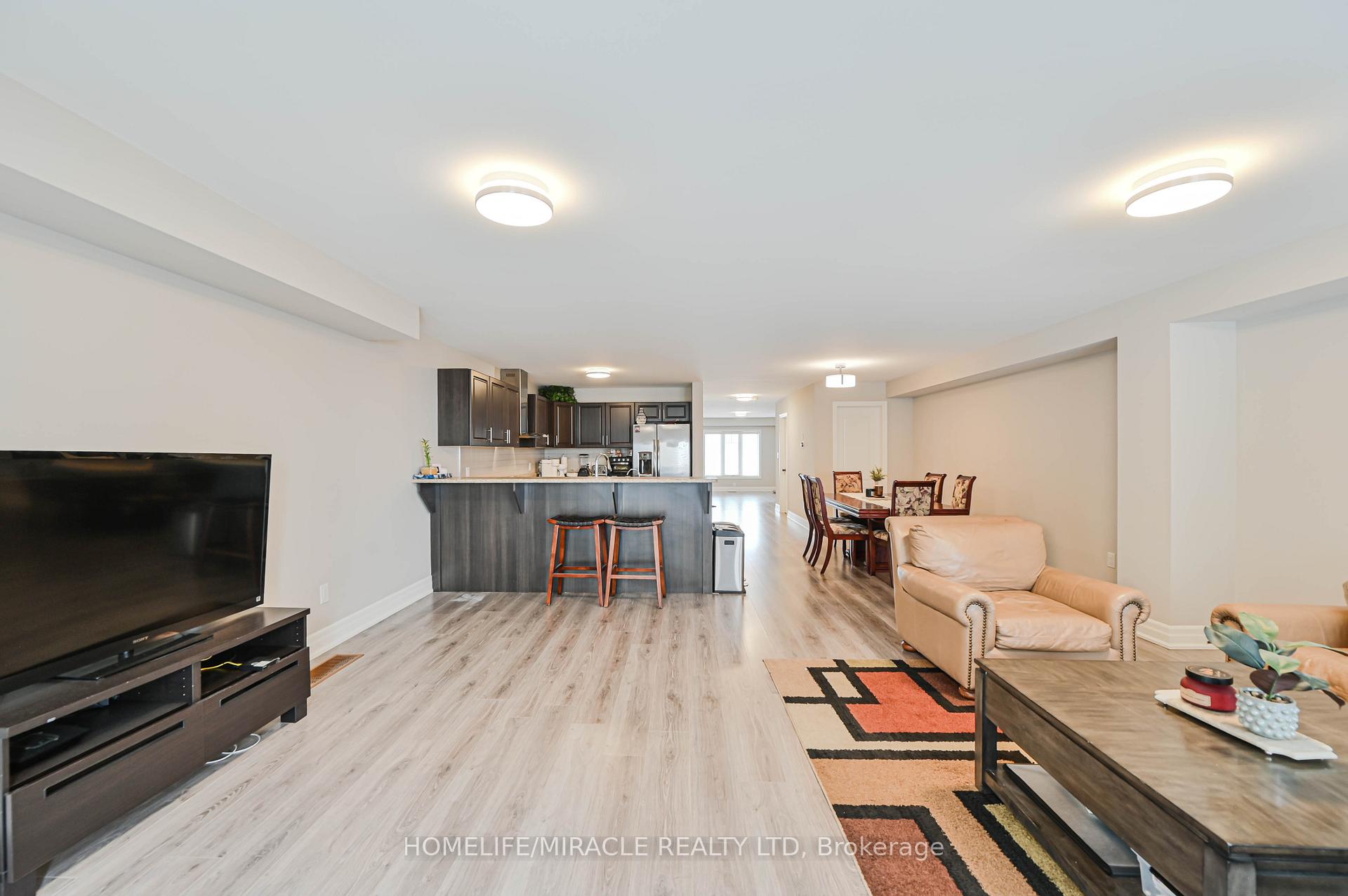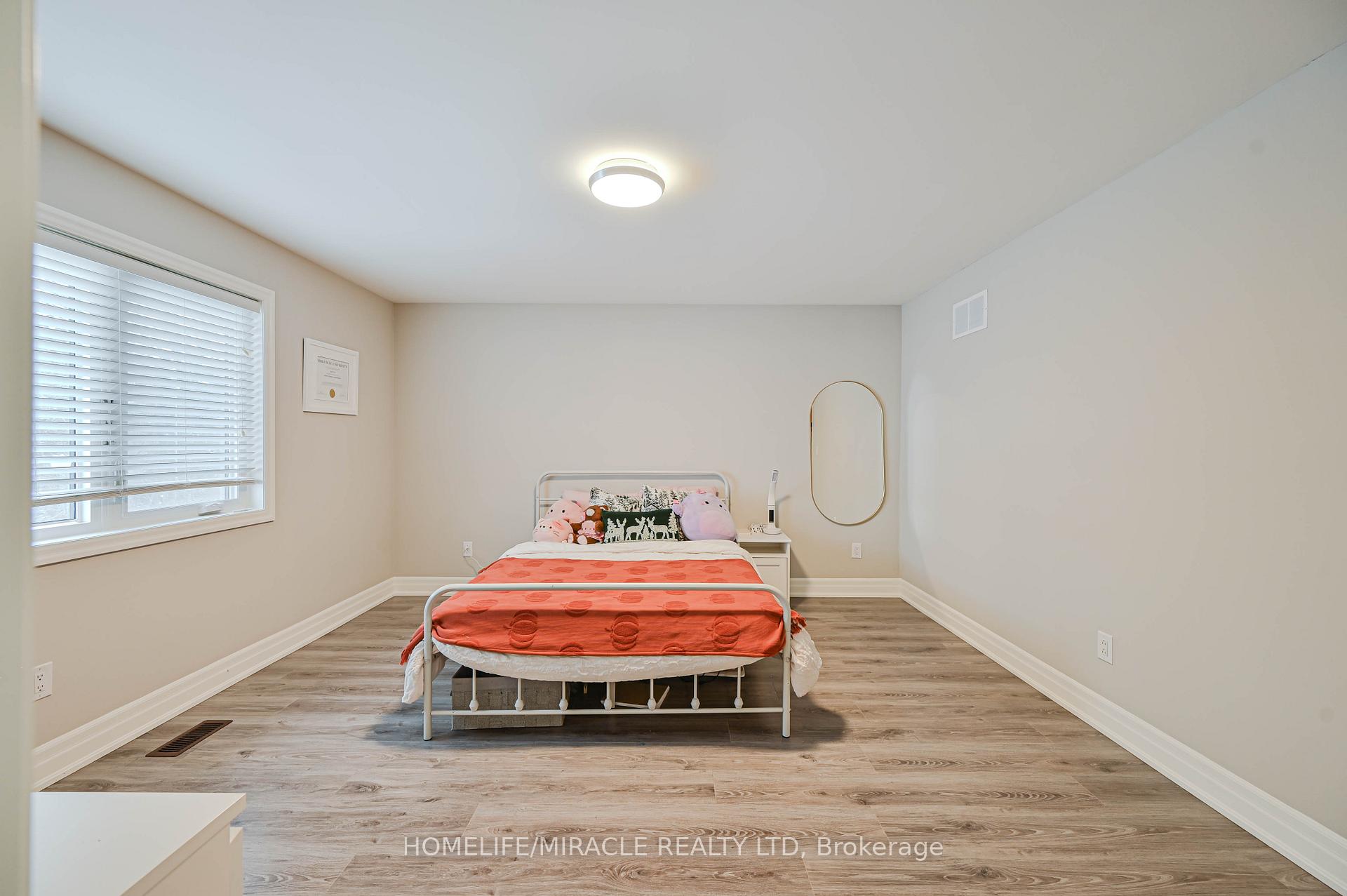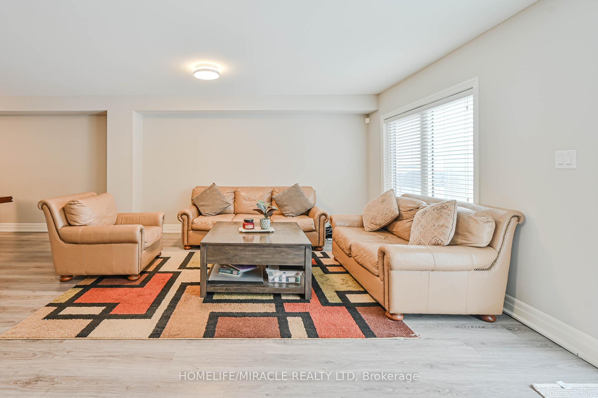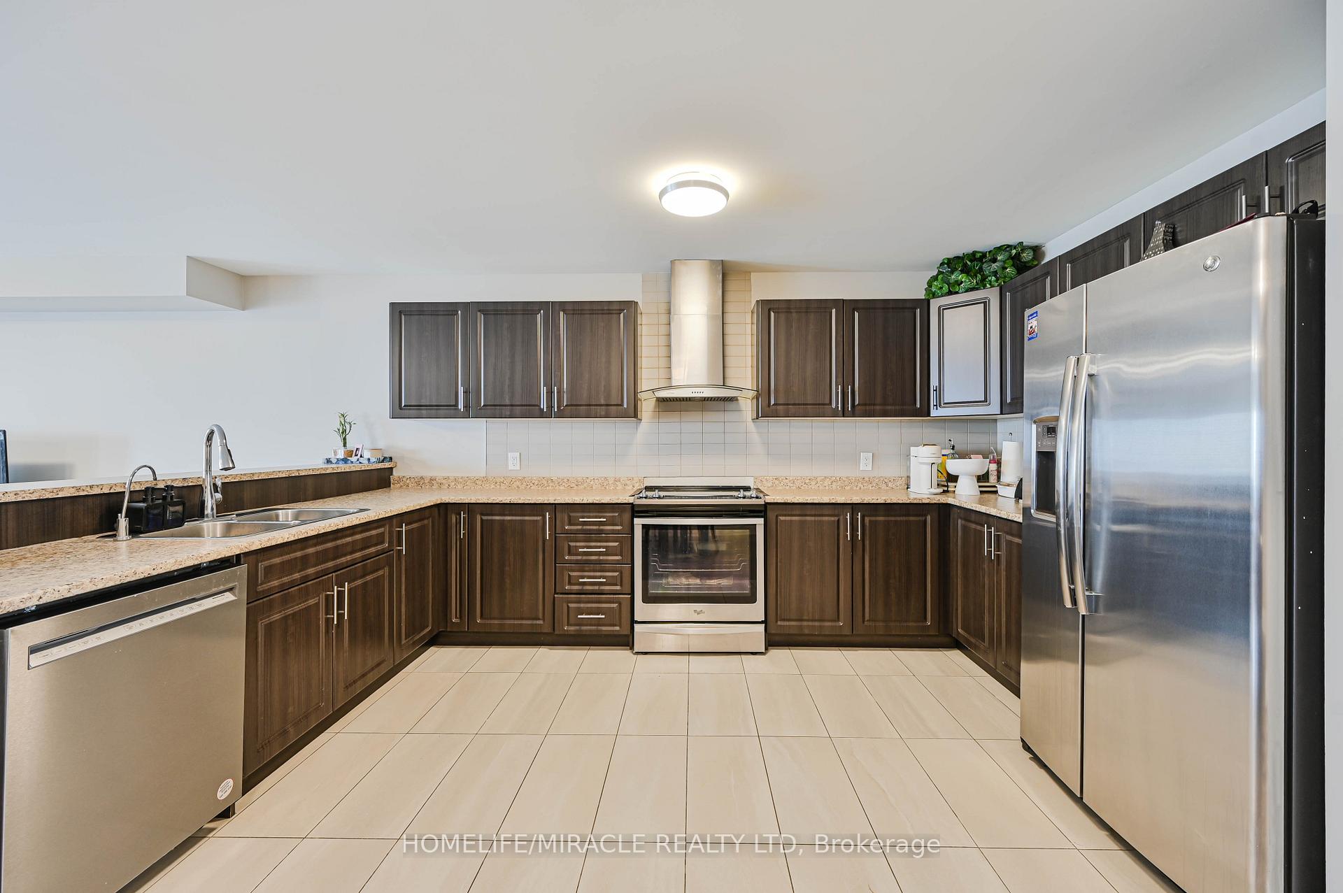 Absolutely gorgeous 2576 Square feet with finished basement freehold end-unit townhouse that feels like a semi with side yard. Four spacious bedrooms on 2nd level, 3 bedrooms with W/I closet. Laundry on 2nd level as well for your convenience and another in basement. This residence is thoughtfully designed for comfort and style. The open-concept main floor is bright and inviting with access to deck from family room and laminate floors that flow seamlessly throughout. Fresh paint add to the homes charm. Water softener installed for whole house with extra water filter installed in main kitchen. The finished lower level offers a versatile space with a fifth bedroom with W/I closet. Separate Laundry, Kitchen with fridge stove and dishwasher in basement ideal for extended family, guests or extra income. Enjoy the convenience of direct garage and backyard access from the basement. Located in walk in distance to shopping, school, parks public transit and GO Station.