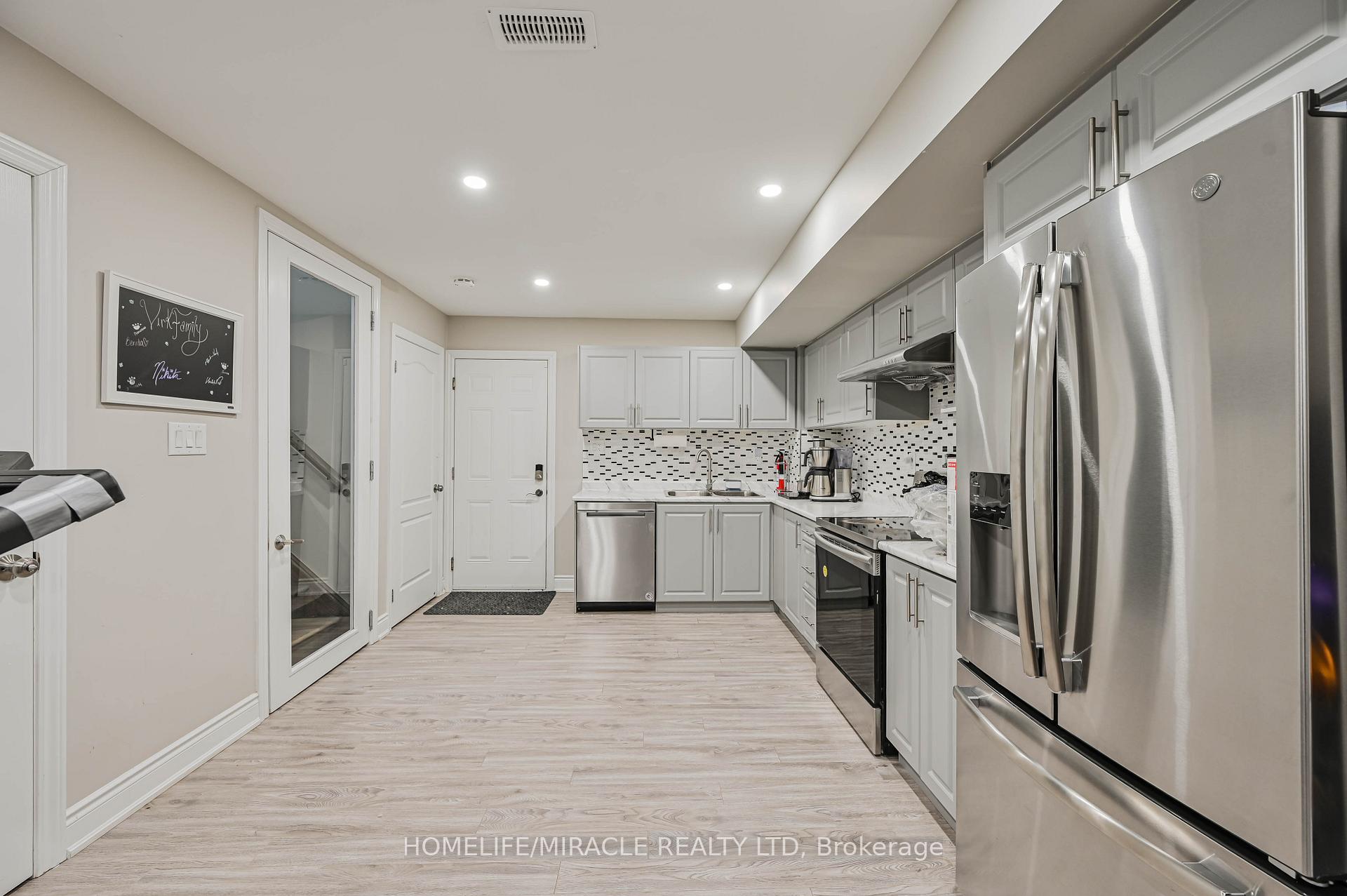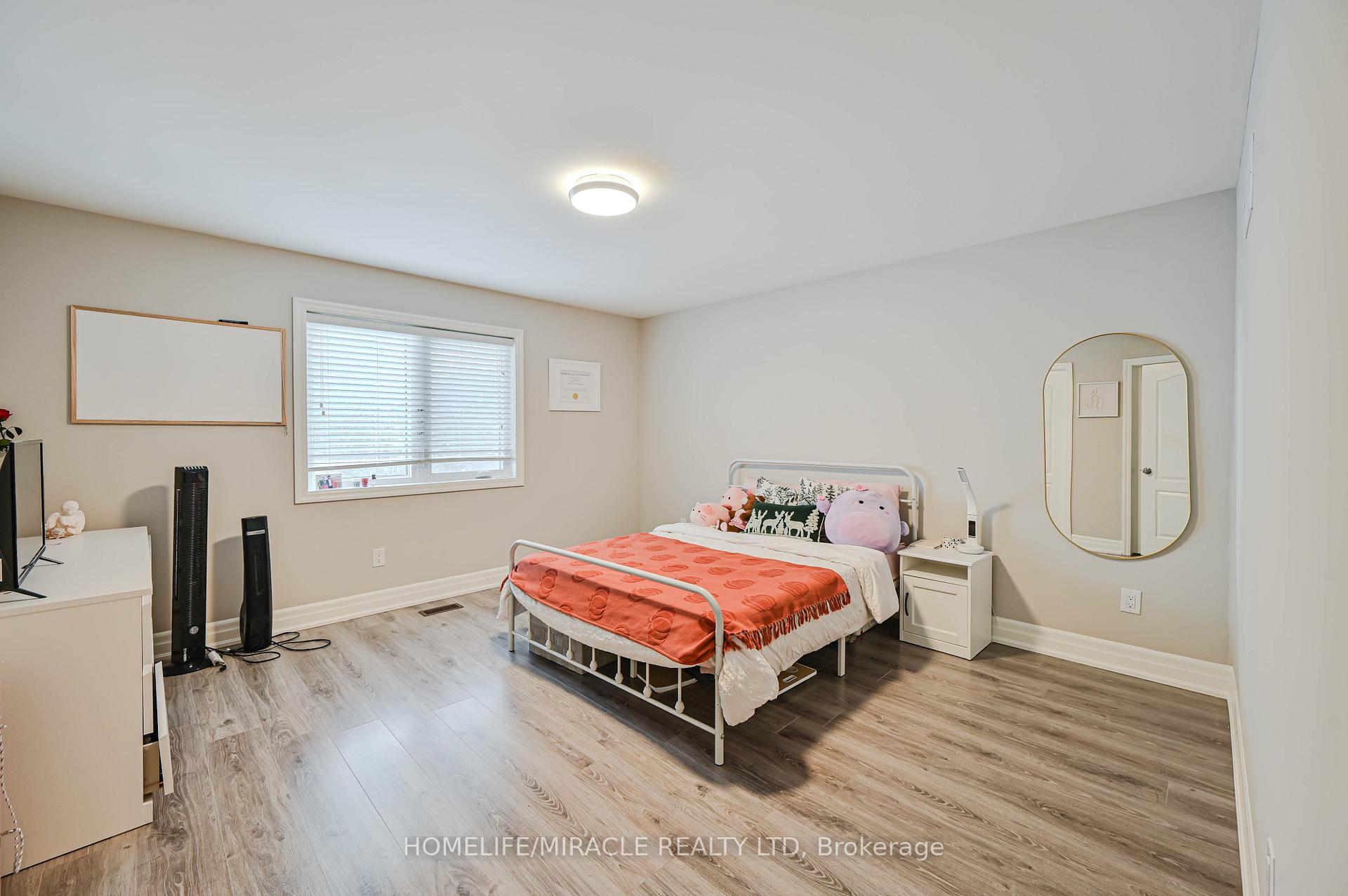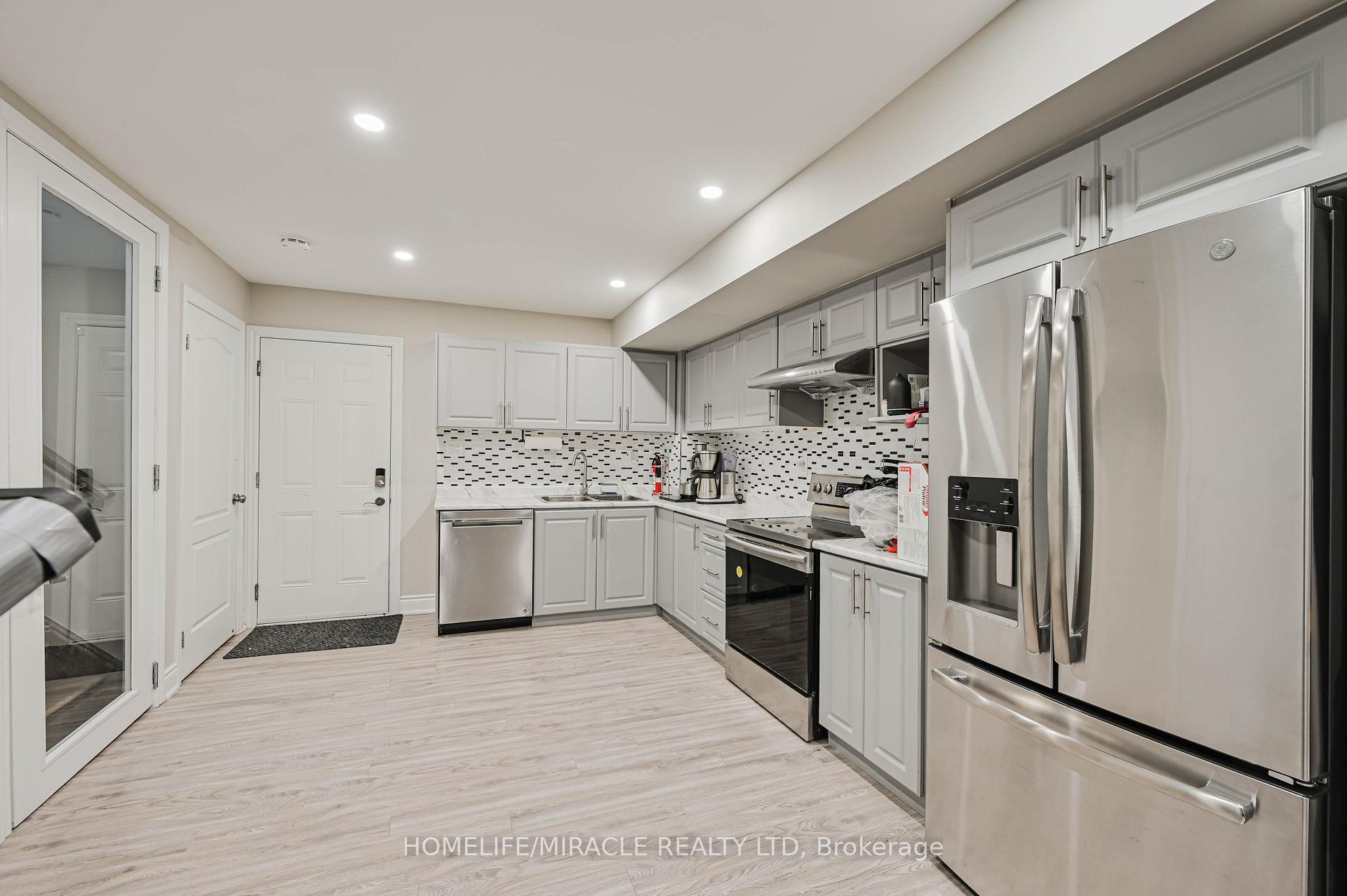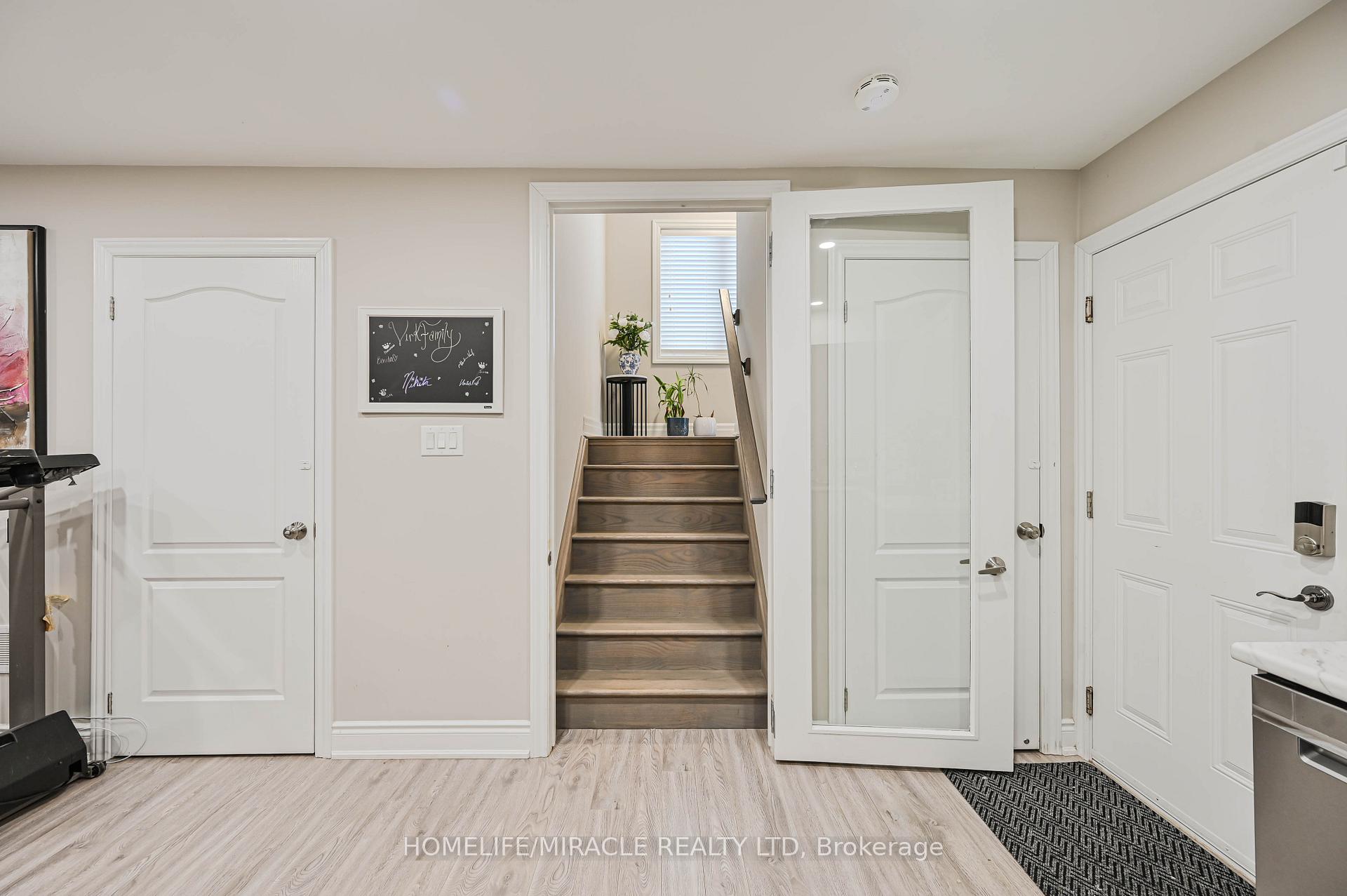 Absolutely gorgeous 2576 Square feet with finished basement freehold end-unit townhouse that feels like a semi with side yard. Four spacious bedrooms on 2nd level, 3 bedrooms with W/I closet. Laundry on 2nd level as well for your convenience and another in basement. This residence is thoughtfully designed for comfort and style. The open-concept main floor is bright and inviting with access to deck from family room and laminate floors that flow seamlessly throughout. Fresh paint add to the homes charm. Water softener installed for whole house with extra water filter installed in main kitchen. The finished lower level offers a versatile space with a fifth bedroom with W/I closet. Separate Laundry, Kitchen with fridge stove and dishwasher in basement ideal for extended family, guests or extra income. Enjoy the convenience of direct garage and backyard access from the basement. Located in walk in distance to shopping, school, parks public transit and GO Station.