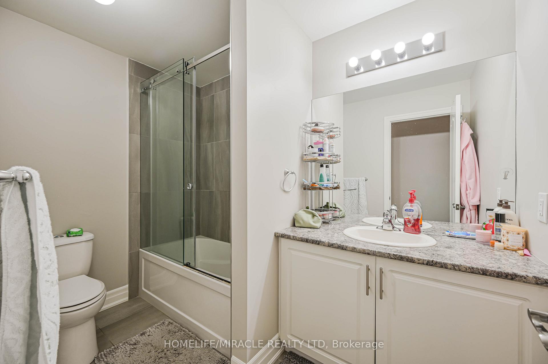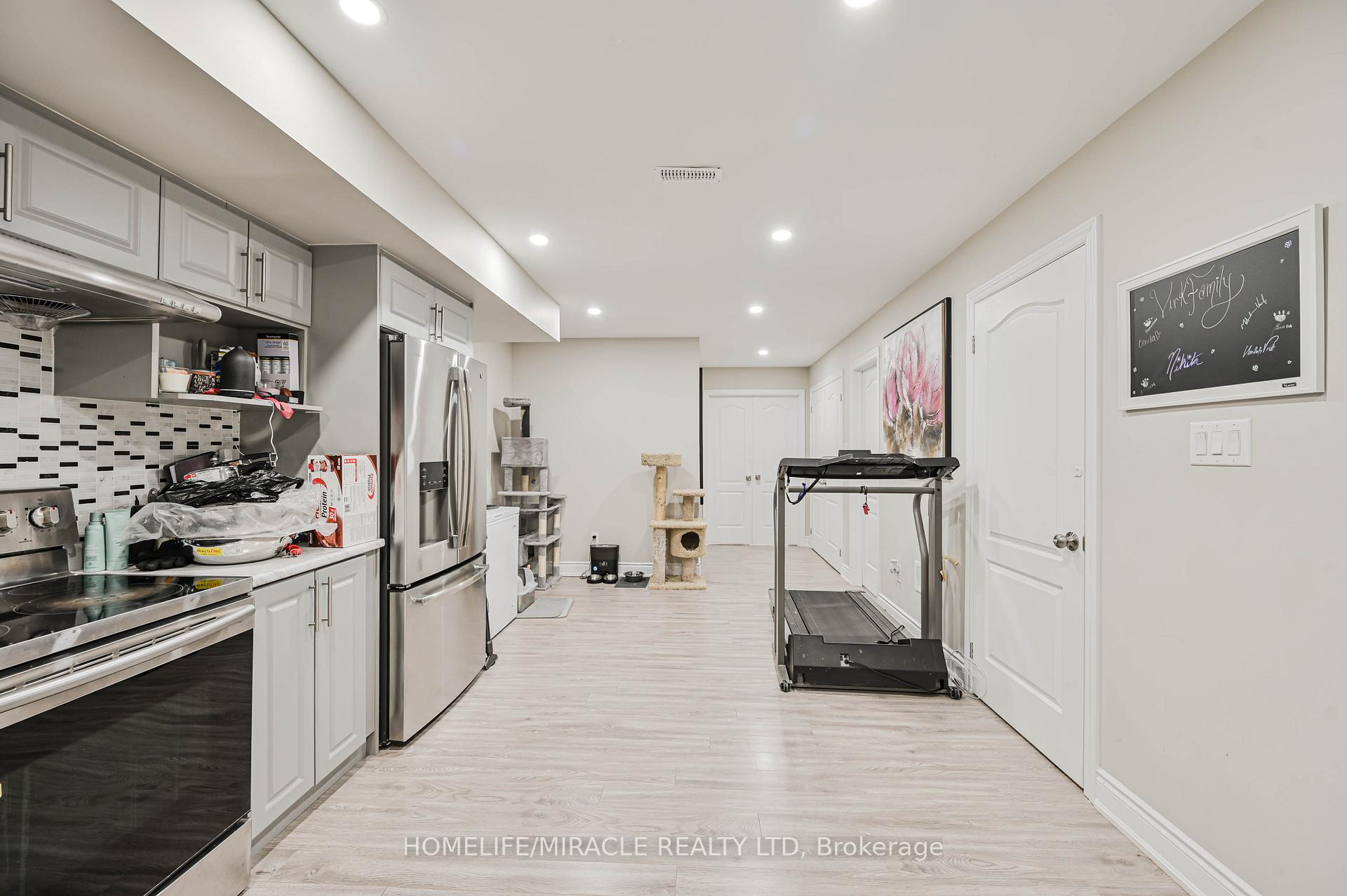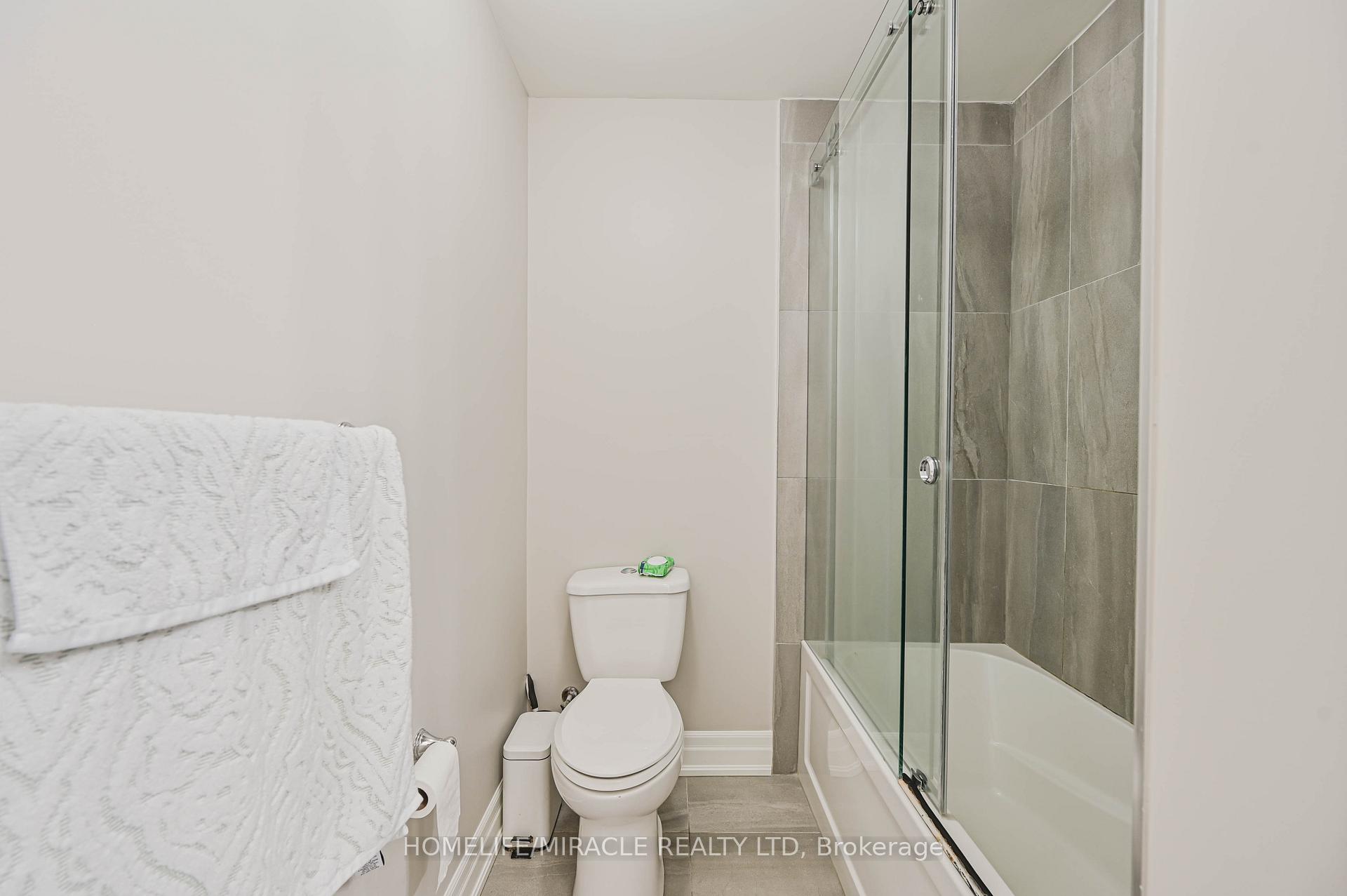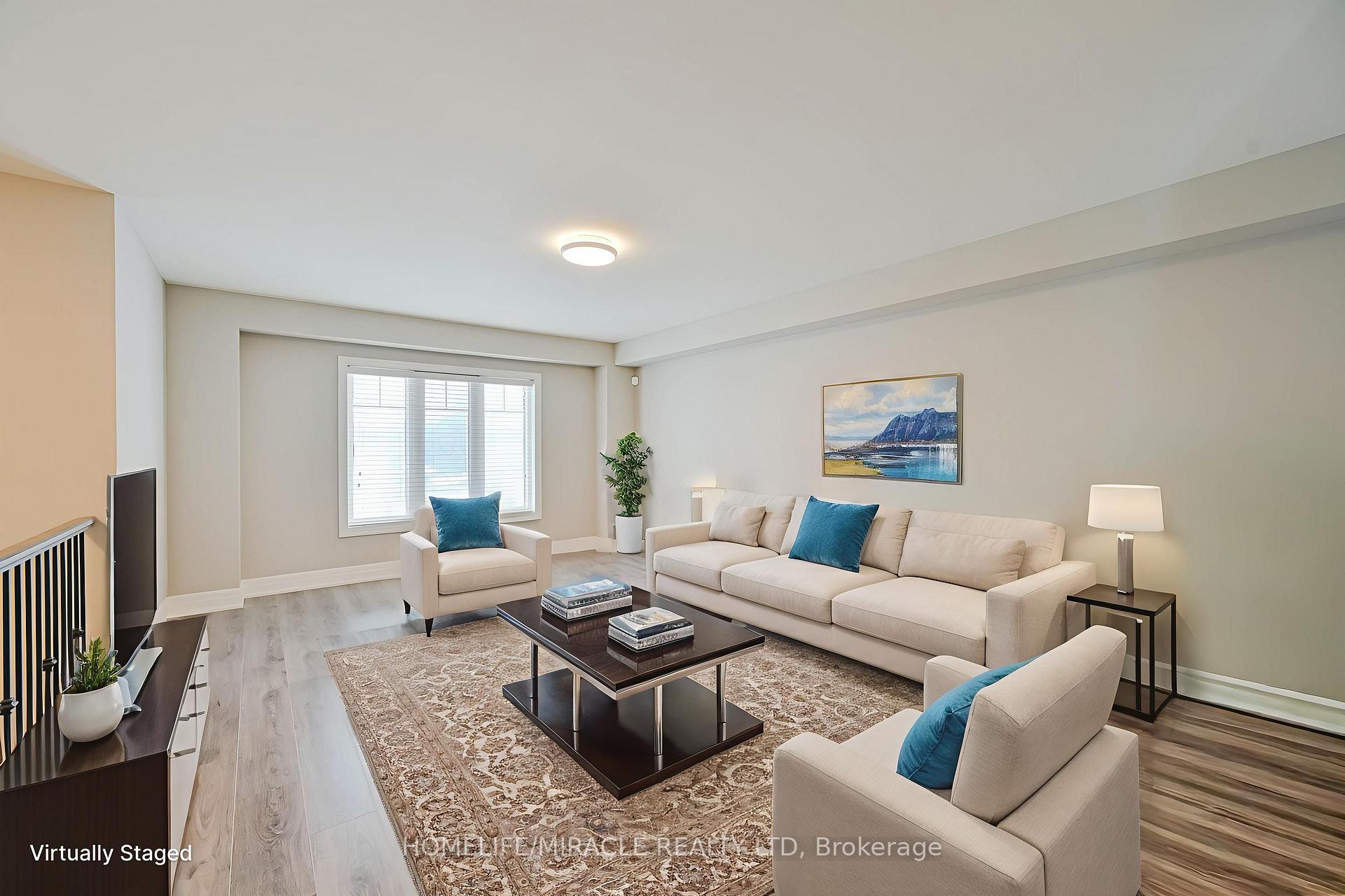 Absolutely gorgeous 2576 Square feet with finished basement freehold end-unit townhouse that feels like a semi with side yard. Four spacious bedrooms on 2nd level, 3 bedrooms with W/I closet. Laundry on 2nd level as well for your convenience and another in basement. This residence is thoughtfully designed for comfort and style. The open-concept main floor is bright and inviting with access to deck from family room and laminate floors that flow seamlessly throughout. Fresh paint add to the homes charm. Water softener installed for whole house with extra water filter installed in main kitchen. The finished lower level offers a versatile space with a fifth bedroom with W/I closet. Separate Laundry, Kitchen with fridge stove and dishwasher in basement ideal for extended family, guests or extra income. Enjoy the convenience of direct garage and backyard access from the basement. Located in walk in distance to shopping, school, parks public transit and GO Station.