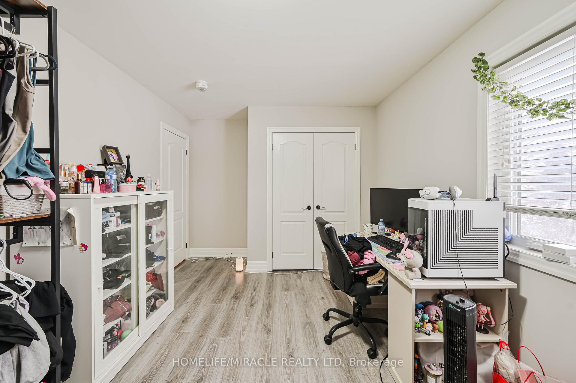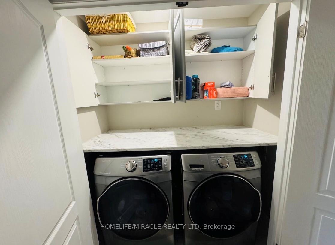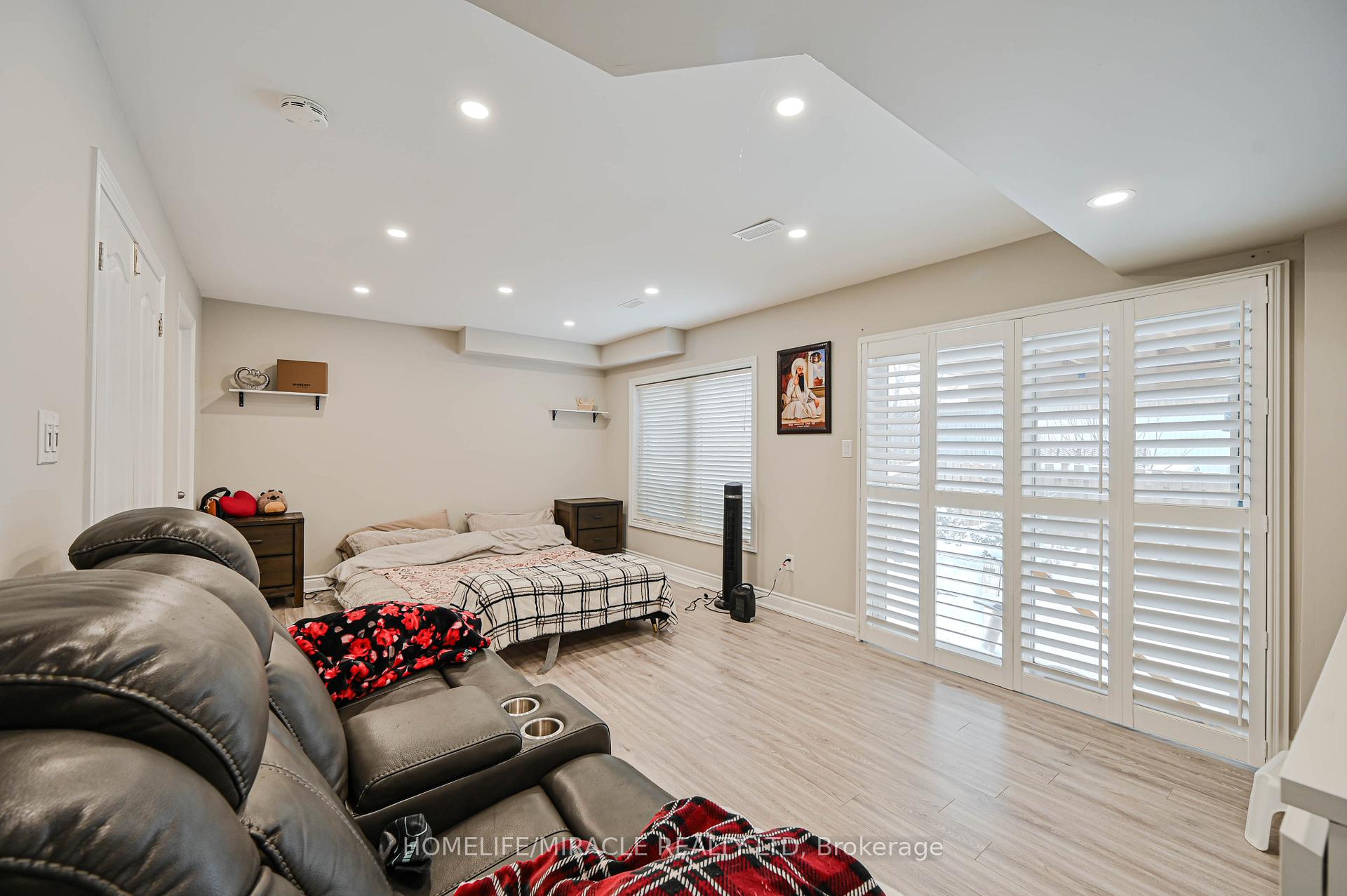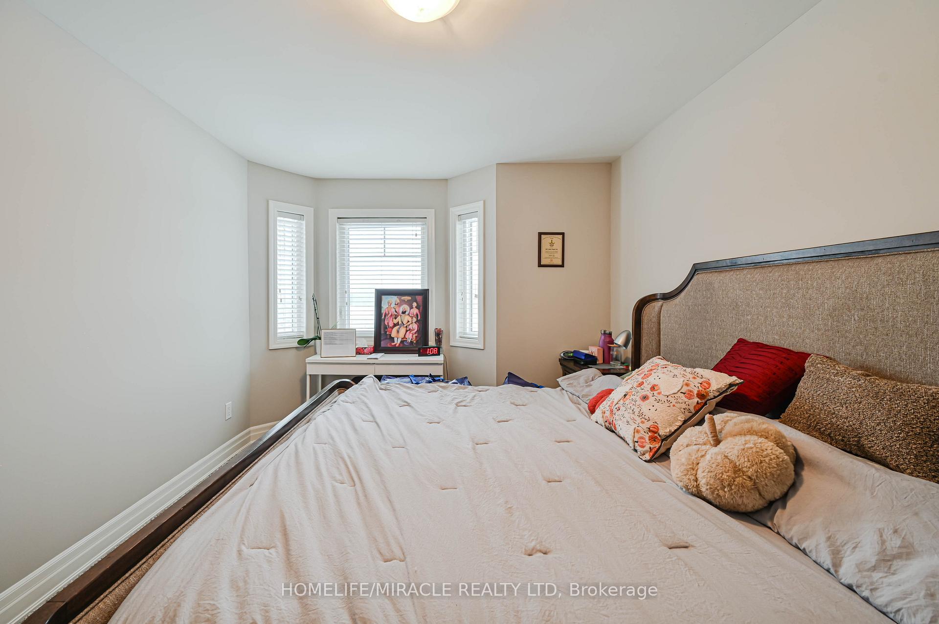 Absolutely gorgeous 2576 Square feet with finished basement freehold end-unit townhouse that feels like a semi with side yard. Four spacious bedrooms on 2nd level, 3 bedrooms with W/I closet. Laundry on 2nd level as well for your convenience and another in basement. This residence is thoughtfully designed for comfort and style. The open-concept main floor is bright and inviting with access to deck from family room and laminate floors that flow seamlessly throughout. Fresh paint add to the homes charm. Water softener installed for whole house with extra water filter installed in main kitchen. The finished lower level offers a versatile space with a fifth bedroom with W/I closet. Separate Laundry, Kitchen with fridge stove and dishwasher in basement ideal for extended family, guests or extra income. Enjoy the convenience of direct garage and backyard access from the basement. Located in walk in distance to shopping, school, parks public transit and GO Station.