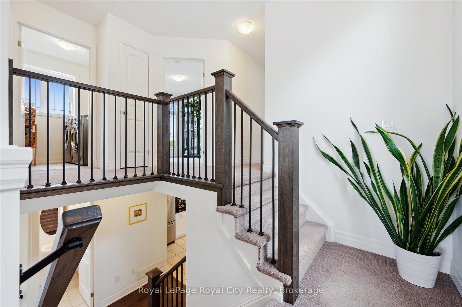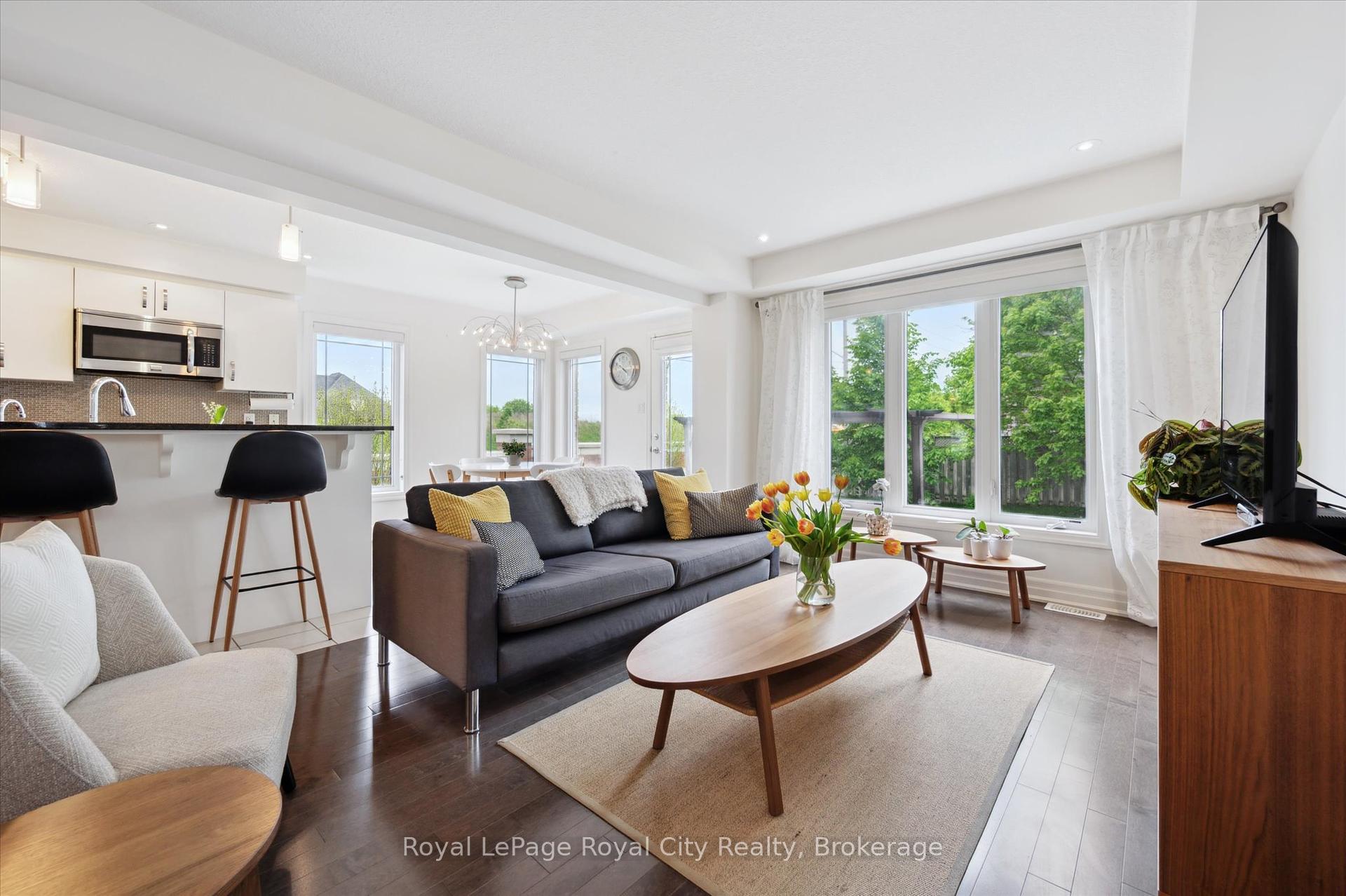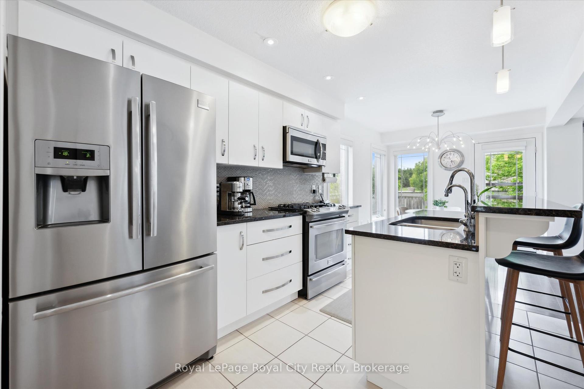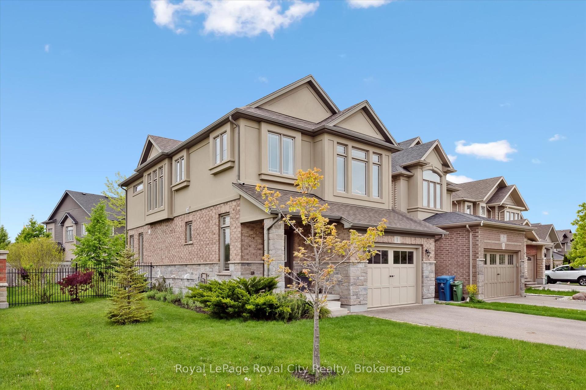 Beautifully Updated & Move-In Ready in Guelphs South End! This stunning home sits on a large corner lot in the sought-after Pineridge/Westminster Woods neighbourhood. With over 1,800 sqft of living space plus a finished basement, this 3+1 bedroom, 4-bathroom gem offers style, space, and comfort for the modern family. From the moment you arrive, the curb appeal stands out. A stone and stucco exterior, manicured landscaping, and a welcoming covered entry set the tone. Inside, youll find rich hardwood floors, granite countertops, recessed lighting, and thoughtful designer touches throughout. The bright, open-concept main floor is perfect for daily living and entertaining. Large windows and French doors bring in natural light and lead to a private patio and oversized fenced yard – perfect for kids, pets, and summer BBQs. The kitchen features a central island with bar seating, a walk-in pantry, and a sunny breakfast nook. Upstairs, a bonus family room offers flexible space for a home office, playroom, or cozy lounge. The spacious primary suite includes a walk-in closet and a spa-like ensuite with a soaker tub. Two additional bedrooms share a 4-piece bath, and the second-floor laundry room adds convenience. The finished basement offers even more flexibility, with a rec room (or optional fourth bedroom) and a stylish 3-piece bath with floating vanity. Set in a family-friendly neighbourhood close to schools, parks, trails, shopping, and the 401 – this home truly has it all!