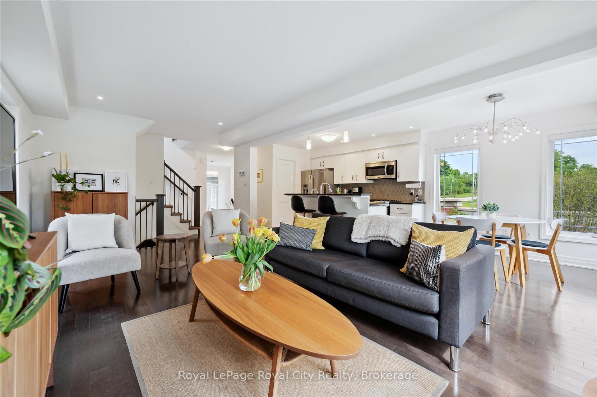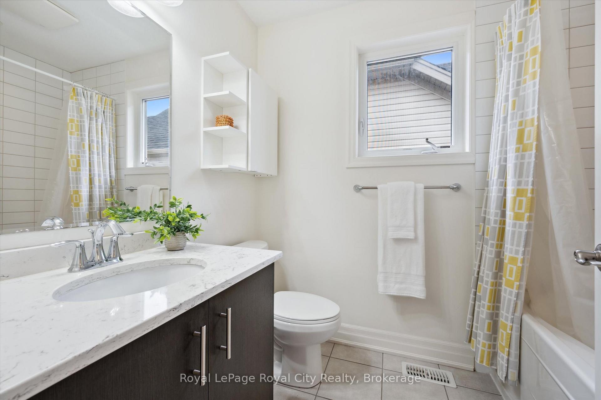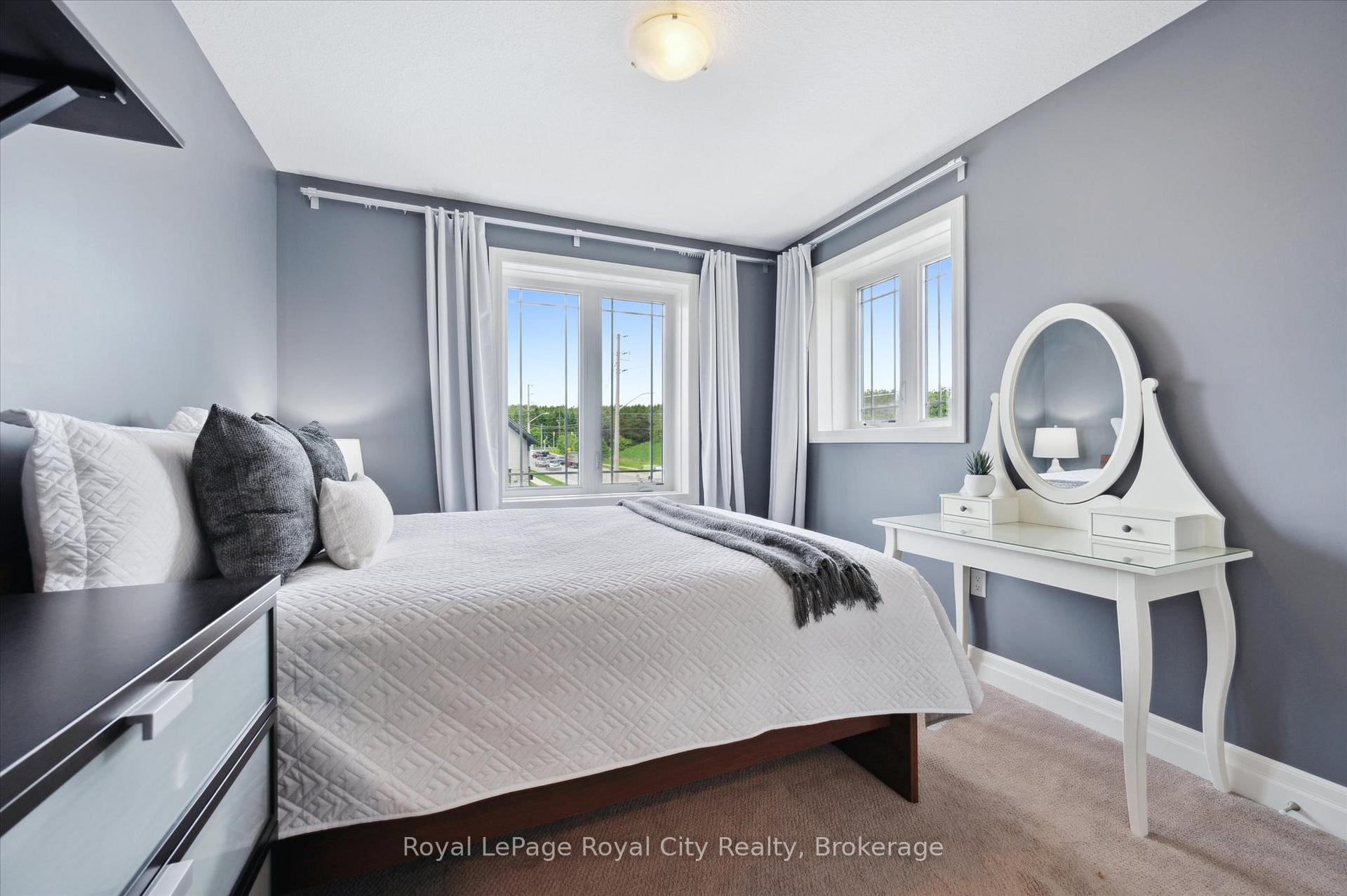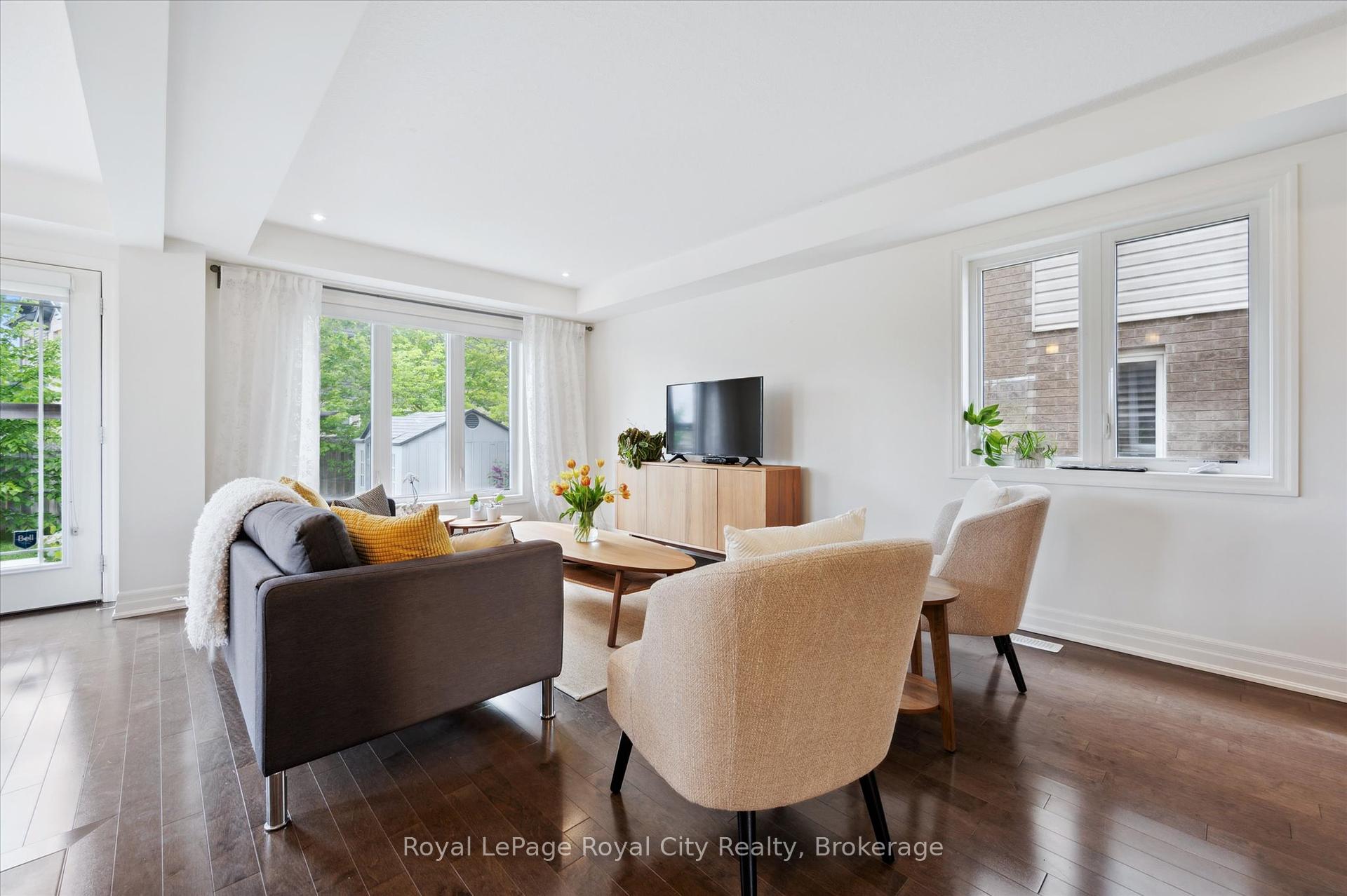 Beautifully Updated & Move-In Ready in Guelphs South End! This stunning home sits on a large corner lot in the sought-after Pineridge/Westminster Woods neighbourhood. With over 1,800 sqft of living space plus a finished basement, this 3+1 bedroom, 4-bathroom gem offers style, space, and comfort for the modern family. From the moment you arrive, the curb appeal stands out. A stone and stucco exterior, manicured landscaping, and a welcoming covered entry set the tone. Inside, youll find rich hardwood floors, granite countertops, recessed lighting, and thoughtful designer touches throughout. The bright, open-concept main floor is perfect for daily living and entertaining. Large windows and French doors bring in natural light and lead to a private patio and oversized fenced yard – perfect for kids, pets, and summer BBQs. The kitchen features a central island with bar seating, a walk-in pantry, and a sunny breakfast nook. Upstairs, a bonus family room offers flexible space for a home office, playroom, or cozy lounge. The spacious primary suite includes a walk-in closet and a spa-like ensuite with a soaker tub. Two additional bedrooms share a 4-piece bath, and the second-floor laundry room adds convenience. The finished basement offers even more flexibility, with a rec room (or optional fourth bedroom) and a stylish 3-piece bath with floating vanity. Set in a family-friendly neighbourhood close to schools, parks, trails, shopping, and the 401 – this home truly has it all!