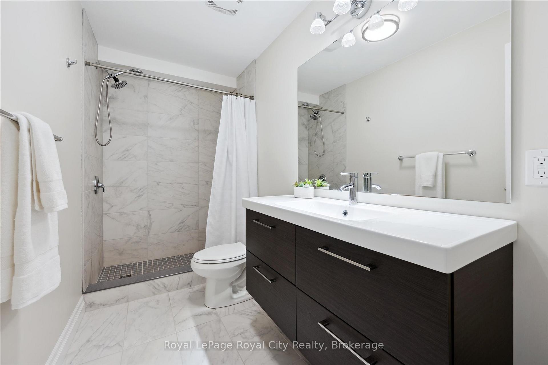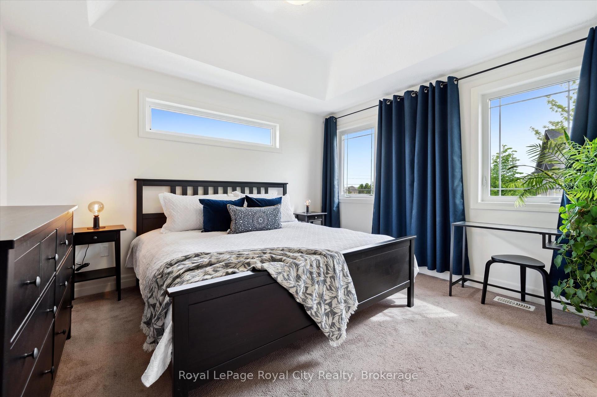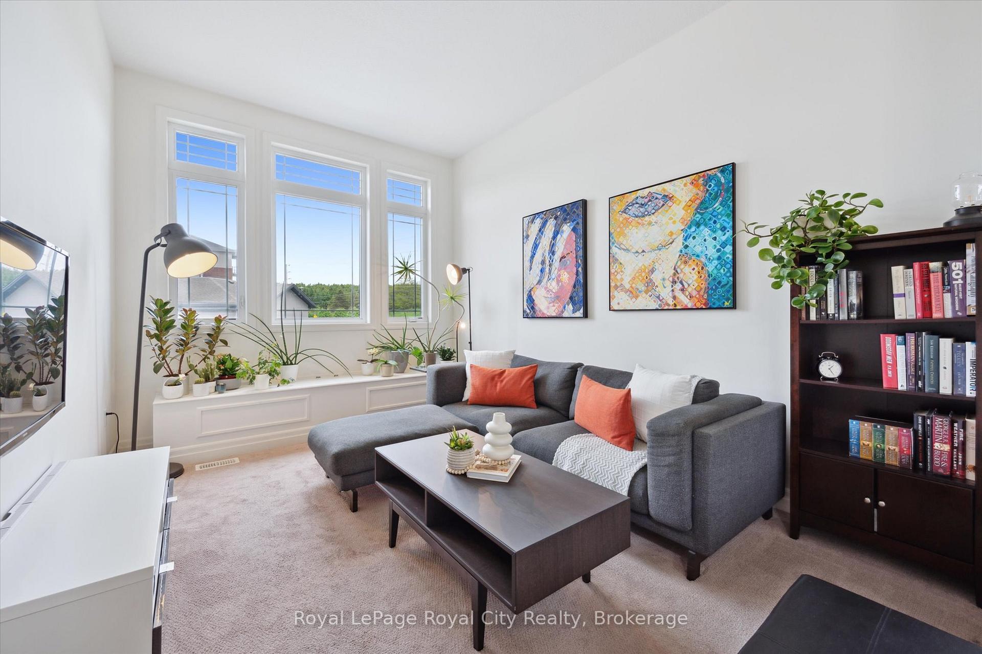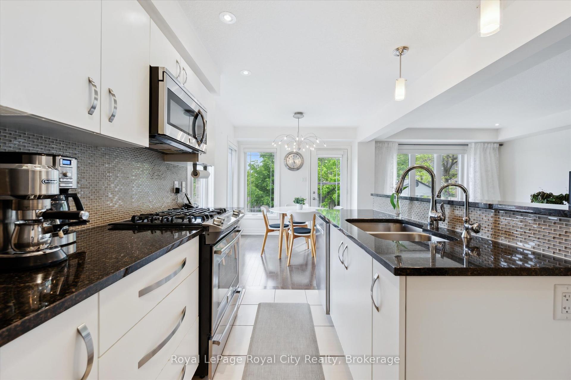 Beautifully Updated & Move-In Ready in Guelphs South End! This stunning home sits on a large corner lot in the sought-after Pineridge/Westminster Woods neighbourhood. With over 1,800 sqft of living space plus a finished basement, this 3+1 bedroom, 4-bathroom gem offers style, space, and comfort for the modern family. From the moment you arrive, the curb appeal stands out. A stone and stucco exterior, manicured landscaping, and a welcoming covered entry set the tone. Inside, youll find rich hardwood floors, granite countertops, recessed lighting, and thoughtful designer touches throughout. The bright, open-concept main floor is perfect for daily living and entertaining. Large windows and French doors bring in natural light and lead to a private patio and oversized fenced yard – perfect for kids, pets, and summer BBQs. The kitchen features a central island with bar seating, a walk-in pantry, and a sunny breakfast nook. Upstairs, a bonus family room offers flexible space for a home office, playroom, or cozy lounge. The spacious primary suite includes a walk-in closet and a spa-like ensuite with a soaker tub. Two additional bedrooms share a 4-piece bath, and the second-floor laundry room adds convenience. The finished basement offers even more flexibility, with a rec room (or optional fourth bedroom) and a stylish 3-piece bath with floating vanity. Set in a family-friendly neighbourhood close to schools, parks, trails, shopping, and the 401 – this home truly has it all!