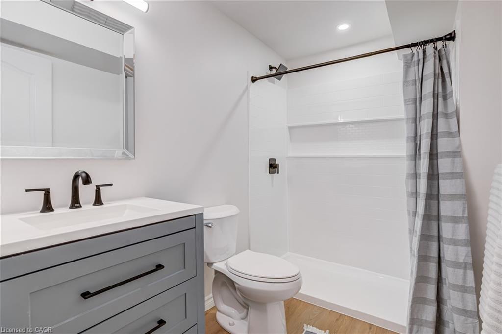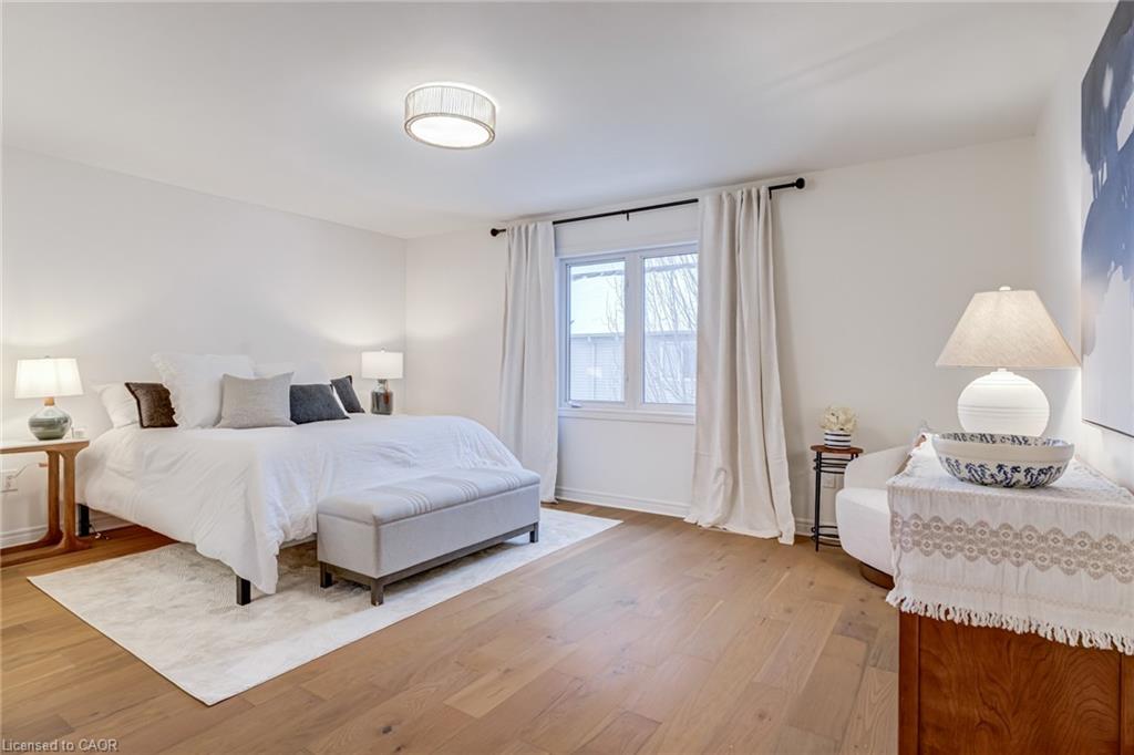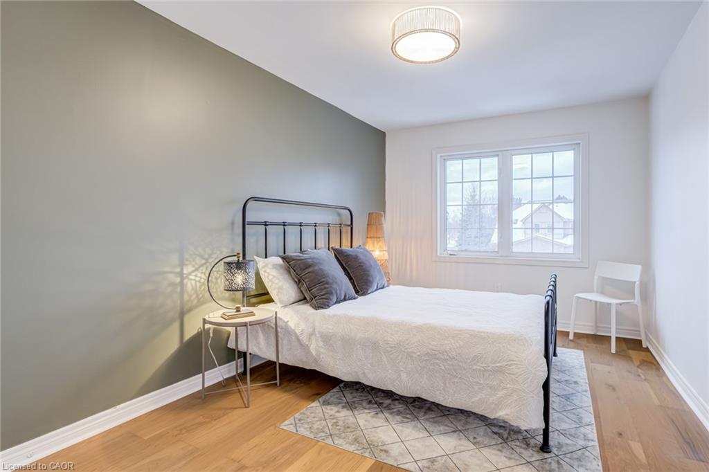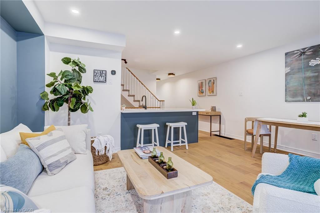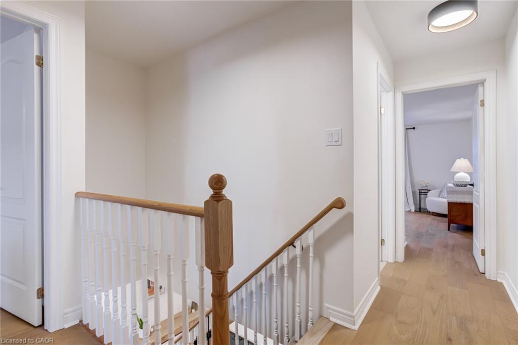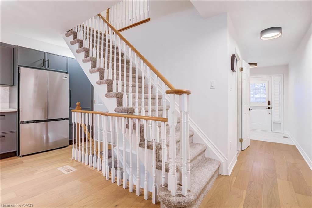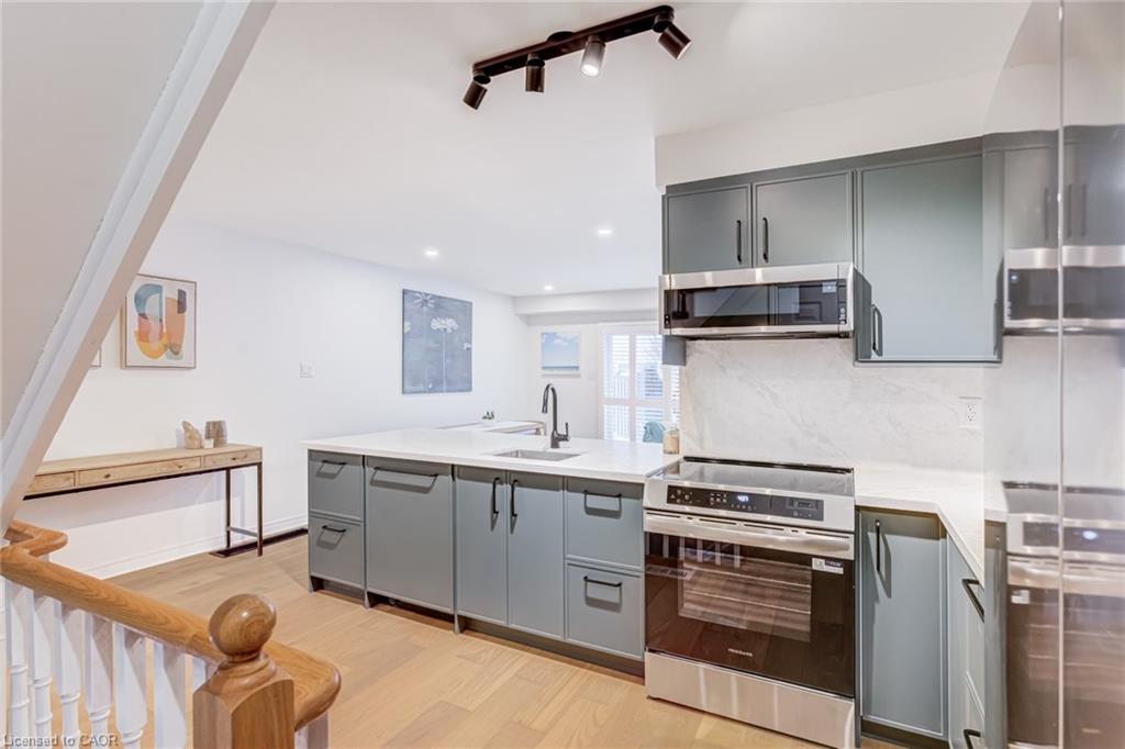 Recently refreshed this stylish 3+1Bed, 2.5 bath condo townhouse is sure to delight. Entering a spacious entrance with closet, you see the fresh hardwood and pass by a moody powder room en route to the brand new kitchen. A large quartz covered peninsula offers entertaining space and the layout offers tons of drawers and space for your gadgets. You’ll be charmed by the lovely living/dining space that fills with light out the from the expansive patio doors leading to your private outdoor space. Up the cushy newly carpeted stairs you’ll find a large family bathroom with new double vanity which shares a separate access to the large primary bedroom complete with a walk in closet. The other two bedrooms upstairs are also a great size with the smaller also having its own walk in closet. From the main floor kitchen you’ll be able to access the single car garage or go down the stairs to a new basement washroom with stand-up shower, a substantial bedroom and a finished laundry room with the whole floor being finished in new vinyl plank flooring. The townhouse is located in a small, exclusive feeling community of only 30 units. You’re a quick walk to schools, an easy bike ride to a local plaza with groceries and restaurants, and an easy drive to access the 403+QEW. This is your opportunity to move into a home with a great layout, fabulous neighbHours, newly updated systems and decor and all in a fantastic location.