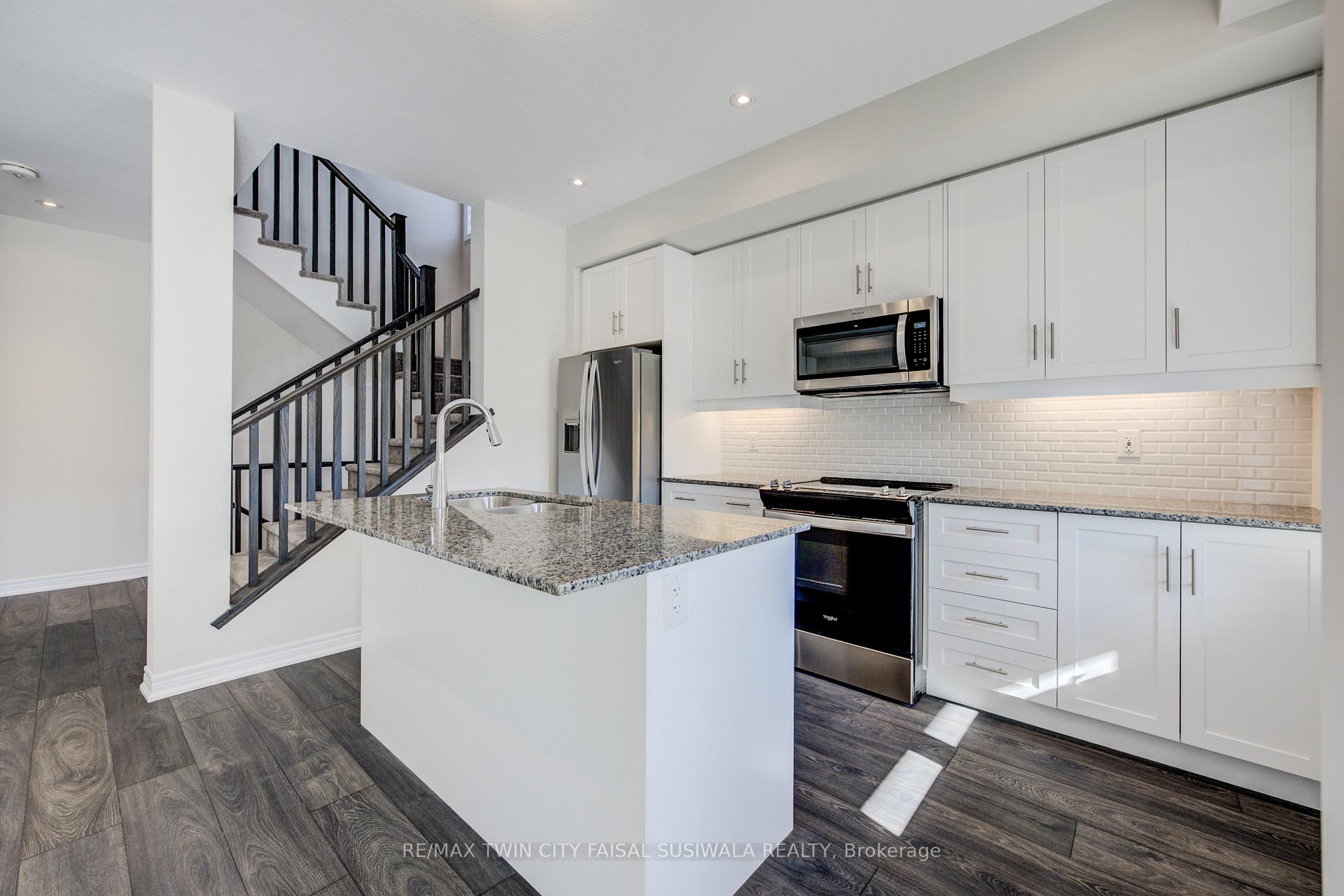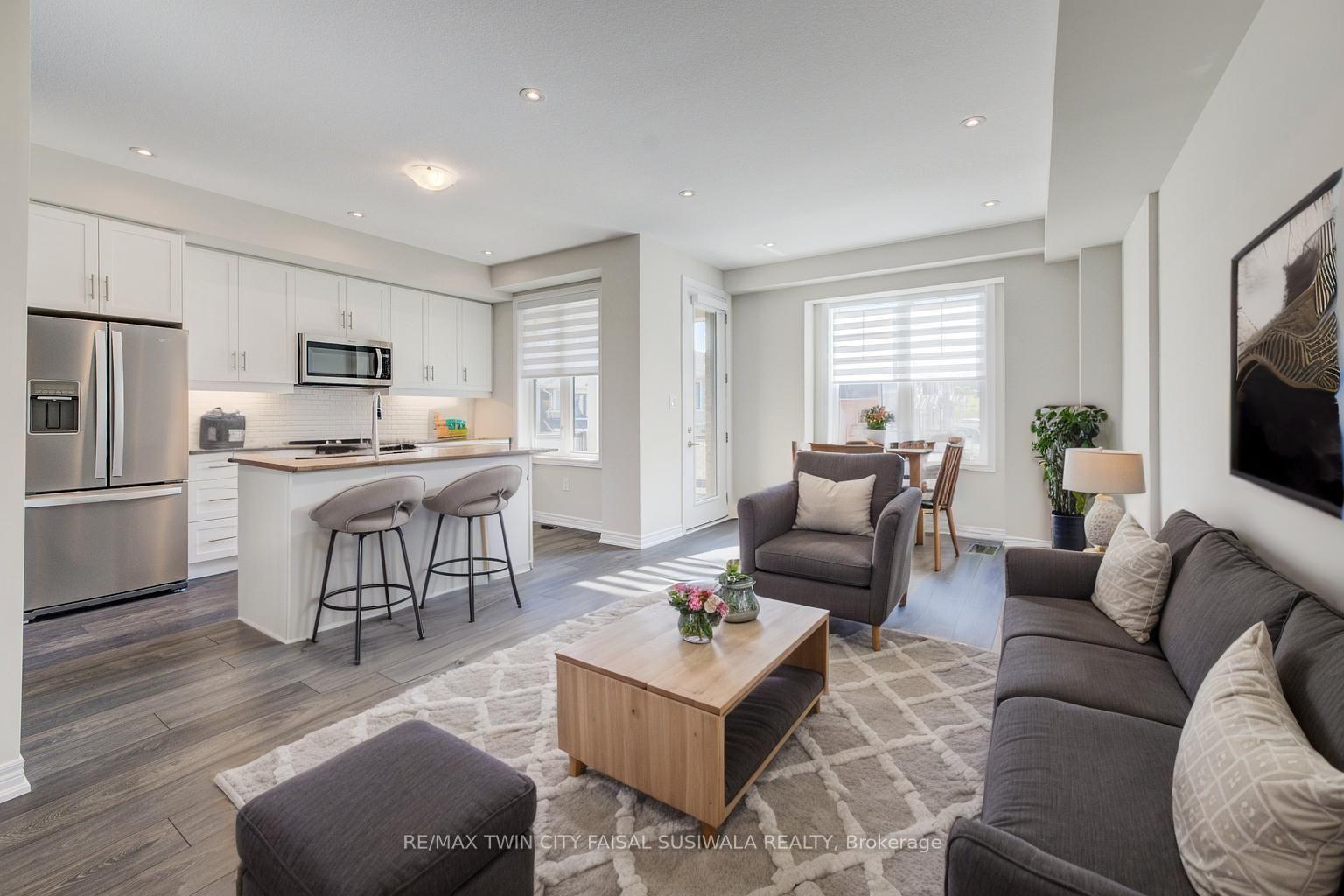 STYLISH. SPACIOUS. STEPS FROM IT ALL. Welcome to your next chapter in this modern townhome-#116-10 Birmingham Drive, Cambridge. Tucked into a vibrant and walkable community, this home spans 3 thoughtfully designed levels and offers over 1,350 sq ft of sun-filled living space. From the moment you step inside, you’re greeted by contemporary finishes and a bright, open-concept layout that feels both welcoming and functional. The heart of the home is the main living area-anchored by a sleek kitchen featuring granite countertops, stainless steel appliances, custom 39″ upper cabinetry with LED lighting, and a breakfast bar perfect for casual meals or morning coffees. The adjoining family room flows effortlessly to a private, covered terrace balcony-an ideal spot to relax and unwind. Upstairs, the primary retreat is your private escape, complete with a walk-in closet, private balcony, and upgraded blackout blinds. A second bedroom offers ample space for guests, family, or a home office, while designer carpet and mirrored closets elevate the space. The 4pc bathroom completes this level. The ground level offers bonus flexibility with in-suite laundry and convenient interior access to the garage-plus a second private entrance and your own driveway. With two-car parking (garage + driveway), upgraded pot lights, smart storage, smart exterior lights, 200AMP panel, and custom window treatments throughout, every detail has been carefully curated. Located just minutes from shops, restaurants, parks, schools, and highway access, this move-in-ready home checks every box. Whether you’re a first-time buyer, busy professional, or savvy investor-this is one you don’t want to miss. Photos are Virtually staged.