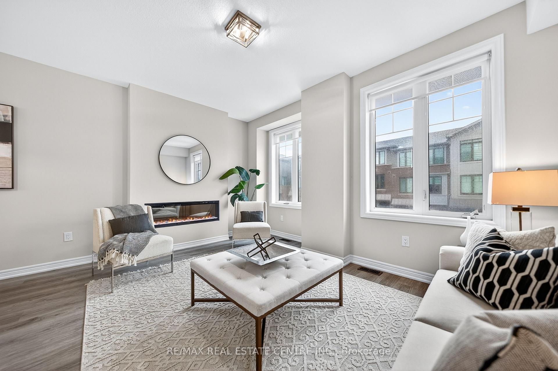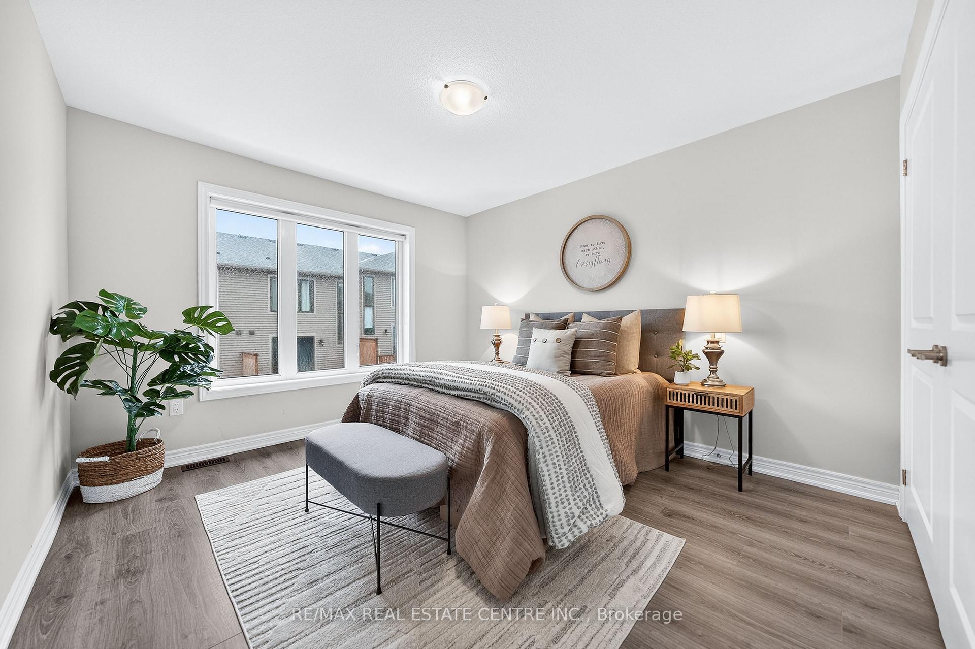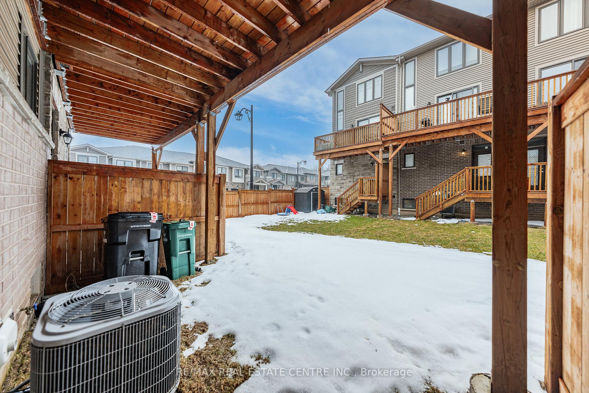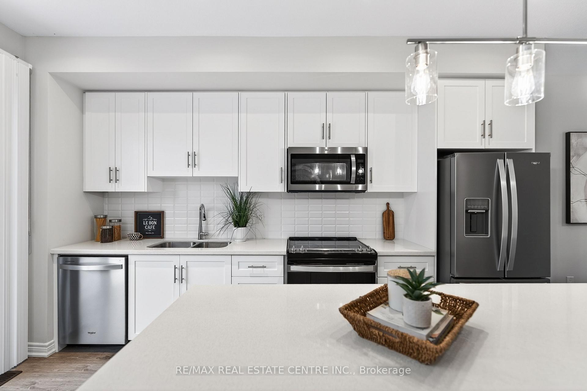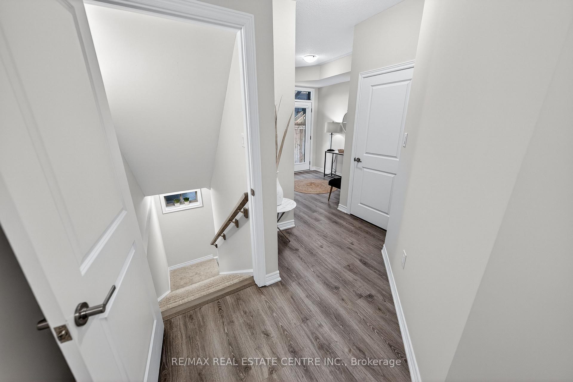 Welcome to this exceptional, freshly painted move-in ready townhome nestled in one of Cambridge’s most desirable communities. Thoughtfully designed for modern living, this bright and beautifully appointed home features 9 ft ceilings, elegant finishes, and a spacious open-concept layout that seamlessly blends style, comfort, and everyday functionality. Over 1900sqft of total living space. Perfect for first-time buyers, growing families, or professionals. The main living level impresses with an abundance of natural light streaming through oversized windows, highlighting a warm and inviting living space anchored by a sleek electric fireplace. The contemporary white kitchen is both stylish and practical, showcasing quartz countertops, a large center island with breakfast seating, stainless steel appliances, subway tile backsplash, and ample cabinetry, all complemented by convenient roll-down blinds. Step outside to the private rear deck with privacy side panels, offering a peaceful retreat for relaxing or entertaining. A hardwood staircase leads to the upper level where three generously sized bedrooms provide comfort and versatility, each featuring large windows and neutral décor. The 4-piece bathroom includes a quartz vanity, soaker tub, and ceramic tile shower surround. Excellent location approximately 35 minutes to Mississauga, 15 minutes to University of Waterloo and Wilfrid Laurier University, and 20 minutes to University of Guelph. Walking distance to Walmart, Home Depot, Tim Hortons, Canadian Tire, Starbucks, and numerous shops, dining, and everyday amenities.