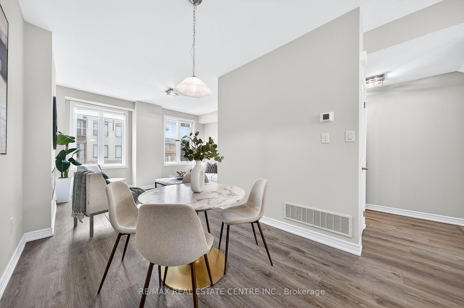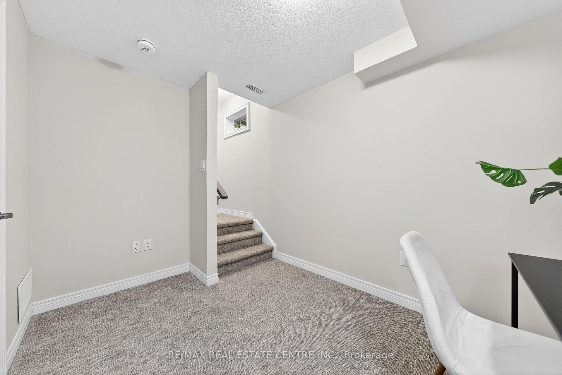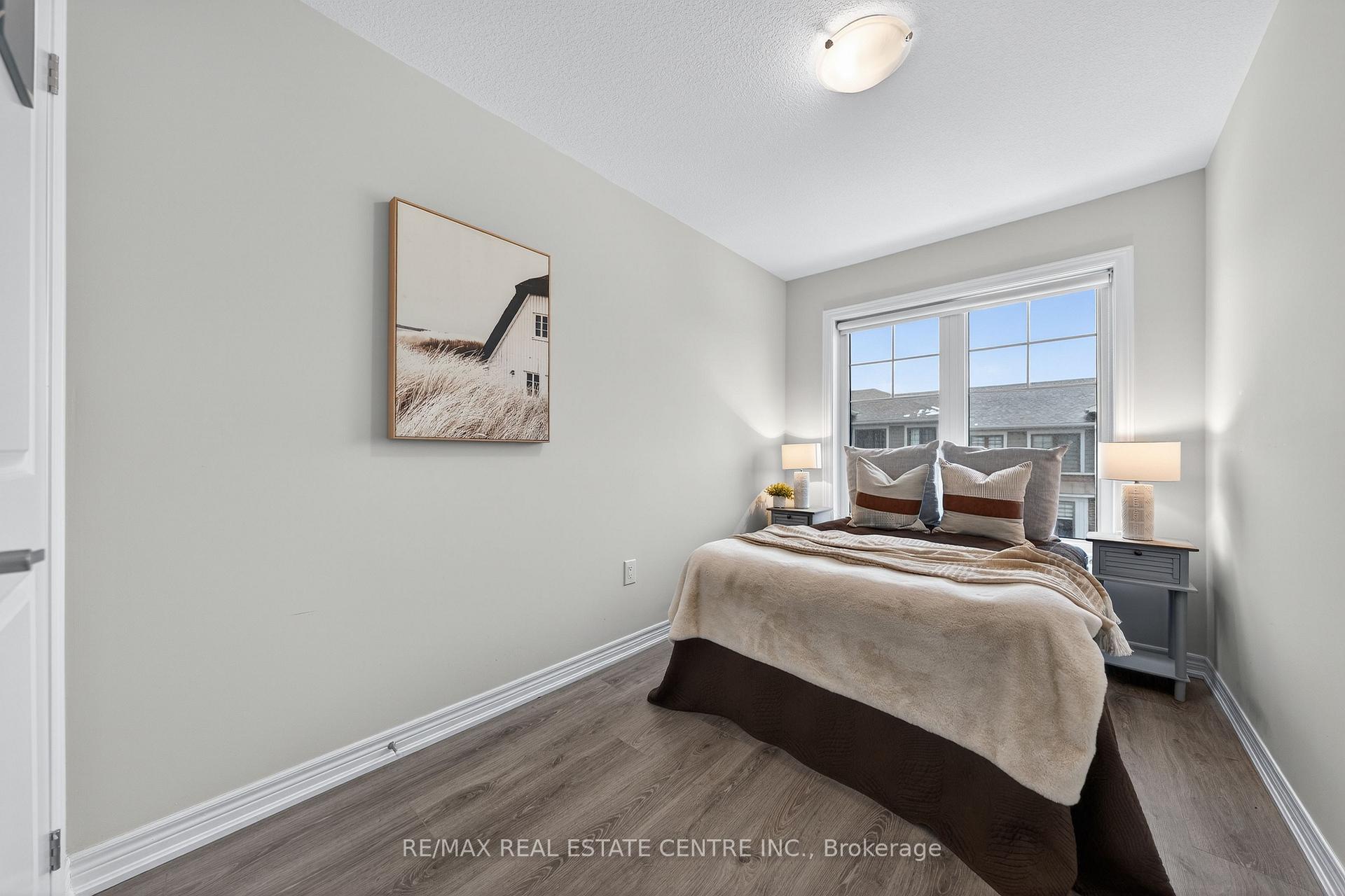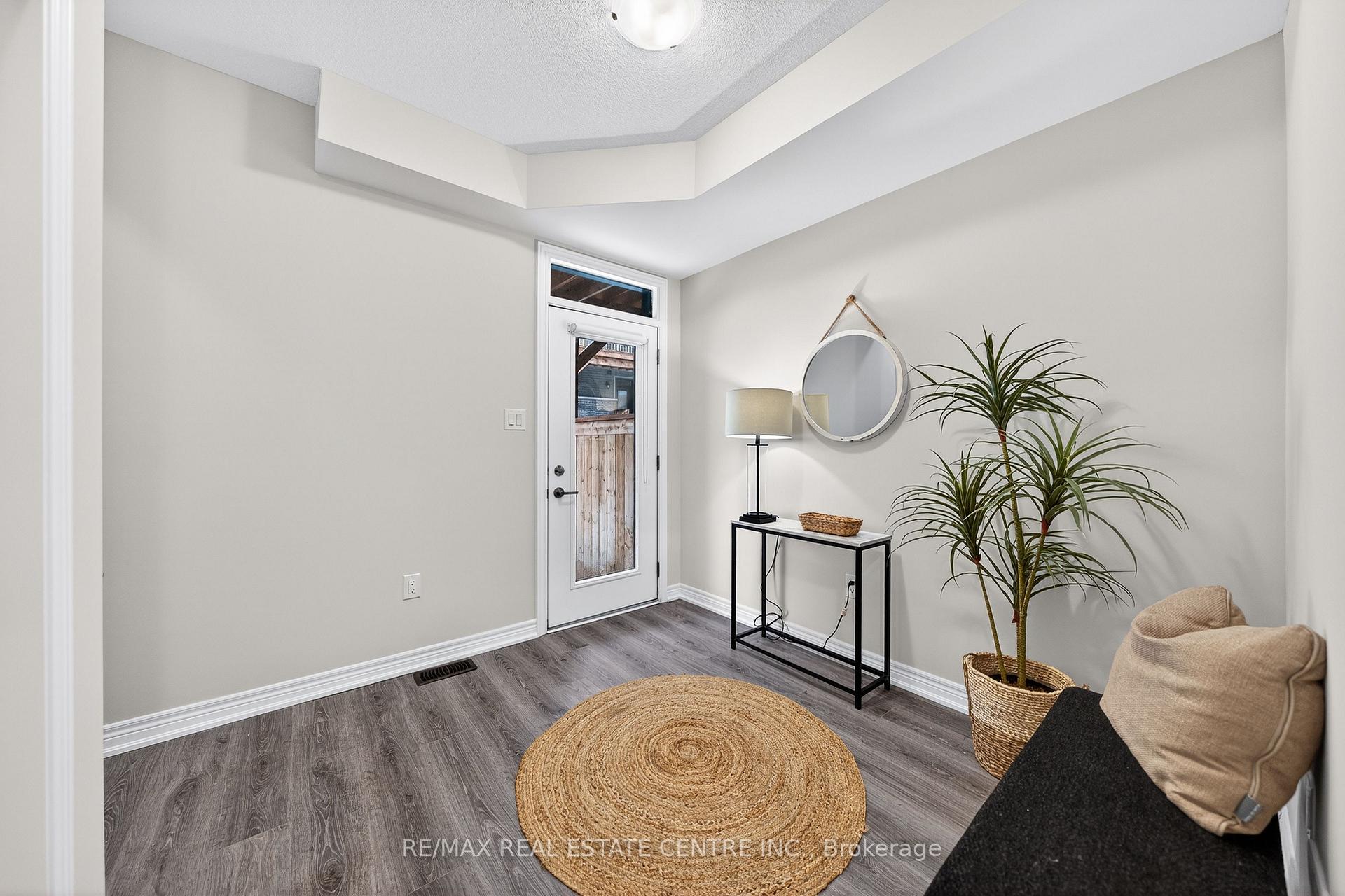 Welcome to this exceptional, freshly painted move-in ready townhome nestled in one of Cambridge’s most desirable communities. Thoughtfully designed for modern living, this bright and beautifully appointed home features 9 ft ceilings, elegant finishes, and a spacious open-concept layout that seamlessly blends style, comfort, and everyday functionality. Over 1900sqft of total living space. Perfect for first-time buyers, growing families, or professionals. The main living level impresses with an abundance of natural light streaming through oversized windows, highlighting a warm and inviting living space anchored by a sleek electric fireplace. The contemporary white kitchen is both stylish and practical, showcasing quartz countertops, a large center island with breakfast seating, stainless steel appliances, subway tile backsplash, and ample cabinetry, all complemented by convenient roll-down blinds. Step outside to the private rear deck with privacy side panels, offering a peaceful retreat for relaxing or entertaining. A hardwood staircase leads to the upper level where three generously sized bedrooms provide comfort and versatility, each featuring large windows and neutral décor. The 4-piece bathroom includes a quartz vanity, soaker tub, and ceramic tile shower surround. Excellent location approximately 35 minutes to Mississauga, 15 minutes to University of Waterloo and Wilfrid Laurier University, and 20 minutes to University of Guelph. Walking distance to Walmart, Home Depot, Tim Hortons, Canadian Tire, Starbucks, and numerous shops, dining, and everyday amenities.