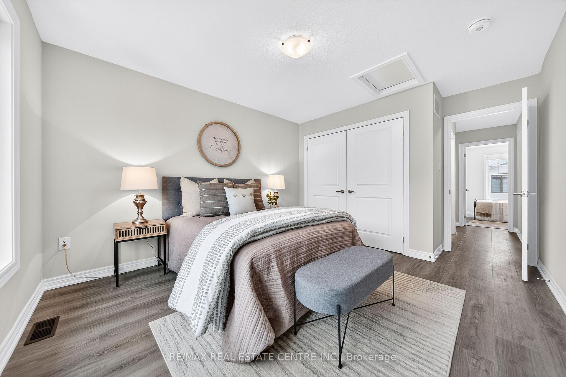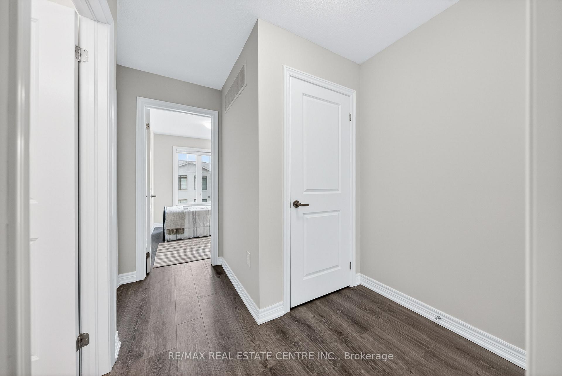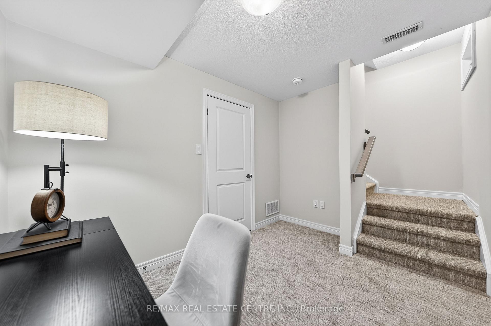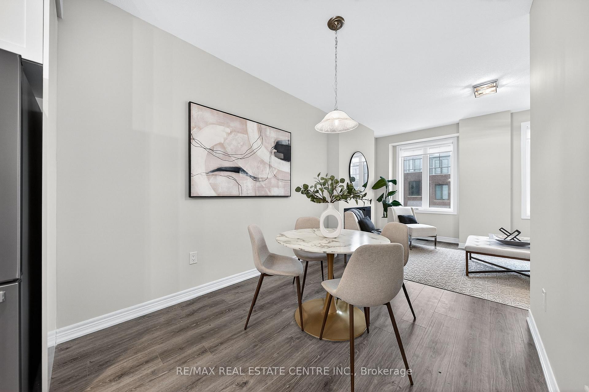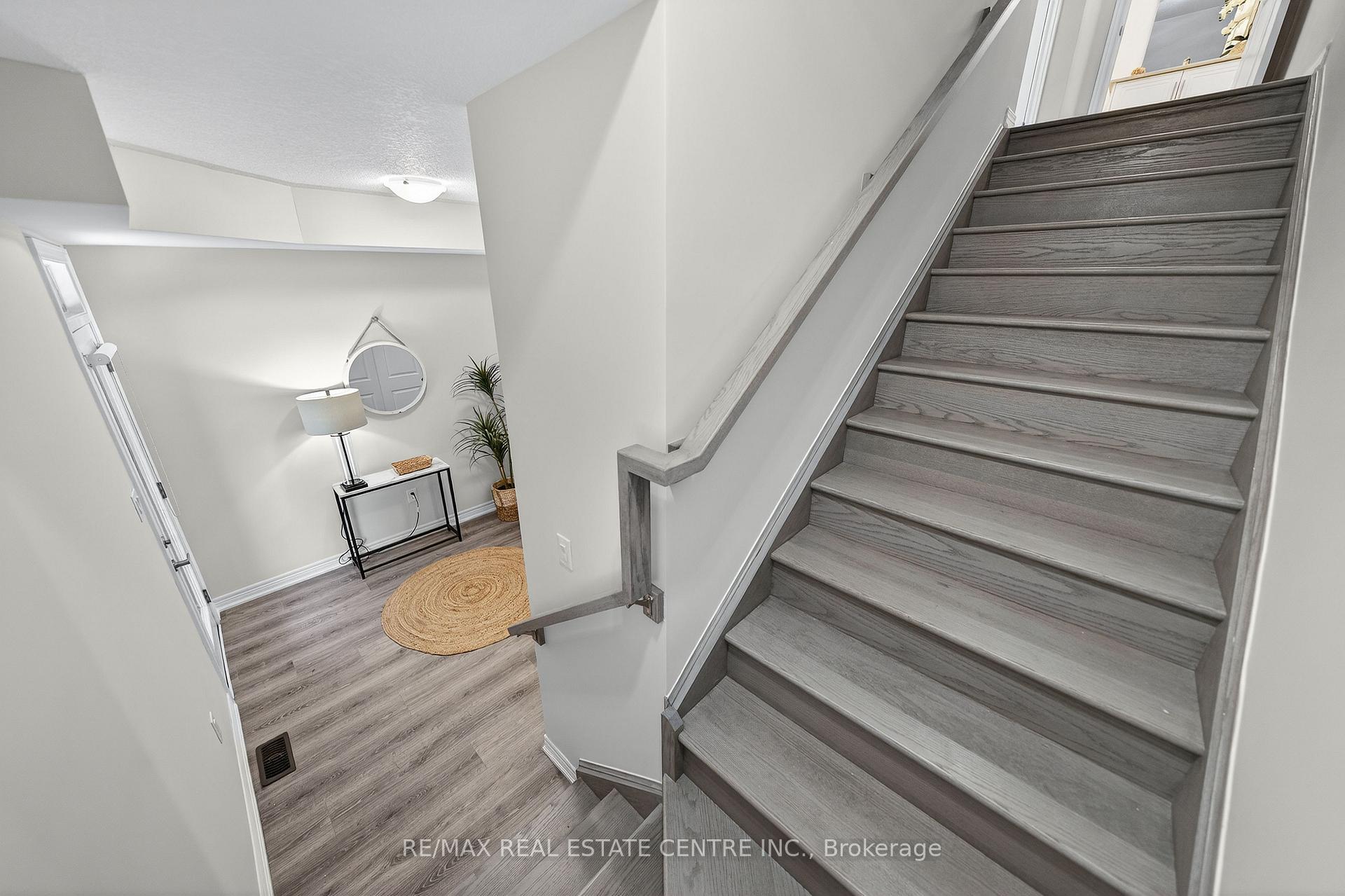 Welcome to this exceptional, freshly painted move-in ready townhome nestled in one of Cambridge’s most desirable communities. Thoughtfully designed for modern living, this bright and beautifully appointed home features 9 ft ceilings, elegant finishes, and a spacious open-concept layout that seamlessly blends style, comfort, and everyday functionality. Over 1900sqft of total living space. Perfect for first-time buyers, growing families, or professionals. The main living level impresses with an abundance of natural light streaming through oversized windows, highlighting a warm and inviting living space anchored by a sleek electric fireplace. The contemporary white kitchen is both stylish and practical, showcasing quartz countertops, a large center island with breakfast seating, stainless steel appliances, subway tile backsplash, and ample cabinetry, all complemented by convenient roll-down blinds. Step outside to the private rear deck with privacy side panels, offering a peaceful retreat for relaxing or entertaining. A hardwood staircase leads to the upper level where three generously sized bedrooms provide comfort and versatility, each featuring large windows and neutral décor. The 4-piece bathroom includes a quartz vanity, soaker tub, and ceramic tile shower surround. Excellent location approximately 35 minutes to Mississauga, 15 minutes to University of Waterloo and Wilfrid Laurier University, and 20 minutes to University of Guelph. Walking distance to Walmart, Home Depot, Tim Hortons, Canadian Tire, Starbucks, and numerous shops, dining, and everyday amenities.