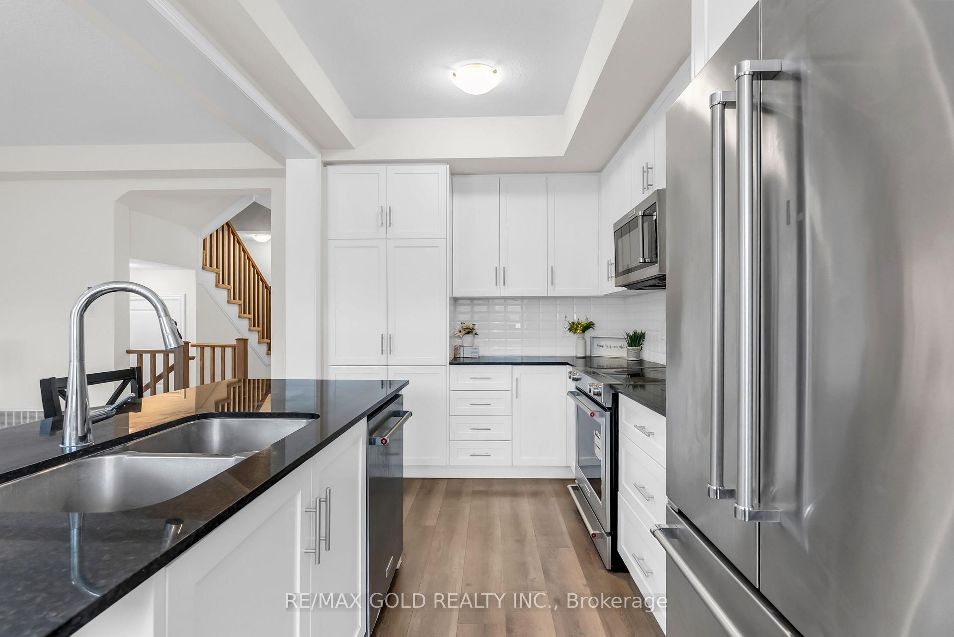 Executive Townhome on Premium Lot with Walk-Out Basement! Ideally located just minutes from shopping, restaurants, and easy access to the 401. This bright and modern home offers 3 bedrooms and 2.5 bathrooms, 9-foot ceilings, a spacious open-concept living and dining area, and elegant oak stairs. The upgraded kitchen features quartz countertops, upgraded appliances, and ample cabinetry, complemented by an abundance of natural light throughout. A fantastic opportunity and an ideal home for first-time buyers or investors seeking a move-in-ready property in a highly convenient location.