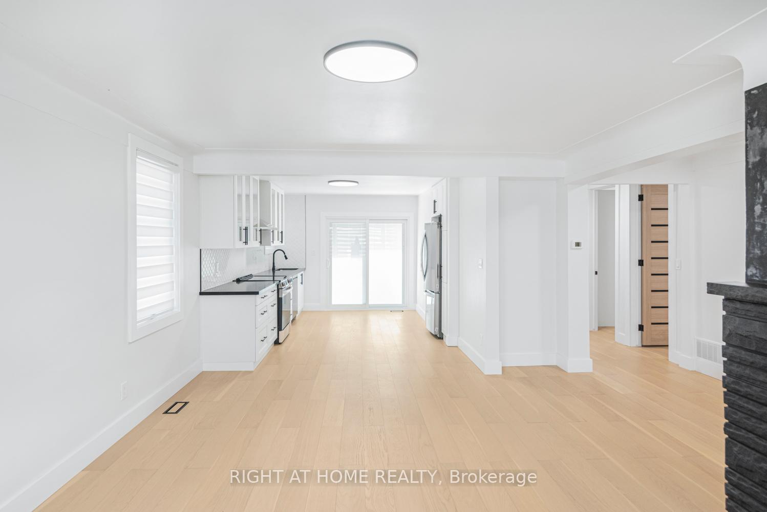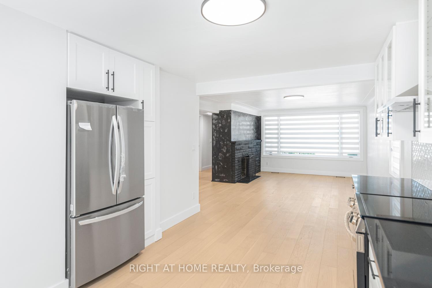 Welcome to this beautifully renovated modern home featuring 3+1 bedrooms, 2 full bathrooms and a separate entrance to the finished basement. Situated on a premium 53.33 ft by 166.00 ft lot in a highly sought-after neighborhood close to all amenities, this property offers the perfect blend of style and practicality. The open-concept main floor is flooded with natural light from oversized windows, showcasing a spacious living and dining area. The brand-new kitchen is a true showpiece, complete with quartz countertops, stainless steel appliances, and a functional design ideal for both everyday living and entertaining. Additional highlights include: stylish engineered hardwood flooring, roughed-in kitchen in the basement, brand-new quality doors and windows, a charming wood-burning fireplace (never used by the current owners) and the separate entrance to the finished basement provides excellent flexibility perfect for an in-law suite or additional living space. This move-in ready home combines elegance, comfort, and functionality, making it a standout opportunity in a prime location.