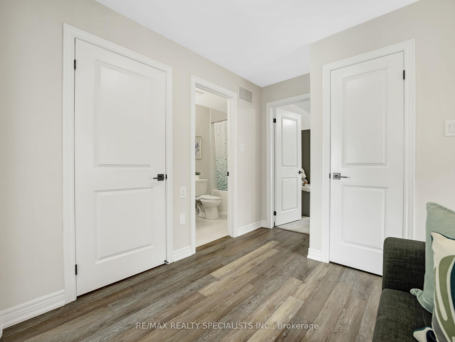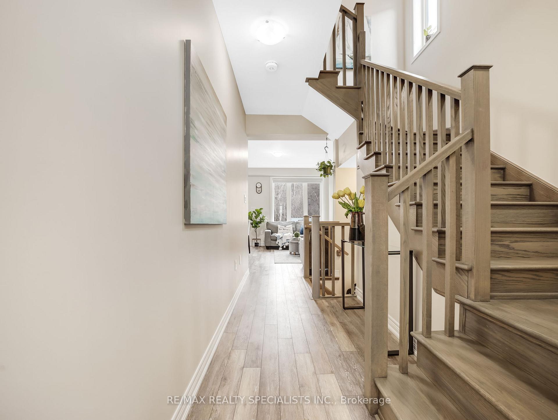 Welcome to this absolutely stunning end unit townhome featuring a rare premium lot with a Walk-out finished basement unit. The gorgeous gem is finished with high-end quality finishing from top to bottom. The main floor boasts built by renowned Builder Branthaven! Ravine Lot! No Neighbours Behind! Finished basement with 1 bedroom, full washroom. This beautiful sun-filled home features 9 Feet ceilings on the main floor, Smooth ceilings throughout the house. Open concept, Stylish Kitchen with Upgraded Cabinets, Quartz Counters, and walk out to the large deck. Upgraded Hardwood Flooring on the main floor and Hallway on the 2nd level. Oak staircase, Convenient 2nd Floor Laundry. Master Bedroom comes with 3pc Ensuite Bathroom, 2 other Spacious Bedrooms. Central Vacuum rough in, Entrance from the garage to House. Very convenient location close to Hwy 401 and Shopping Area. End unit on premium lot with walk-out basement.