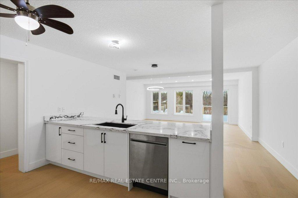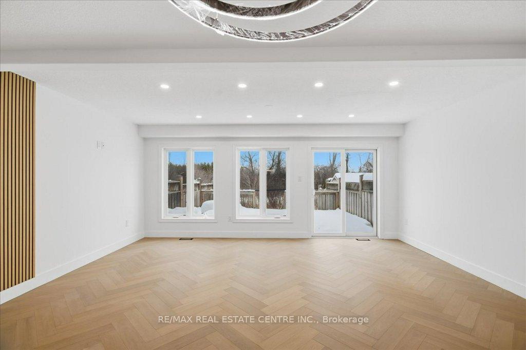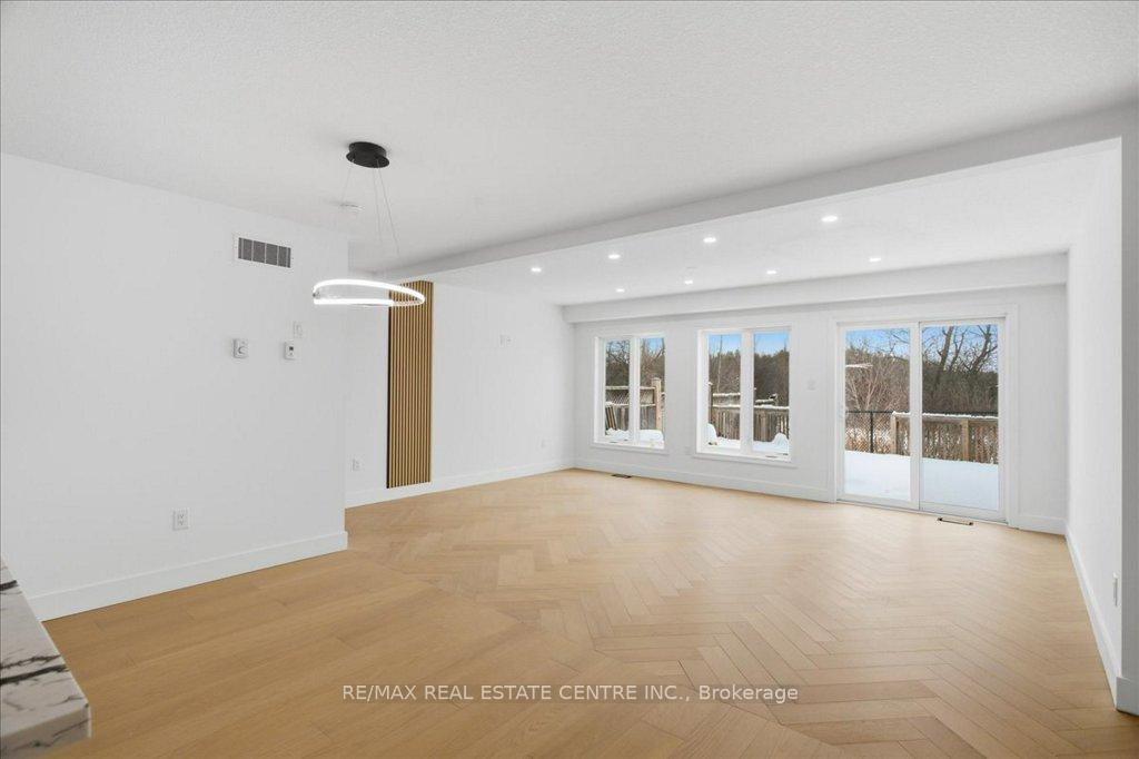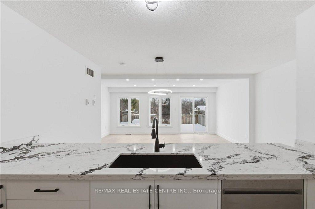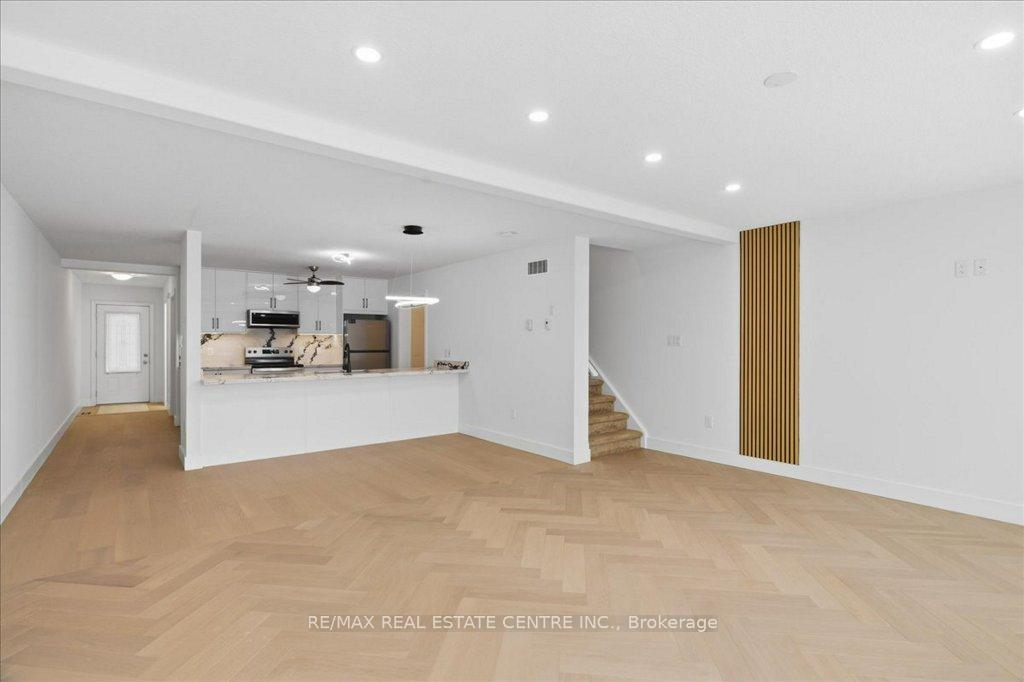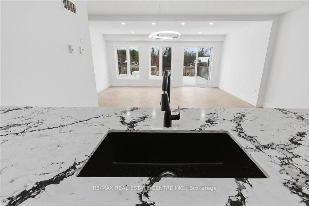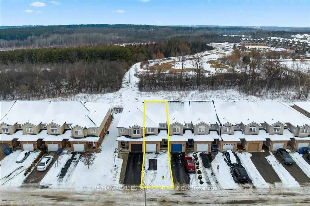 Absolutely stunning, recently reno’d, turn-key, designer-grade middle unit 3 bdrm/4 washroom w/ professionally finished basement and 3 total car parking in Guelph’s popular, family friendly, Victoria North community that’s pleasantly close to trails, parks, Guelph Lakes Conservation, schools, sportsfields, pub. transit, restaurants, plazas, golf courses and so much more. You can be in the tranquil, lush, protected greenspace of the GL Conservations in minutes enjoying a family boatride, fishing, or picnic within minutes or be in the historic and very picturesque downtown Guelph core enjoying a coffee and some pastries at a landmark cafe or bistro. The home itself has been fully detailed w/ main-floor walnut stained chevron patterned flooring, fully upgraded all-white kitchen w/ newer SS appliances, b/i microwave, quartz countertops and matching backsplash, undermount lighting, deep basin sink, 9ft ceilings, LED pot lighting, upgraded powder room w/ floating vanity, newly installed 2 x 1 main floor tiling, combined open concept family and dining rooms that walks-out to sizeable backyard w/ sundeck overlooking a natural backdrop of mixed trees, grasslands, and brush. The home also features 3 large bedrooms including a large primary w/ ensuite bath and w/i closet, upstairs laundry and an additional full-sized communal bathroom. The professionally designed and engineered finished basement brandishes a large rec area ideal for kids play area and a room that could be used for an office/den or perhaps hosting some out of town guests. A fully upgraded 3 pc washroom saves guests and family members from a longer trek to the upstairs washrooms. The home also comes with owned and newly installed water heater and water softener systems. This beauty is surely to be one of the better units in the area and you won’t want to miss out on your chance to claim house as yours, especially at this new price!!
