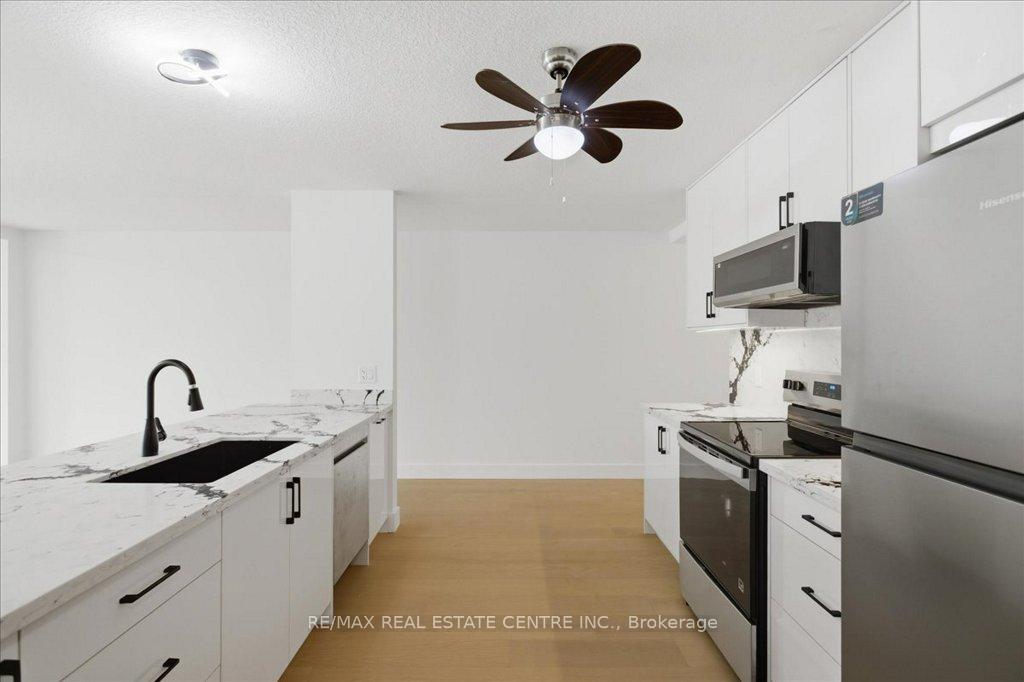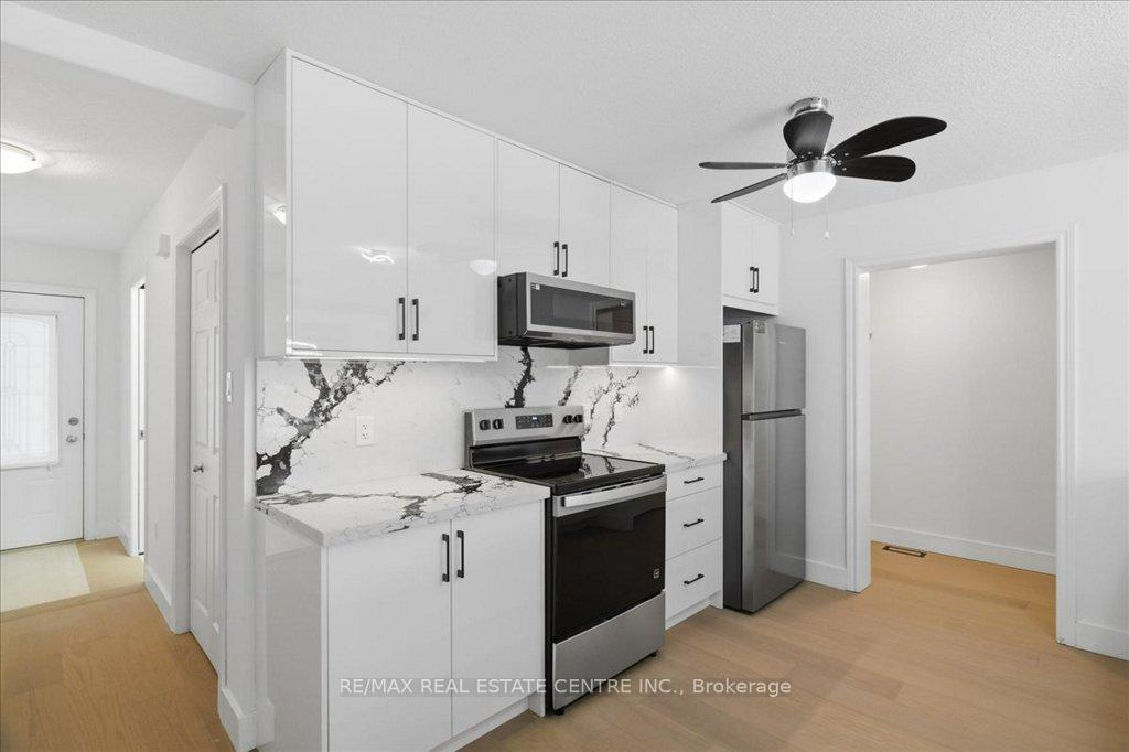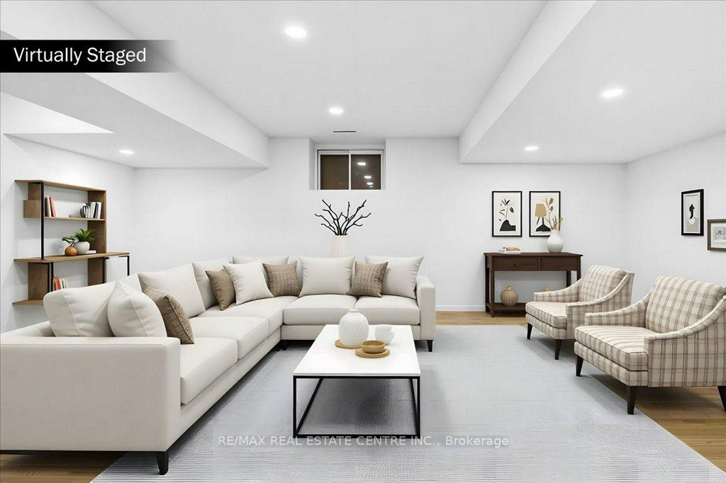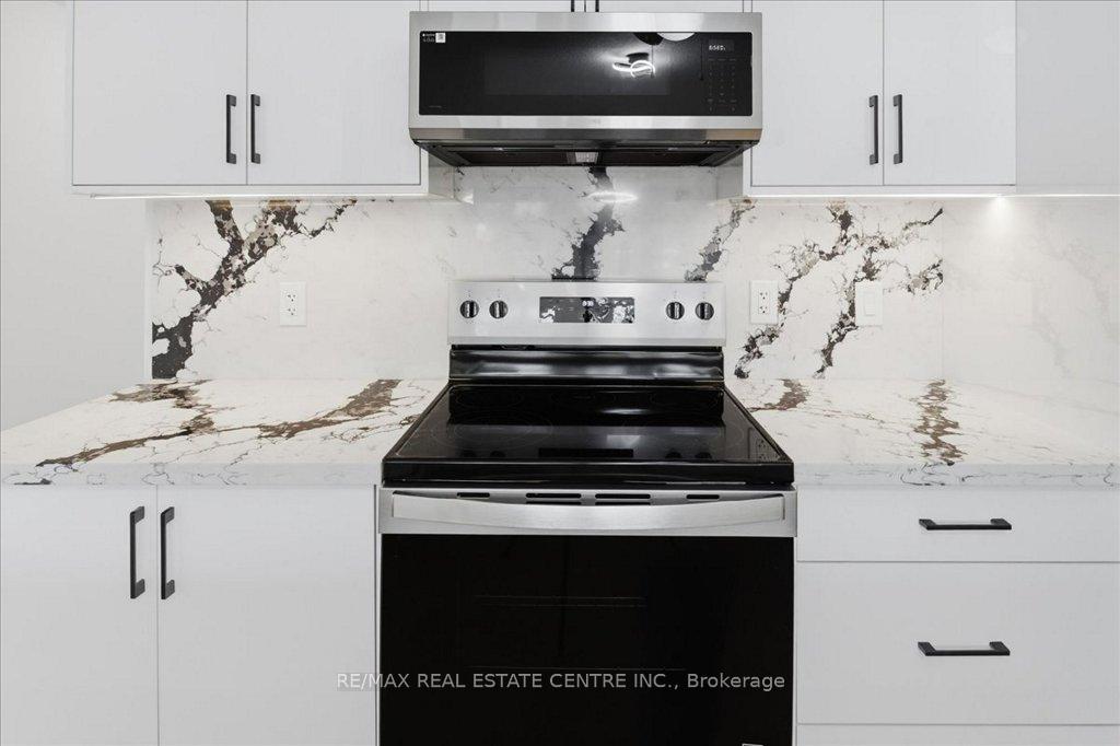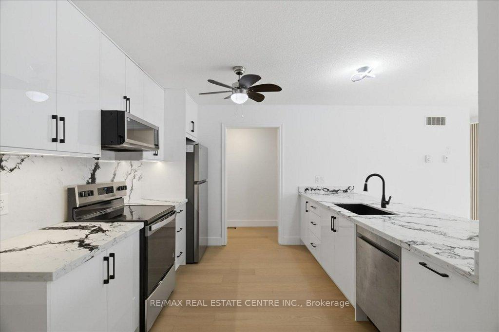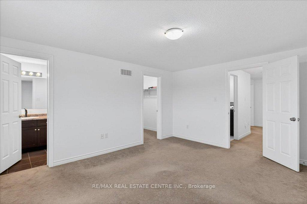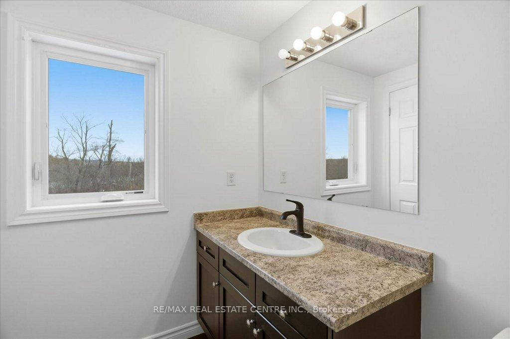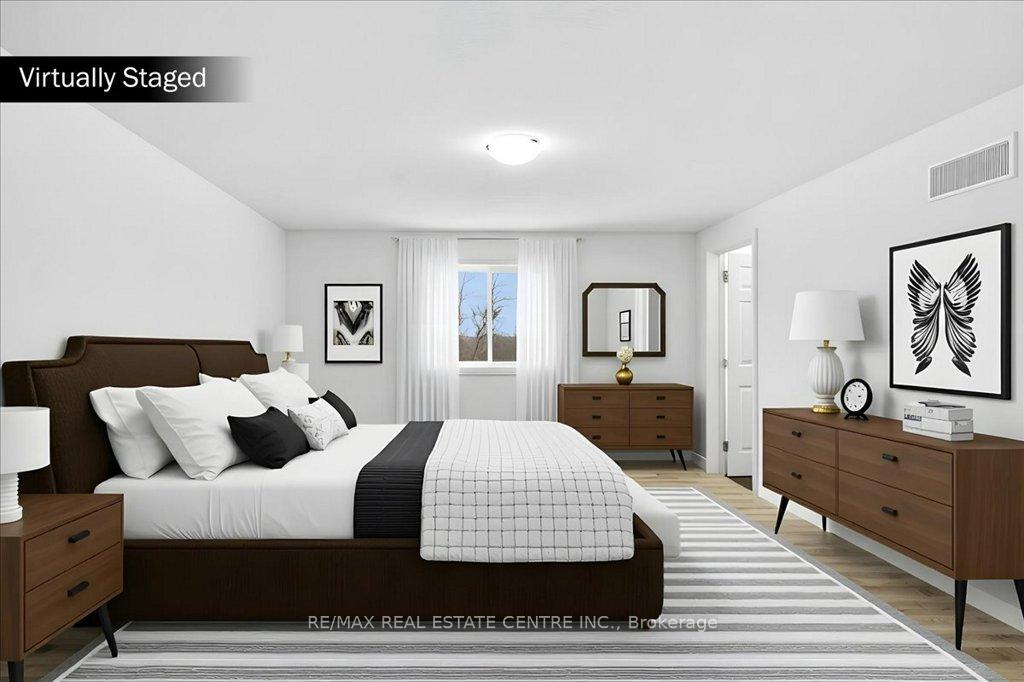 Absolutely stunning, recently reno’d, turn-key, designer-grade middle unit 3 bdrm/4 washroom w/ professionally finished basement and 3 total car parking in Guelph’s popular, family friendly, Victoria North community that’s pleasantly close to trails, parks, Guelph Lakes Conservation, schools, sportsfields, pub. transit, restaurants, plazas, golf courses and so much more. You can be in the tranquil, lush, protected greenspace of the GL Conservations in minutes enjoying a family boatride, fishing, or picnic within minutes or be in the historic and very picturesque downtown Guelph core enjoying a coffee and some pastries at a landmark cafe or bistro. The home itself has been fully detailed w/ main-floor walnut stained chevron patterned flooring, fully upgraded all-white kitchen w/ newer SS appliances, b/i microwave, quartz countertops and matching backsplash, undermount lighting, deep basin sink, 9ft ceilings, LED pot lighting, upgraded powder room w/ floating vanity, newly installed 2 x 1 main floor tiling, combined open concept family and dining rooms that walks-out to sizeable backyard w/ sundeck overlooking a natural backdrop of mixed trees, grasslands, and brush. The home also features 3 large bedrooms including a large primary w/ ensuite bath and w/i closet, upstairs laundry and an additional full-sized communal bathroom. The professionally designed and engineered finished basement brandishes a large rec area ideal for kids play area and a room that could be used for an office/den or perhaps hosting some out of town guests. A fully upgraded 3 pc washroom saves guests and family members from a longer trek to the upstairs washrooms. The home also comes with owned and newly installed water heater and water softener systems. This beauty is surely to be one of the better units in the area and you won’t want to miss out on your chance to claim house as yours, especially at this new price!!