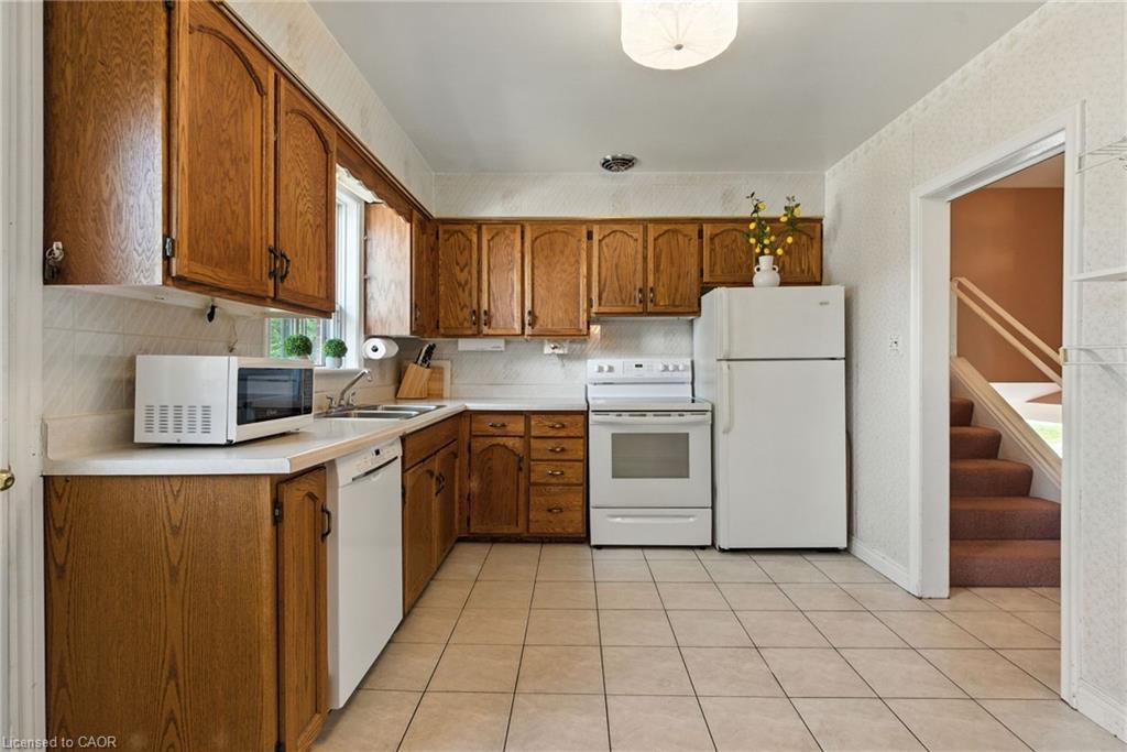 Welcome to 1001 Brucedale Avenue E – an inviting 3-bedroom, 1.5-bath side-split with BONUS unfinished lower basement area (not photographed) just waiting to be finished with your personal touch. Located in Hamilton’s sought-after Sherwood neighbourhood. Thoughtfully maintained, this home offers a warm and functional layout. The bright living room is filled with natural light from large windows, flowing into a cozy dining area and a practical kitchen. Upstairs, discover two spacious bedrooms and a full bathroom, while the lower side level features a versatile third bedroom, a comfortable family room, and a convenient 2-piece bath. The basement level adds bonus utility with a laundry area and ample storage. Step outside to a fully fenced backyard, a true gardener’s delight with endless potential for entertaining or quiet retreat. Recent updates include a new AC for added comfort and peace of mind. A private driveway ensures easy parking, while the location can’t be beat – close to parks, schools (just one block from Sherwood Secondary School and Pavillon de la Jeunesse Elementary School), shopping, Juravinski Hospital, and quick access to the Linc and Red Hill Parkway. You’ll also love being close to the Mountain Brow. This home combines comfort, convenience, and charm in one of Hamilton Mountain’s most loved communities.