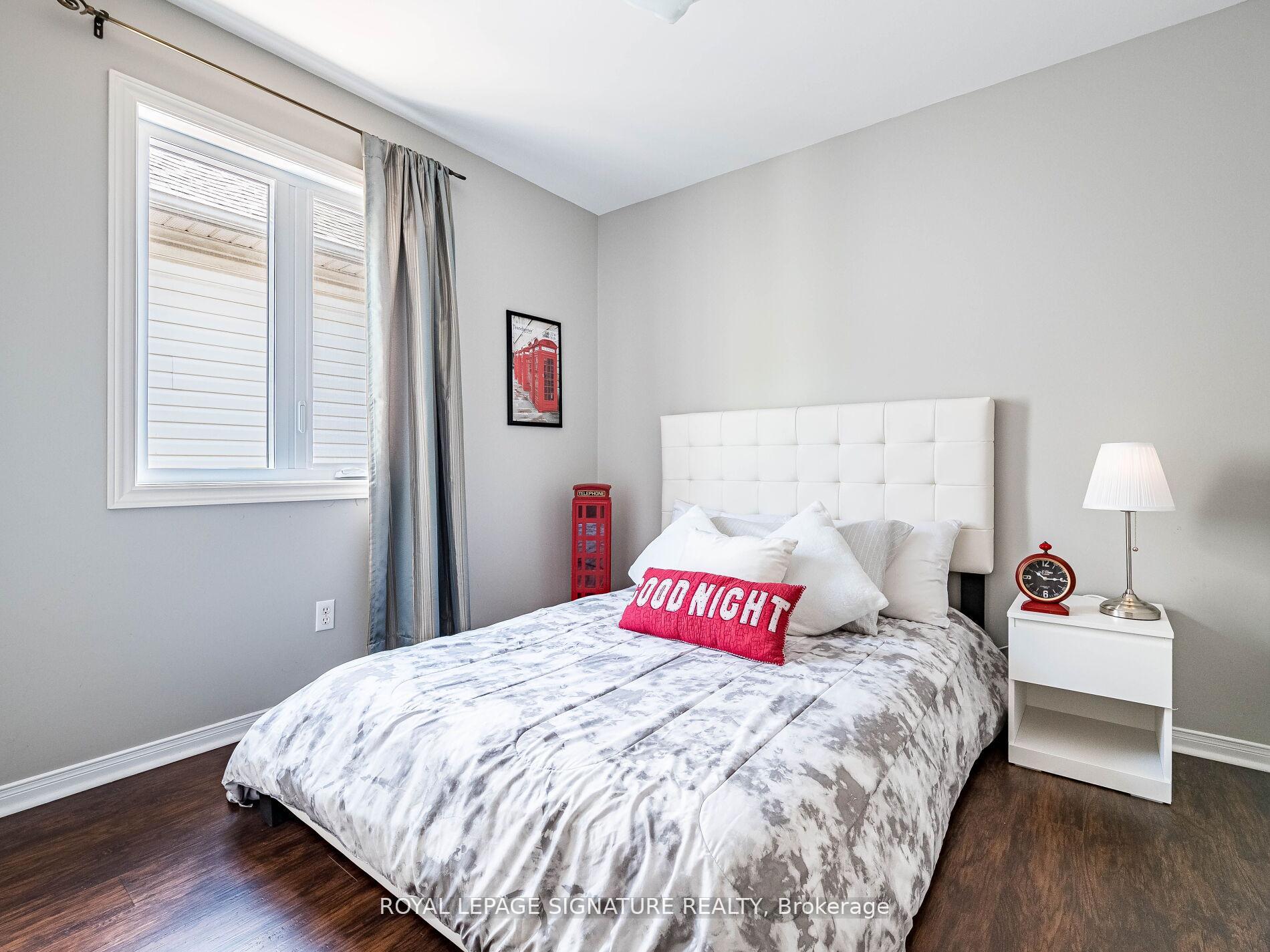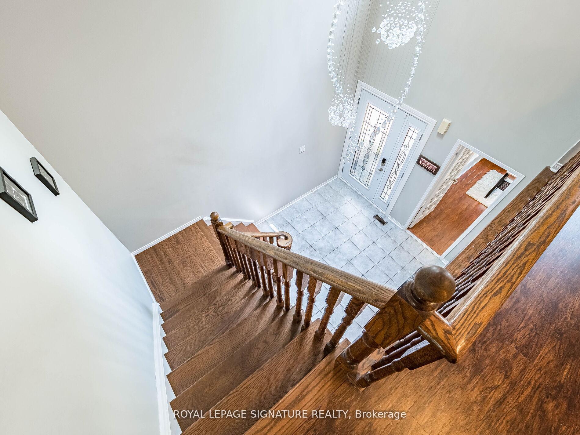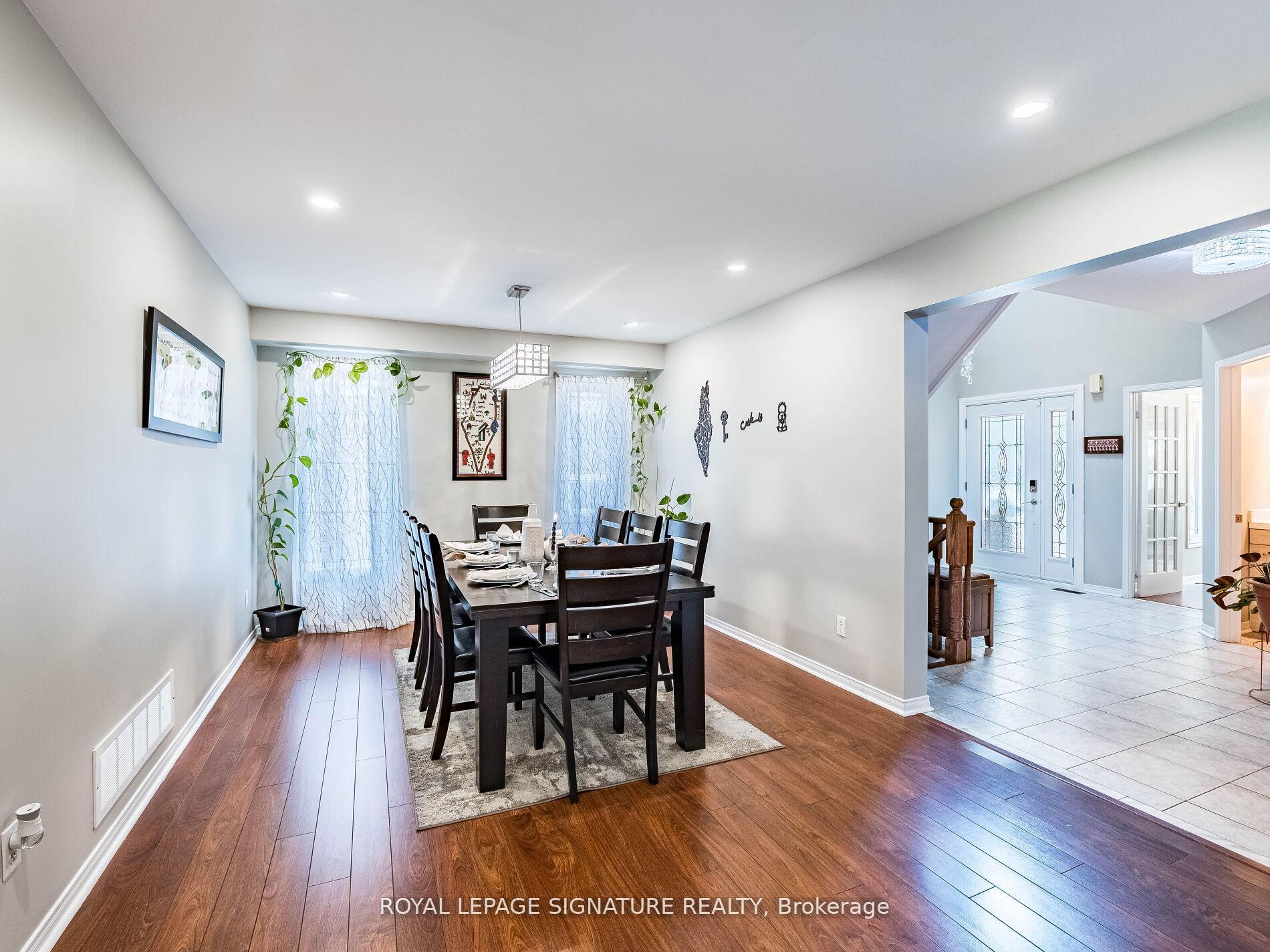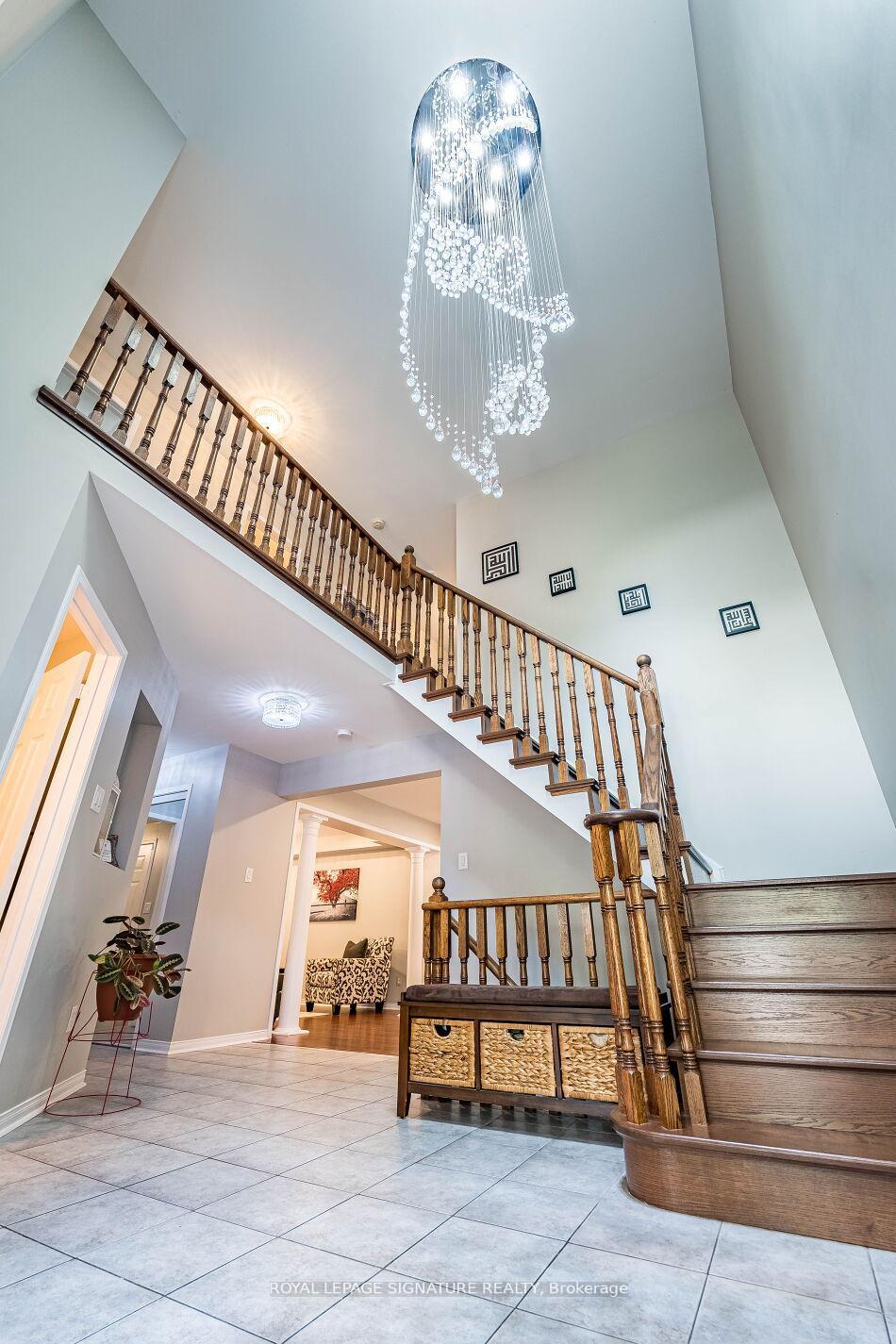 This stunning home and its quiet prime neighbourhood are a True Gift for you and your family. Your dream home with all the possibilities it holds, awaits in the heart of Milton’s most desirable Beaty community. This detached home blends over 4,500 sqft of luxury, comfort, and stylish living spaces in every detail. Offering unmatched and exceptional community living located near top rated schools, shops, plazas, restaurants, Hwys, GO Station, parks, trails, and more! The beautifully upgraded exterior boasts a modern double garage with sleek black doors, a charming covered porch, and a tasteful light brick finish with elegant grey accents give the home a contemporary look. Step inside through elegant glass front door into a Grand Foyer with soaring ceilings, where a stunning designer Chandelier cascades gracefully from above, creating an unforgettable first impression! The main floor features a separate living and dining rooms, offering defined spaces for formal and special gatherings. While the open-concept family room flows smoothly into the upgraded gourmet kitchen and a large breakfast area with direct access to your own private backyard oasis backing onto a picturesque stretch of lush greenery, this calm space sets the scene for peaceful evenings where you can unwind on the patio or fire up the BBQ for unforgettable outdoor entertaining. As you make your way up the elegant curved staircase with rich brown wooden steps, natural light floods the upper hallway creating a bright and uplifting ambiance. This smooth transition leads you to 5 spacious bedrooms; feature a generously sized primary bedroom with a large walk-in closet and a luxurious 6-piece ensuite, along with 4 additional well-appointed bedrooms, jack and jill 2nd bathroom, and a 3rd bathroom offering comfort for the family. The finished basement offers versatility with upgraded flooring and a 5th bathroom. Carpet free and smooth ceilings throughout the home! Advanced water softener and filtration system!