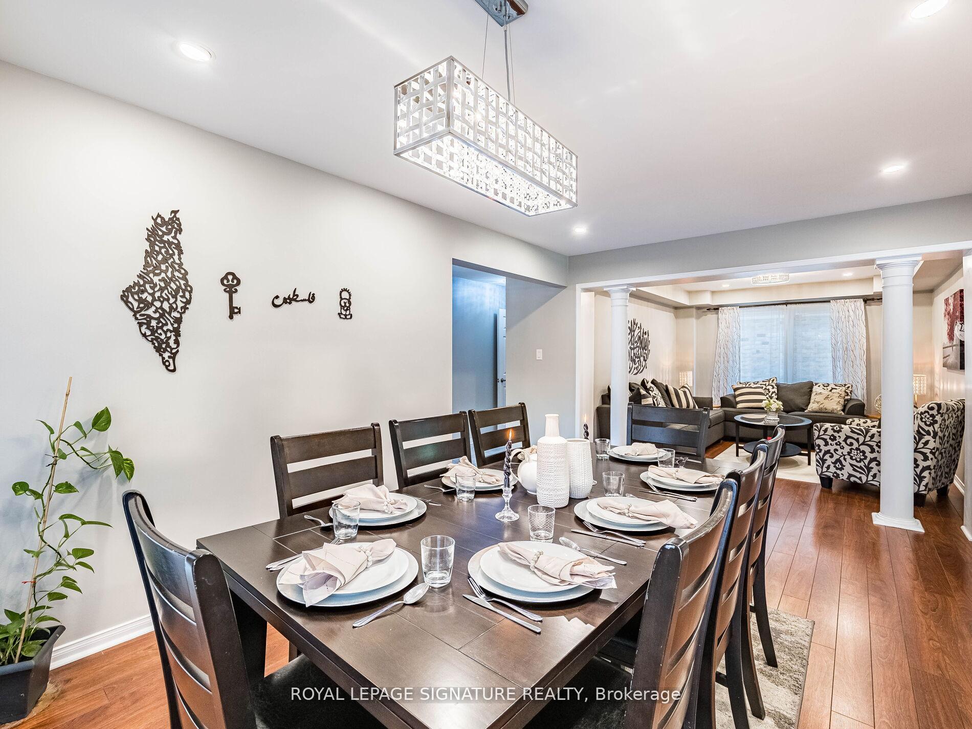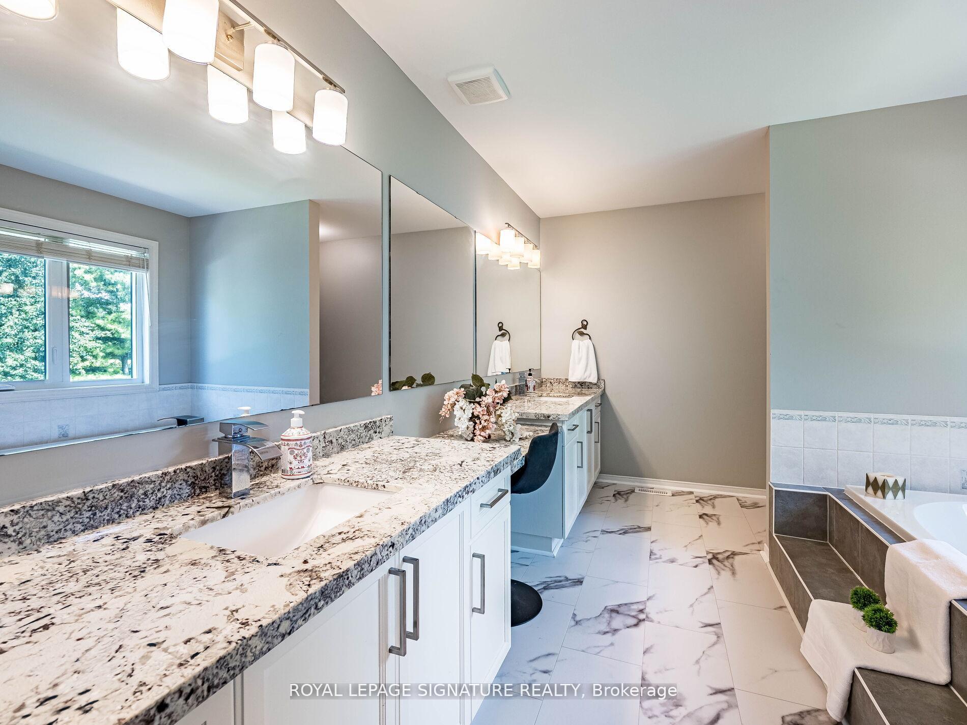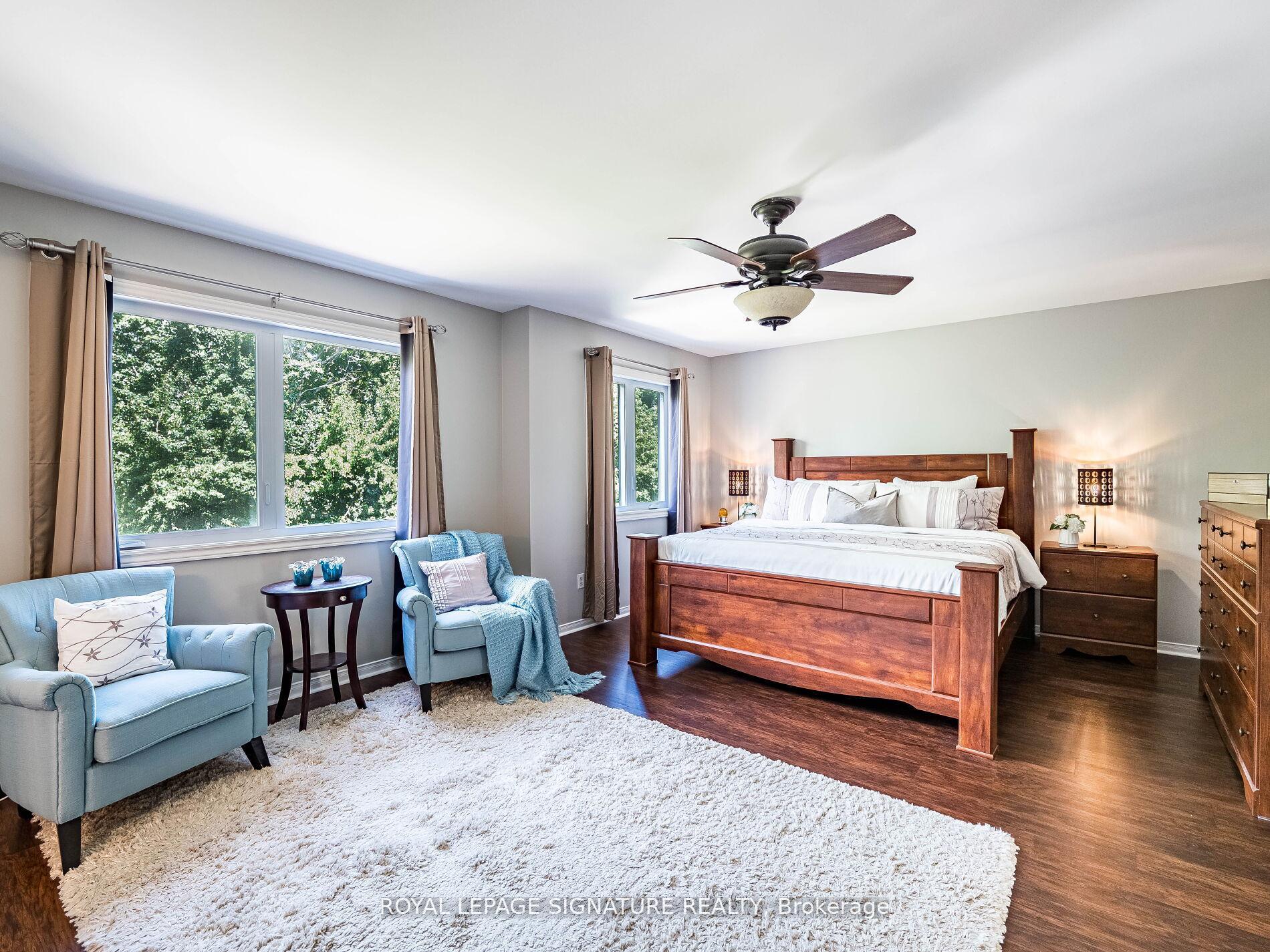 This stunning home and its quiet prime neighbourhood are a True Gift for you and your family. Your dream home with all the possibilities it holds, awaits in the heart of Milton’s most desirable Beaty community. This detached home blends over 4,500 sqft of luxury, comfort, and stylish living spaces in every detail. Offering unmatched and exceptional community living located near top rated schools, shops, plazas, restaurants, Hwys, GO Station, parks, trails, and more! The beautifully upgraded exterior boasts a modern double garage with sleek black doors, a charming covered porch, and a tasteful light brick finish with elegant grey accents give the home a contemporary look. Step inside through elegant glass front door into a Grand Foyer with soaring ceilings, where a stunning designer Chandelier cascades gracefully from above, creating an unforgettable first impression! The main floor features a separate living and dining rooms, offering defined spaces for formal and special gatherings. While the open-concept family room flows smoothly into the upgraded gourmet kitchen and a large breakfast area with direct access to your own private backyard oasis backing onto a picturesque stretch of lush greenery, this calm space sets the scene for peaceful evenings where you can unwind on the patio or fire up the BBQ for unforgettable outdoor entertaining. As you make your way up the elegant curved staircase with rich brown wooden steps, natural light floods the upper hallway creating a bright and uplifting ambiance. This smooth transition leads you to 5 spacious bedrooms; feature a generously sized primary bedroom with a large walk-in closet and a luxurious 6-piece ensuite, along with 4 additional well-appointed bedrooms, jack and jill 2nd bathroom, and a 3rd bathroom offering comfort for the family. The finished basement offers versatility with upgraded flooring and a 5th bathroom. Carpet free and smooth ceilings throughout the home! Advanced water softener and filtration system!