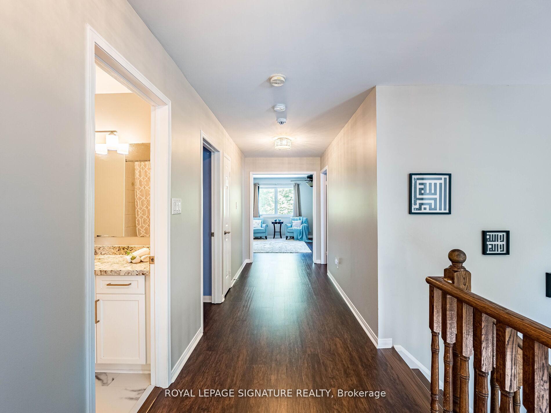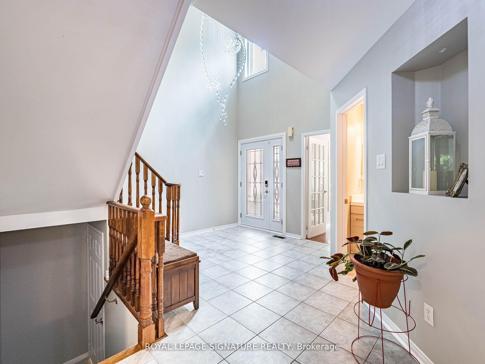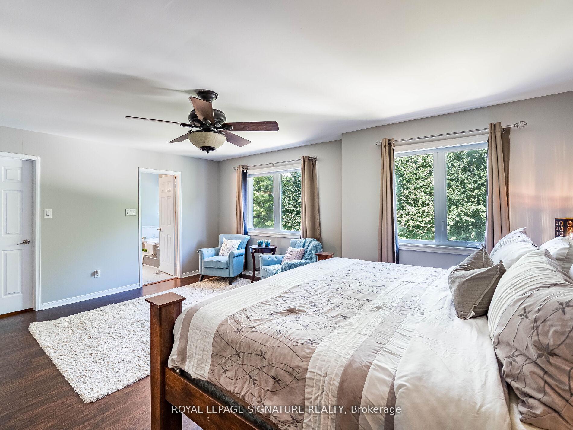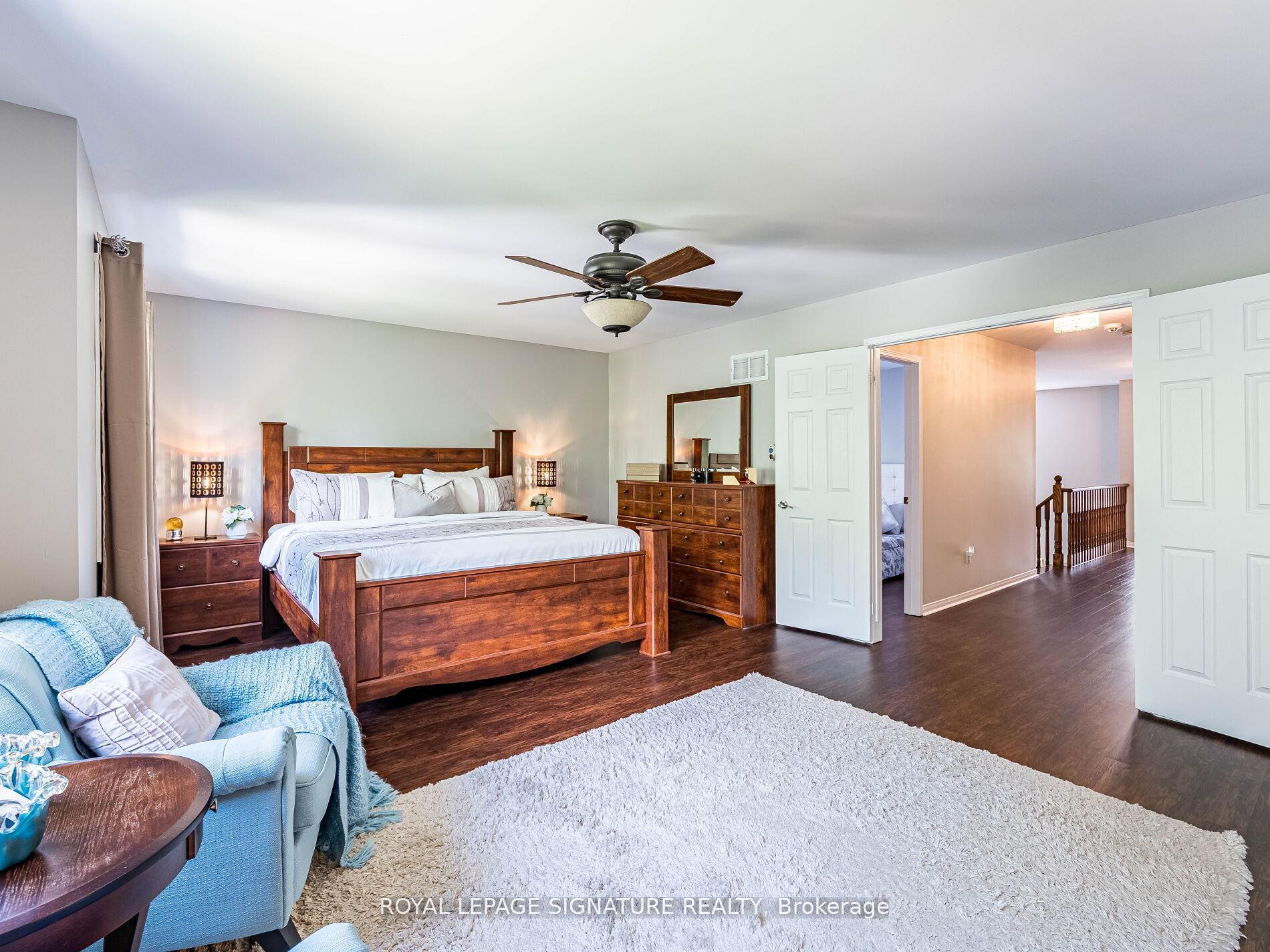 This stunning home and its quiet prime neighbourhood are a True Gift for you and your family. Your dream home with all the possibilities it holds, awaits in the heart of Milton’s most desirable Beaty community. This detached home blends over 4,500 sqft of luxury, comfort, and stylish living spaces in every detail. Offering unmatched and exceptional community living located near top rated schools, shops, plazas, restaurants, Hwys, GO Station, parks, trails, and more! The beautifully upgraded exterior boasts a modern double garage with sleek black doors, a charming covered porch, and a tasteful light brick finish with elegant grey accents give the home a contemporary look. Step inside through elegant glass front door into a Grand Foyer with soaring ceilings, where a stunning designer Chandelier cascades gracefully from above, creating an unforgettable first impression! The main floor features a separate living and dining rooms, offering defined spaces for formal and special gatherings. While the open-concept family room flows smoothly into the upgraded gourmet kitchen and a large breakfast area with direct access to your own private backyard oasis backing onto a picturesque stretch of lush greenery, this calm space sets the scene for peaceful evenings where you can unwind on the patio or fire up the BBQ for unforgettable outdoor entertaining. As you make your way up the elegant curved staircase with rich brown wooden steps, natural light floods the upper hallway creating a bright and uplifting ambiance. This smooth transition leads you to 5 spacious bedrooms; feature a generously sized primary bedroom with a large walk-in closet and a luxurious 6-piece ensuite, along with 4 additional well-appointed bedrooms, jack and jill 2nd bathroom, and a 3rd bathroom offering comfort for the family. The finished basement offers versatility with upgraded flooring and a 5th bathroom. Carpet free and smooth ceilings throughout the home! Advanced water softener and filtration system!