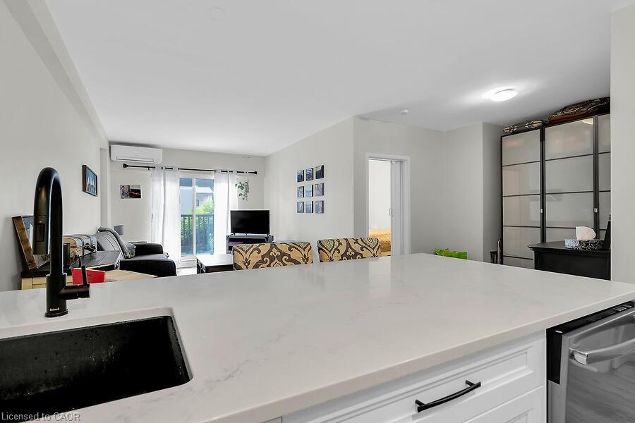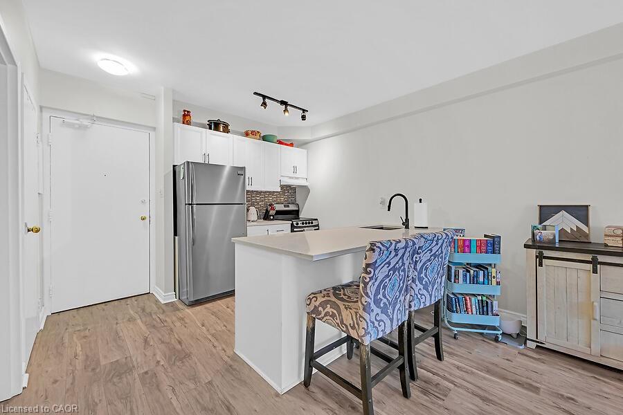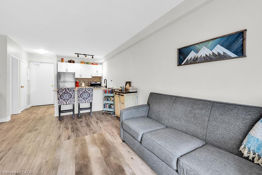 Welcome to Unit 102 at the The Crofts. This open concept 1 Bedroom 1 Bathroom Unit is conveniently located on the ground floor offering quick and barrier free access to your unit. Updates include New Vinyl flooring throughout, convenient kitchen island with breakfast bar, Ductless Air Conditioning installed in 2023, Extra Large balcony perfect for enjoying summer days!. Excellent Corktown location providing walking distance to near by Go Station, Local eateries and Pubs, as well as St. Joseph’s Hospital. Locker and Parking included! This convenient building offers: Sauna, Gym, and common BBQ, and Coin Laundry.
