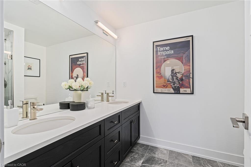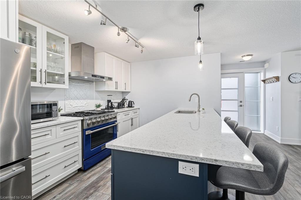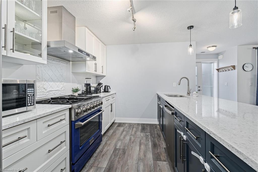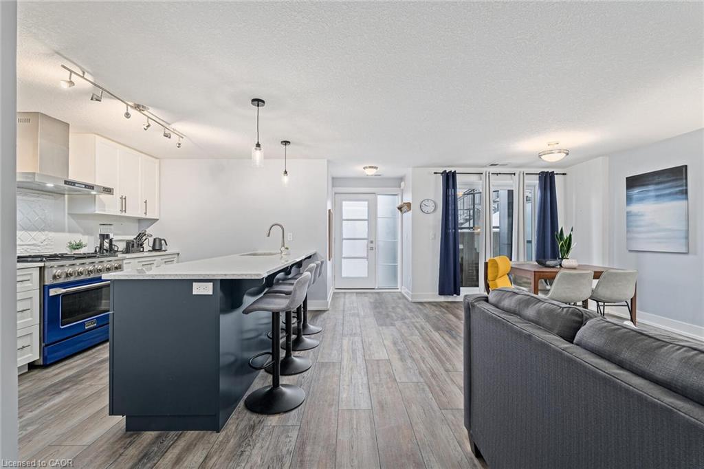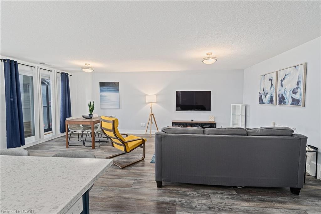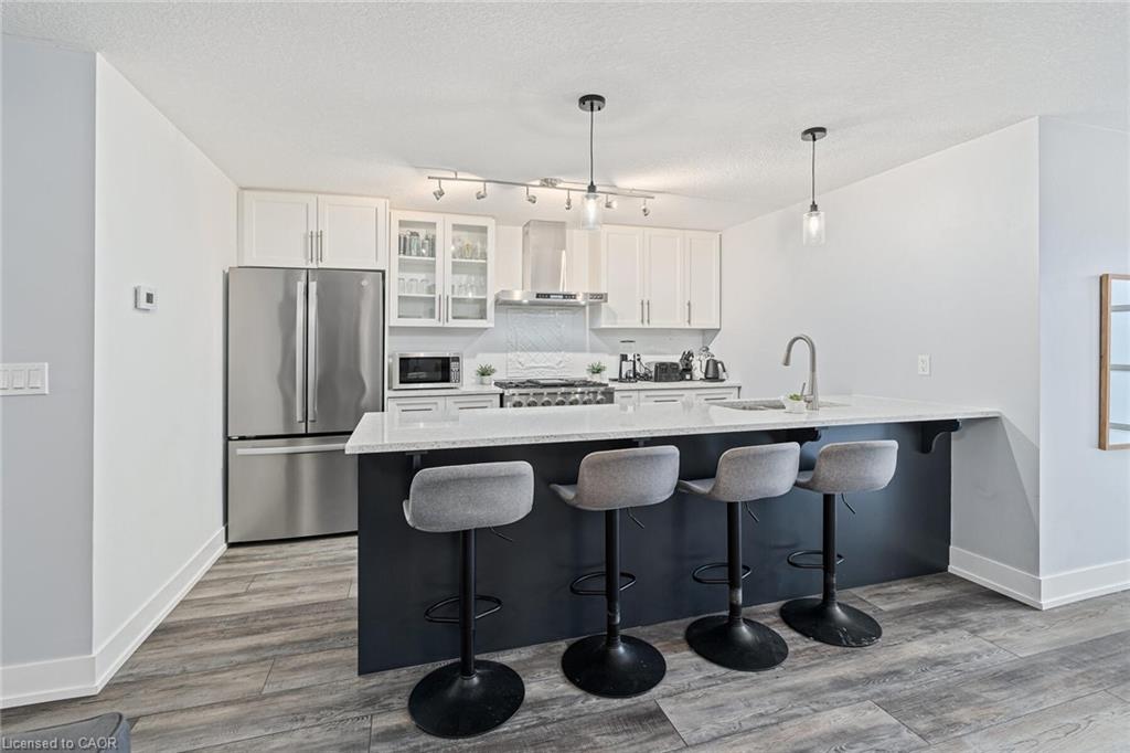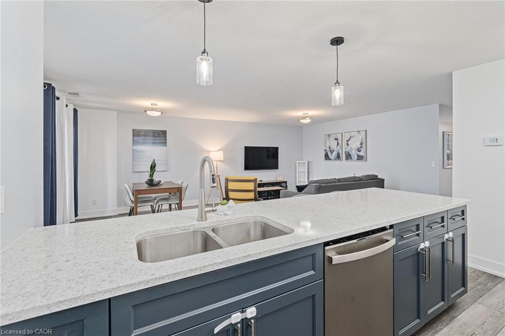 Built in 2021, this bright and beautifully maintained 2-bedroom, 2-bathroom apartment with 2 parking spots, in a highly walkable location, is ideal for first-time homebuyers, downsizers, or investors. Nestled in a quiet, safe, and friendly neighbourhood just minutes from the heart of downtown Orangeville, the home features an open-concept layout with luxury vinyl flooring throughout. The kitchen is thoughtfully designed with quartz countertops, stainless steel appliances, a gas stove, a double sink, ample cabinetry, and a peninsula with seating. The spacious living and dining area is perfect for relaxing or entertaining, with a convenient walkout to the terrace, perfect for barbecues and enjoying the warmer months. The primary bedroom includes a walk-in closet and a 4-piece ensuite with a quartz countertop and a double sink, while the second bedroom offers a double closet and easy access to the secondary 4-piece bathroom, also finished with quartz countertop and tile flooring. Enjoy low-maintenance living with a well-managed condo corporation that handles exterior maintenance, roofing, windows, doors, snow removal, landscaping, window washing, garbage removal, and visitor parking. With charming streets, local shops, restaurants, and seasonal community events nearby, everything you need is within easy reach.