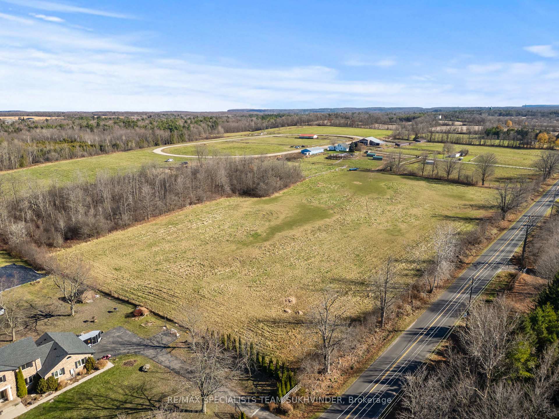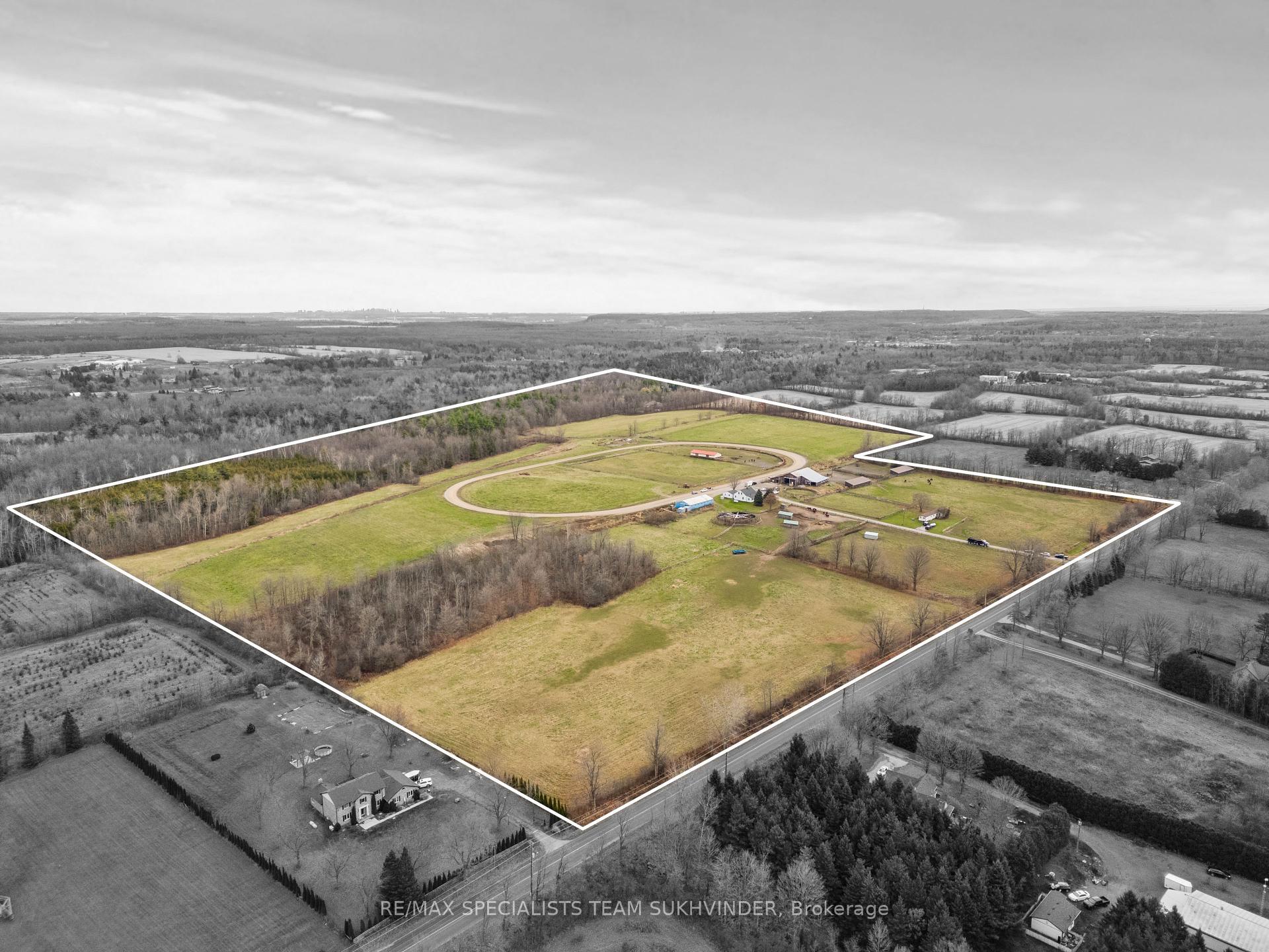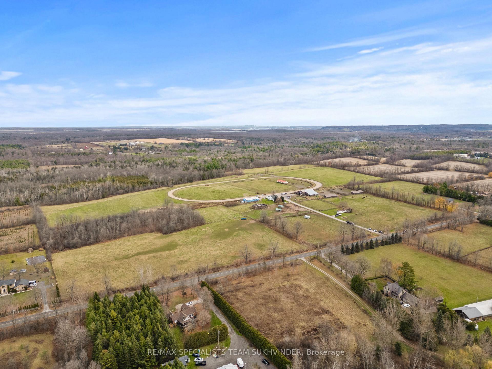 An Unparalleled Opportunity Awaits You With This 96-Acre Equestrian Farm, Located Just 5 Mins From Mohawk Racetrack and Hwy 401 in Milton. This Prime Location Is Surrounded by Multimillion-Dollar Estate Homes, Offering Tremendous Investment Potential and Maybe an Opportunity in the Future for Severance, Buyers to Verify.. The Property Features a Spacious 4-Bedroom Residence and a Separate Large 2-Bedroom Mobile Home With 1.5 Baths Perfect for Staff or Rental. Two Barns Include Extensive Equestrian Facilities: The Blue Barn Has 11Stalls, an Office, and a Wash Rack, While the Brown Barn Offers 16 Large Stalls and Equipment Storage. The Grounds Are Well-Equipped for Horse Training and Care, Including Multiple Sheds, Paddocks, and Private Horse Track. A Rare Blend of Tranquil Country Living and Extraordinary Investment Opportunity.