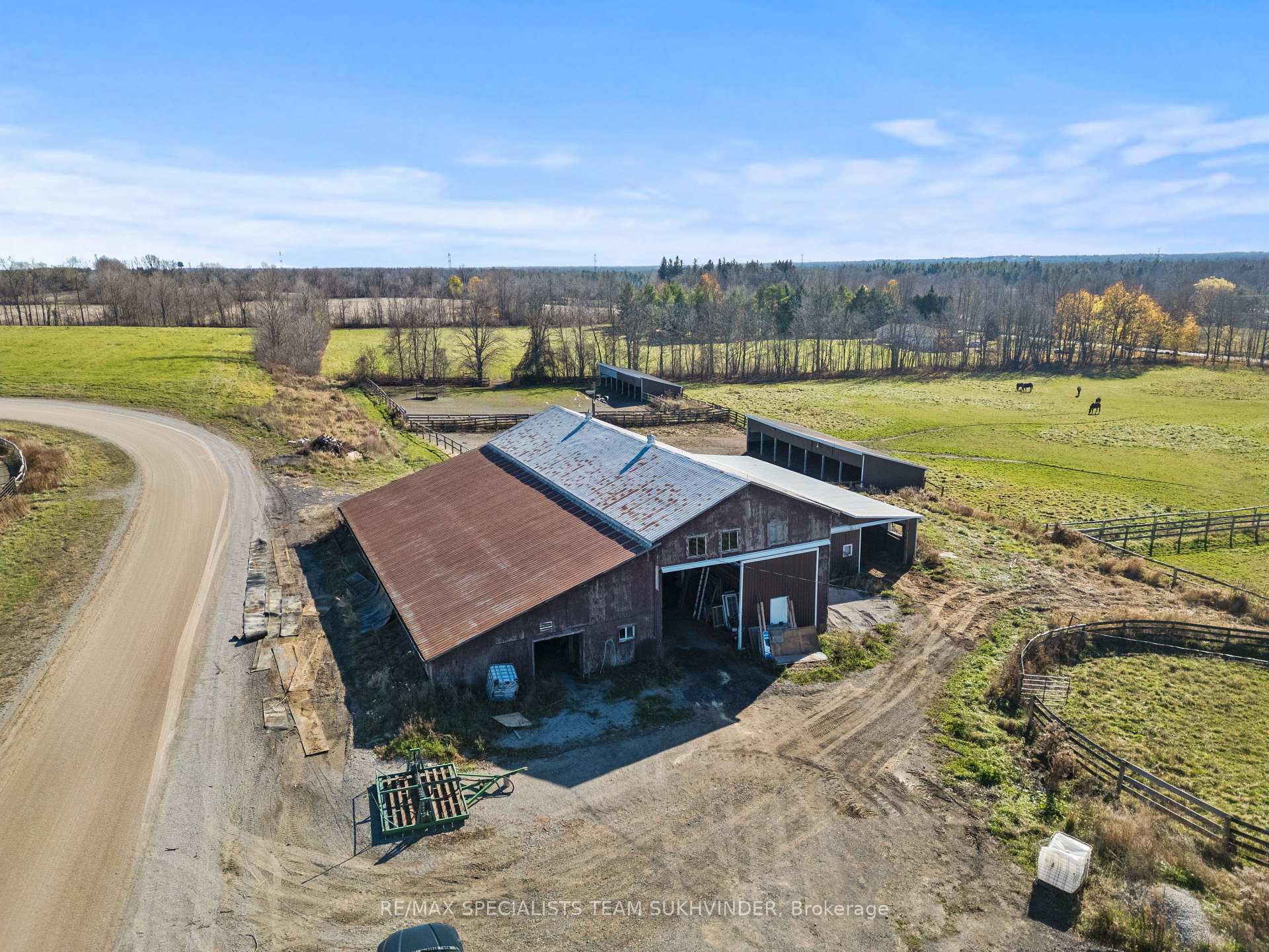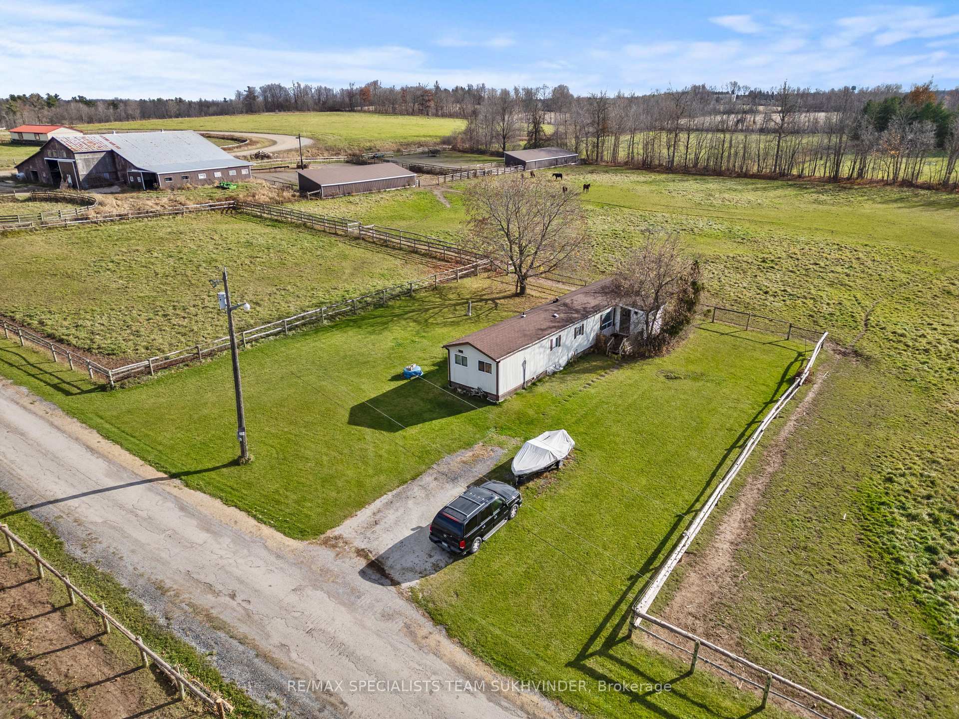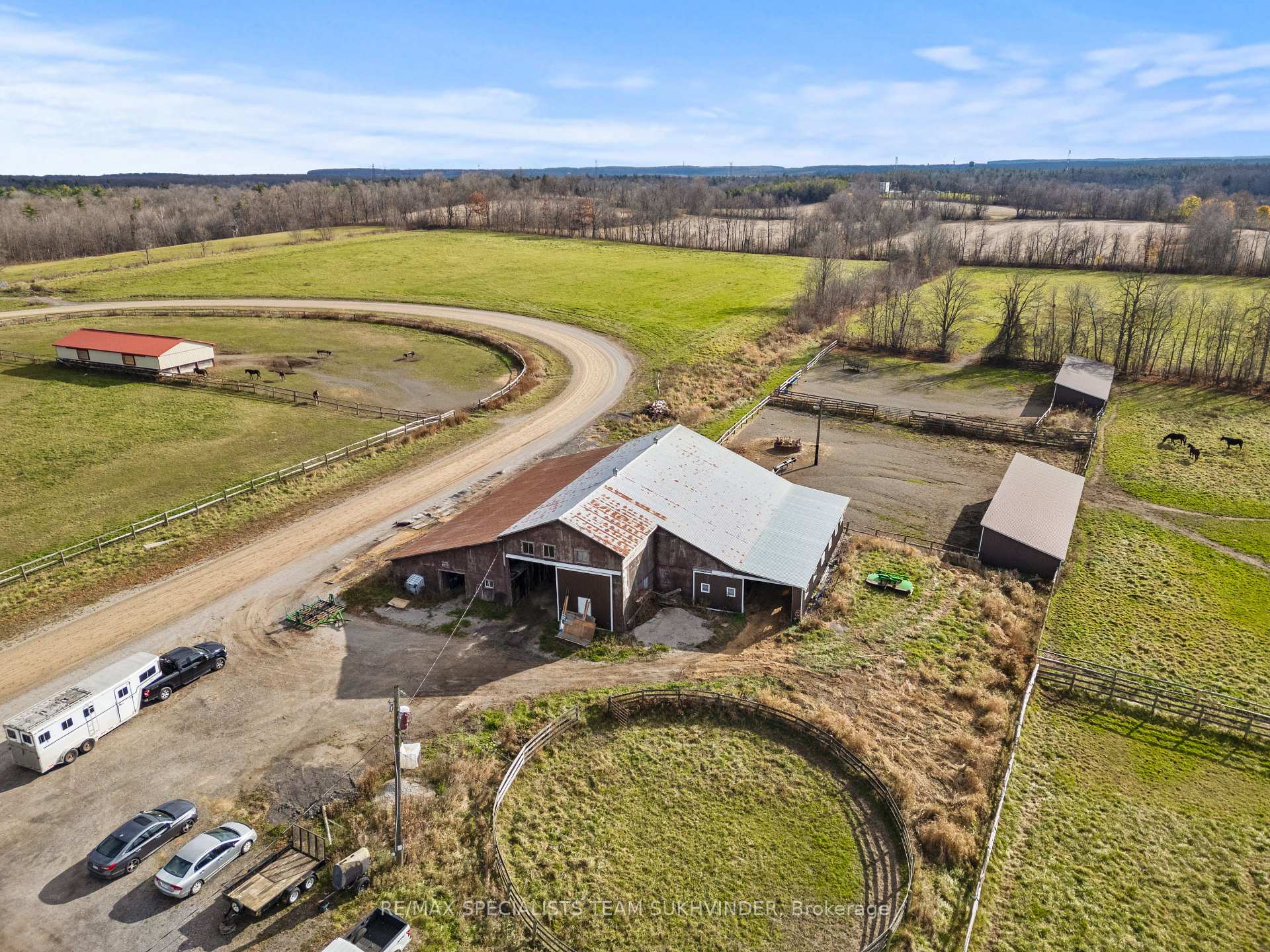 An Unparalleled Opportunity Awaits You With This 96-Acre Equestrian Farm, Located Just 5 Mins From Mohawk Racetrack and Hwy 401 in Milton. This Prime Location Is Surrounded by Multimillion-Dollar Estate Homes, Offering Tremendous Investment Potential and Maybe an Opportunity in the Future for Severance, Buyers to Verify.. The Property Features a Spacious 4-Bedroom Residence and a Separate Large 2-Bedroom Mobile Home With 1.5 Baths Perfect for Staff or Rental. Two Barns Include Extensive Equestrian Facilities: The Blue Barn Has 11Stalls, an Office, and a Wash Rack, While the Brown Barn Offers 16 Large Stalls and Equipment Storage. The Grounds Are Well-Equipped for Horse Training and Care, Including Multiple Sheds, Paddocks, and Private Horse Track. A Rare Blend of Tranquil Country Living and Extraordinary Investment Opportunity.