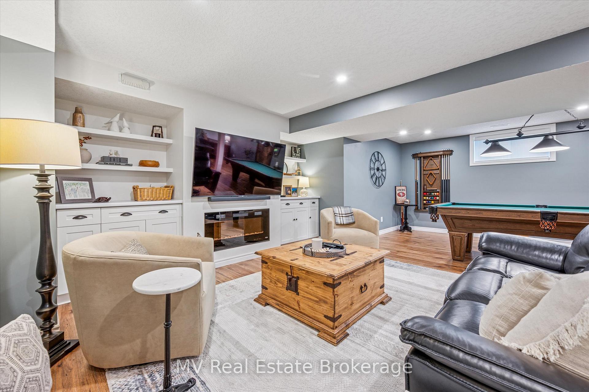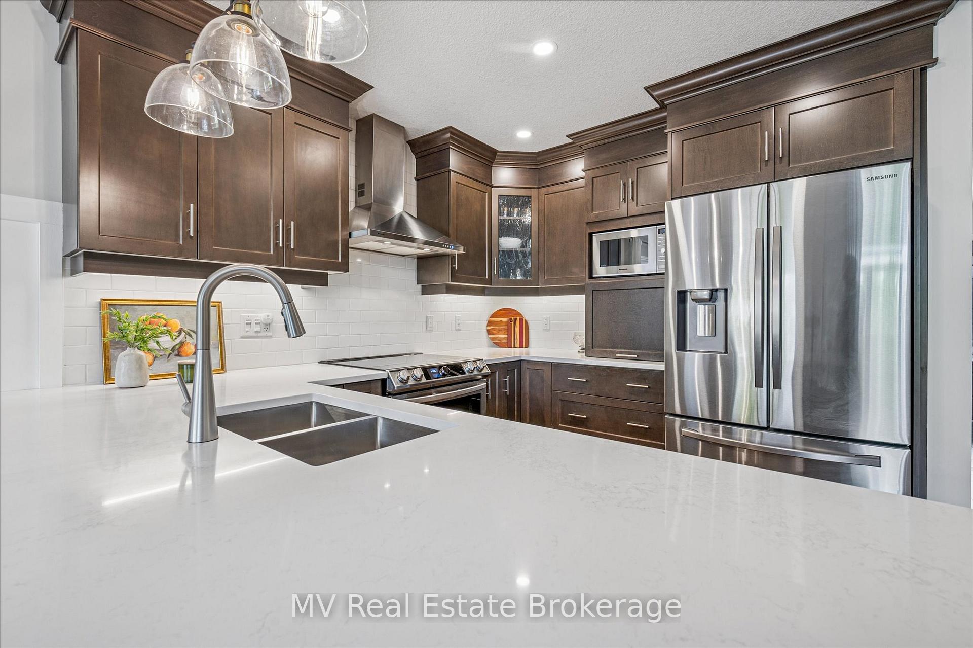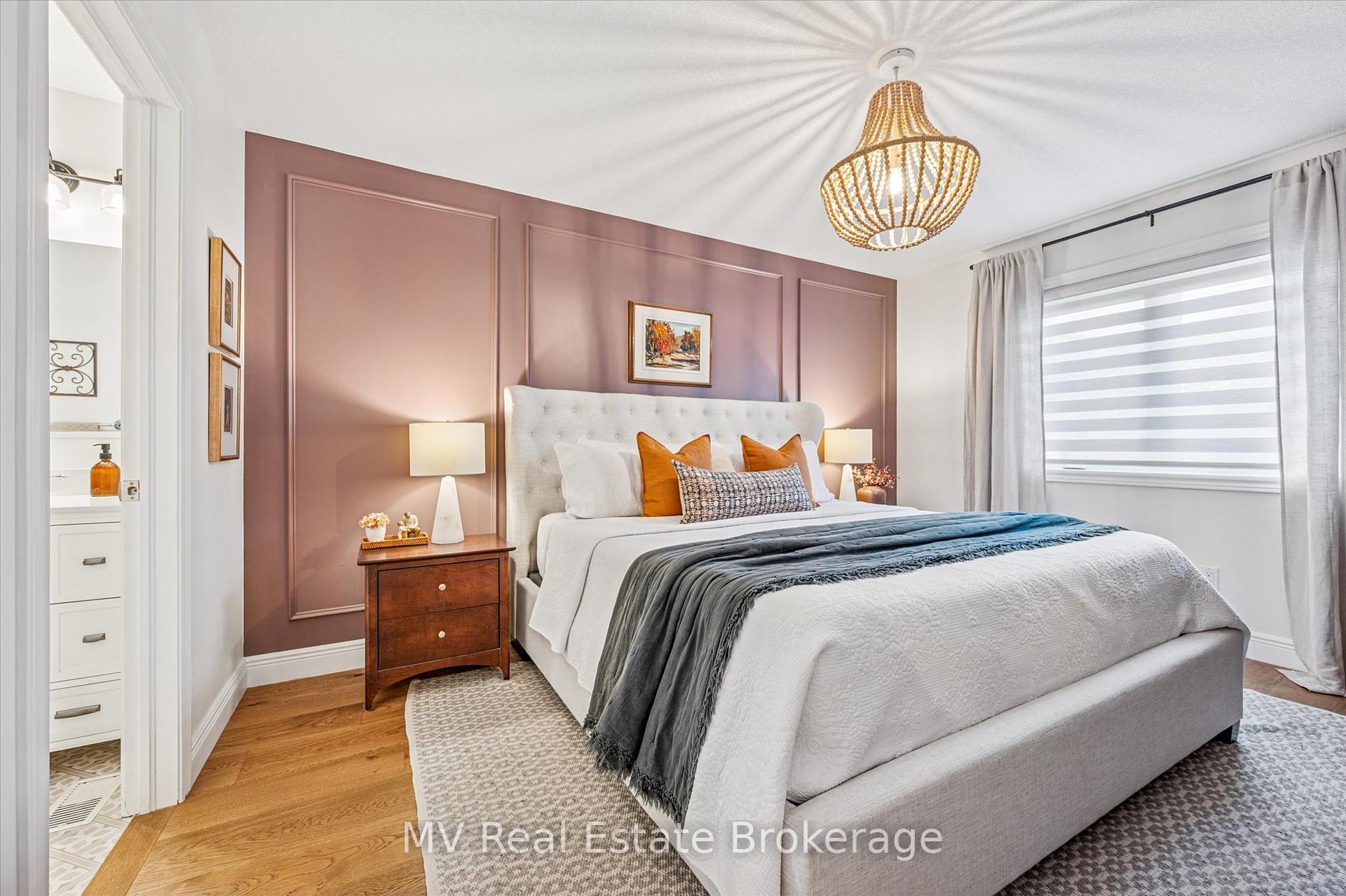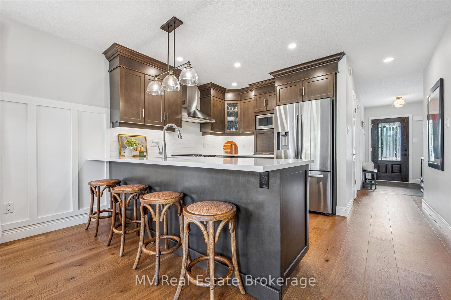 Tucked into one of Elora’s most welcoming neighbourhoods, just steps from the trail and minutes from the charm of downtown, this thoughtfully updated bungalow offers comfort, style, and simplicity in equal measure. Intelligent updates and timeless finishes create a space that’s both functional and beautiful – from quartz countertops and custom cabinetry to hardwood floors, curated lighting, and motorized window coverings. The open-concept kitchen, dining, and living areas flow seamlessly to a private deck with retractable shades and a Hydropool hot tub – perfect for quiet mornings or relaxed evenings. The insulated garage with built-in shelving and workshop space adds versatility, while board and batten accents, upgraded bathrooms, and interlock walkways reflect the care poured into every detail. Downstairs, a fully finished basement offers even more living space, complete with a bedroom, full bathroom, gym, cozy family room with fireplace, and a sprawling rec room. Whether you’re starting a new chapter or simply seeking a home that lives well in every season, this Elora gem delivers low-maintenance living with high-impact style.