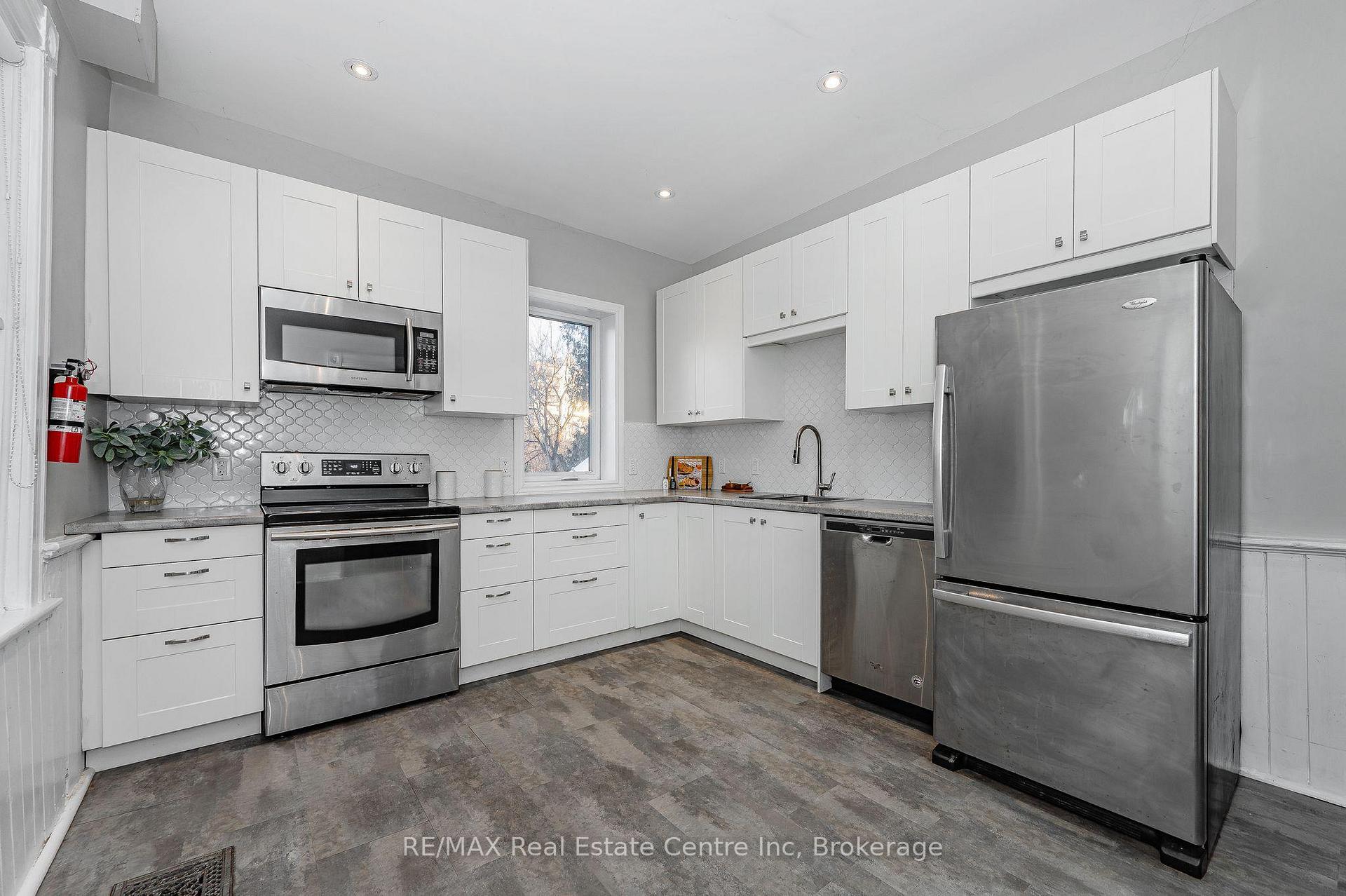 Welcome to 103 Surrey St E, beautifully renovated century home nestled in one of Guelph’s most desirable locations, just a short stroll from vibrant downtown! This 3-bdrm property offers excellent upside W/the potential to add a 4th bdrm, making it especially attractive for student housing, rental investors or parents purchasing for their students. Positioned within walking distance to downtown, GO Train & University, the home sits in a high-demand rental corridor consistently sought after by students & young professionals. With student rents on the rise, prices having adjusted-rare opportunity to own a detached home under $500,000, lower interest rates & City of Guelph loosening restrictions, this represents one of the most favourable markets in recent years for student rentals & an excellent time to act. Upon entry you’re greeted by bright & airy living room featuring solid hardwood floors & multiple windows. The living room flows effortlessly into spacious dining room ideal for hosting family gatherings or dinner parties with friends. Eat-in kitchen is a showstopper with fresh white cabinetry, beautiful backsplash & S/S appliances. Charming wainscoting adds character & direct access to the deck makes outdoor entertaining a breeze-perfect for BBQs with friends & family. Upstairs you’ll find 3 spacious bdrms all with hardwood floors, high baseboards & large windows. Modern 3pc bath features sleek vanity & convenient stackable laundry. With room to add a 4th bdrm & zoning that allows for future possibilities, this home offers incredible flexibility! Property also includes detached garage at the back, perfect for add’l storage & parking. Home has been mechanically updated: newer furnace, wiring, windows & plumbing along with cosmetic upgrades such as the kitchen, bathroom & flooring. This property’s location is unbeatable: walking distance to restaurants, boutiques, nightlife & more! Local gems like Sugo on Surrey & Zen Gardens are at your doorstep! Being sold as is.