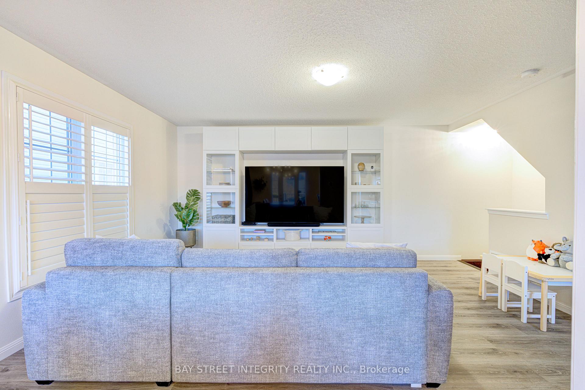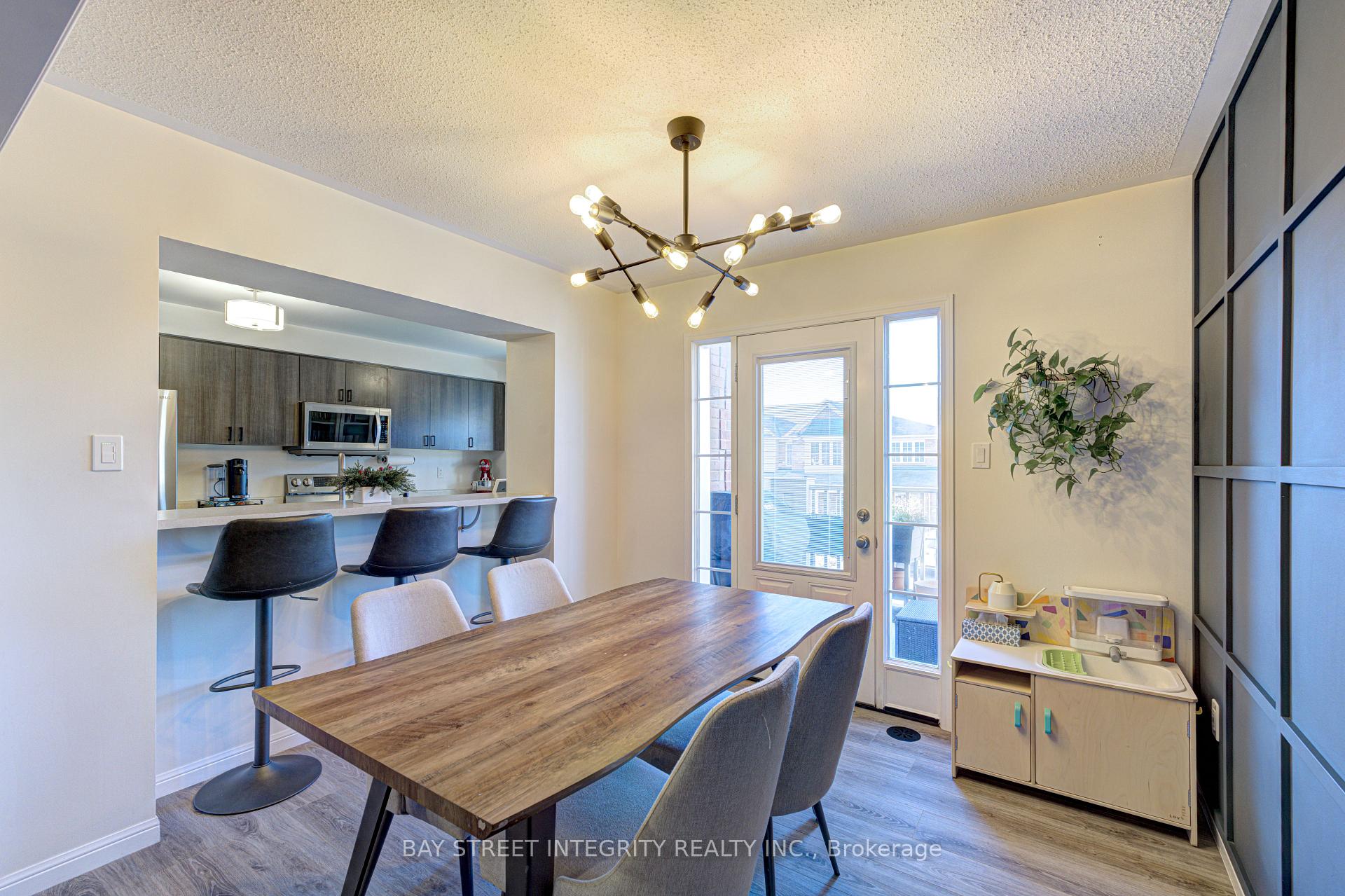 Welcome to 1033 Stemman Place a beautifully maintained 3-bedroom end-unit freehold townhome nestled in Miltons highly sought after Willmott community. This bright, energy-efficient home features an open-concept layout designed for both comfortable family living and effortless entertaining. The entry level offers a welcoming foyer, a convenient powder room, and a laundry room with a full-size washer and dryer on pedestals and ample storage space. Upstairs, natural sunlight pours through the California shutters into the spacious main living and dining areas that flow seamlessly into a contemporary kitchen with upgraded appliances (2021), ample cabinetry and a breakfast bar. From the dining area, step outside to a large deck with plenty of space for a BBQ and patio furniture, perfect for summer entertaining or relaxing outdoors. Located on a quiet, family-friendly street with friendly neighbours, this move-in ready home offers three generous sized bedrooms, tasteful finishes such as accent walls, upgraded light fixtures, and updated washroom vanities. Located in a prime location close to parks, well-ranked schools, and the Milton Sports Centre this home delivers comfort, style, and unbeatable convenience. Dont miss your chance to own a beautiful home in one of Miltons most desirable neighbourhoods!Automatic Garage Opener (2021)Fridge, Stove, B/I Dishwasher, Microwave (2021)Nest Thermostat & Yale Home Keyless entry (2021)Washer/Dryer Machines on pedestals (2022)Integrated blinds on patio door (2023)Tankless Water heater (2024)