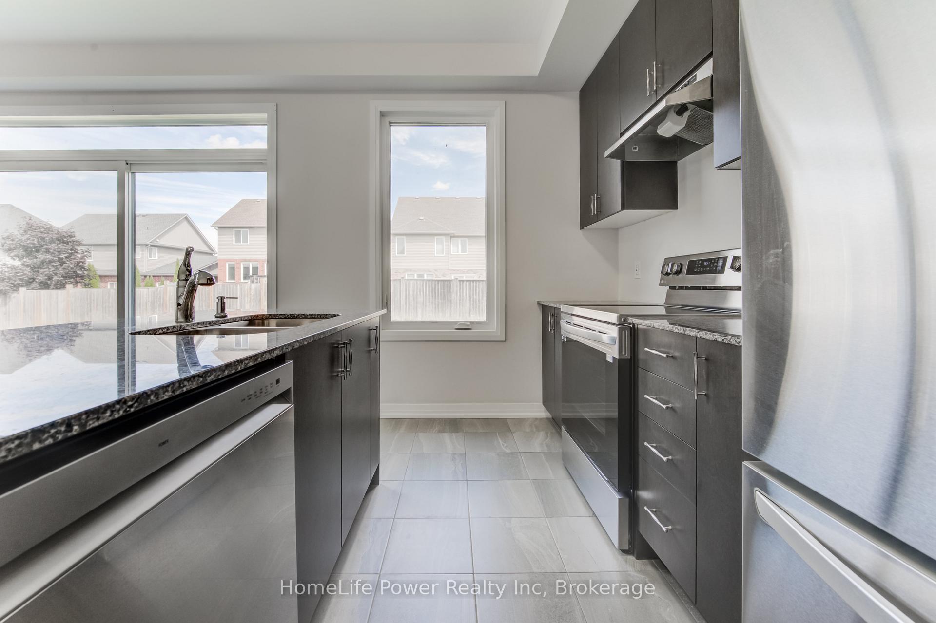 A stylish 3-bedroom, 3-bathroom home nestled in the sought-after Westwood Village community of Cambridge. The main floor boasts a bright, functional layout featuring a modern kitchen with quality finishes, a comfortable living area, and a dining space with a walk-out to the backyard perfect for both everyday living and entertaining. Upstairs, the spacious primary bedroom serves as a private retreat with its own in-suite bathroom. The two additional bedrooms are comfortably sized, offering flexibility for family, guests, or a dedicated home office. A second full bathroom on the upper level and a convenient main floor powder room provide added practicality. This home includes an attached garage and a private driveway with parking for two vehicles. Situated in a quiet, family-friendly neighborhood with a beautiful park already in place, and close to schools, shopping, and other amenities, this property combines modern comfort, thoughtful design, and an ideal location.