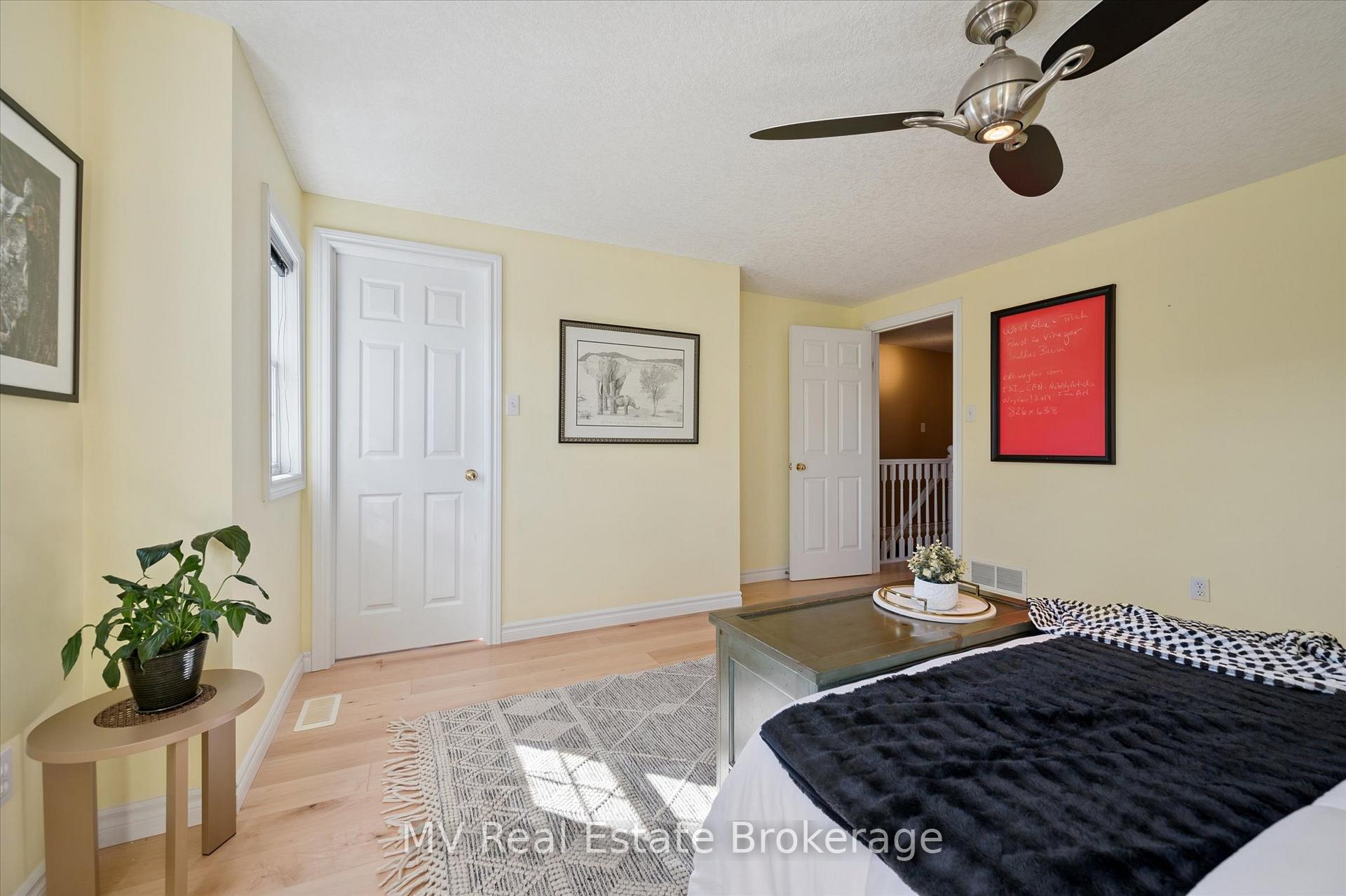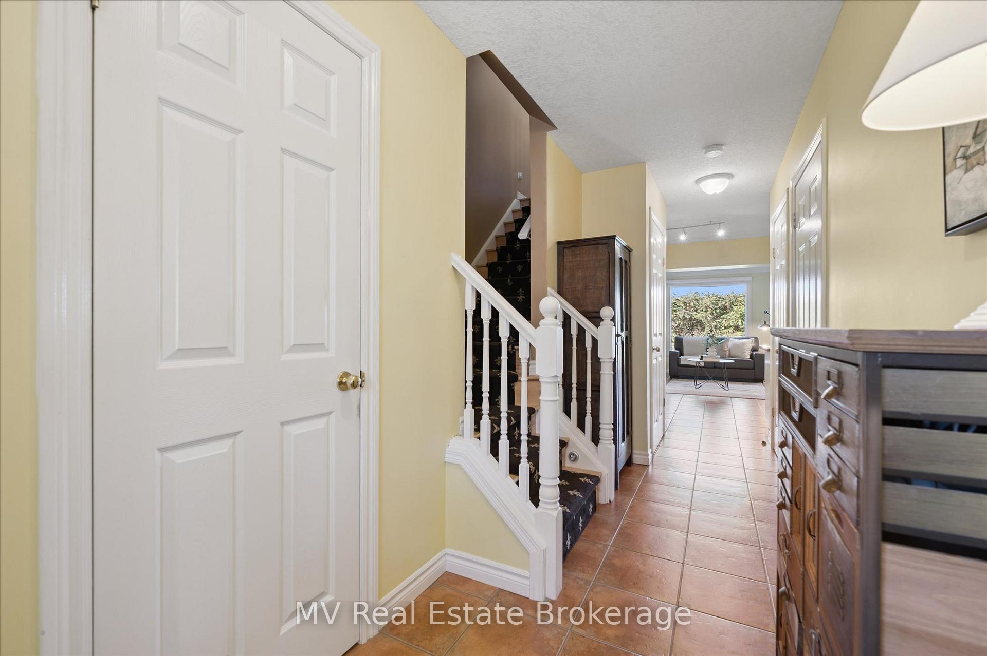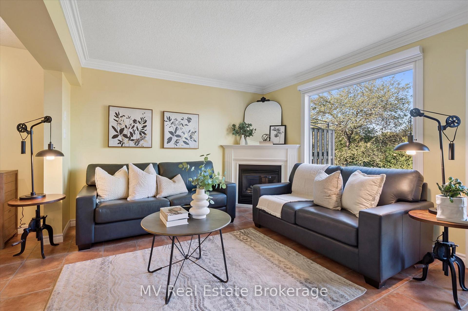 Welcome to one of Fergus’s most loved neighbourhoods in the north end where pride of ownership and community spirit shine. This stunning, meticulously maintained townhouse doesn’t feel like one inside or out. Thoughtfully designed, it offers the perfect balance of comfort, privacy, and modern living, set on a deep, beautifully landscaped lot backing onto open farmland for peaceful views. Step inside to discover a bright, open-concept main floor with a large window and patio door that fill the home with natural light. The living room features a cozy gas fireplace, while the spacious kitchen offers ample storage and a view to the backyard oasis. Upstairs, you’ll find three inviting bedrooms including a generous primary suite, office space, and a beautifully updated bathroom with a brand new custom glass shower. Downstairs, the fully finished basement extends your living space with a large family room featuring an electric fireplace perfect for movie nights or a playroom along with plenty of storage. Outside, unwind on the private front porch surrounded by mature landscaping or enjoy evenings in your backyard paradise, complete with a custom firepit area, pond, more stunning landscaping, and newer fencing. Backing onto protected forestry and farmer fields, with incredible views, sunsets and wildlife, not your typical subdivision views here. Every upgrade has been professionally done, from newer flooring and lighting to roof, furnace, A/C, water softener, eavestroughs and more. PLUS, a door from the the interior of the home to the garage, a truly rare find! Located steps from parks, the dog park, trails, and shopping, this move-in ready home offers exceptional value in one of Fergus’s most desirable areas. With wonderful neighbours and a layout designed for families, first-time buyers, or downsizers alike, its easy to see why homes like this rarely come to market. Interboard listing (Cornerstone): 40780842