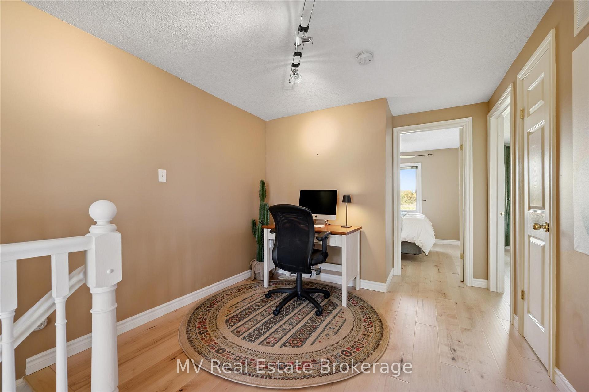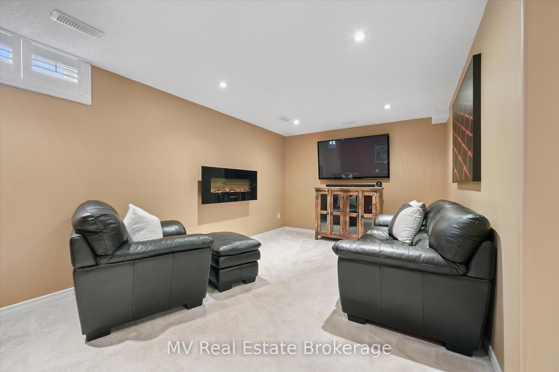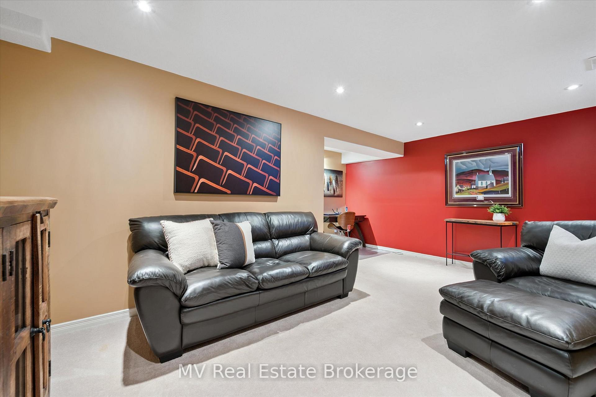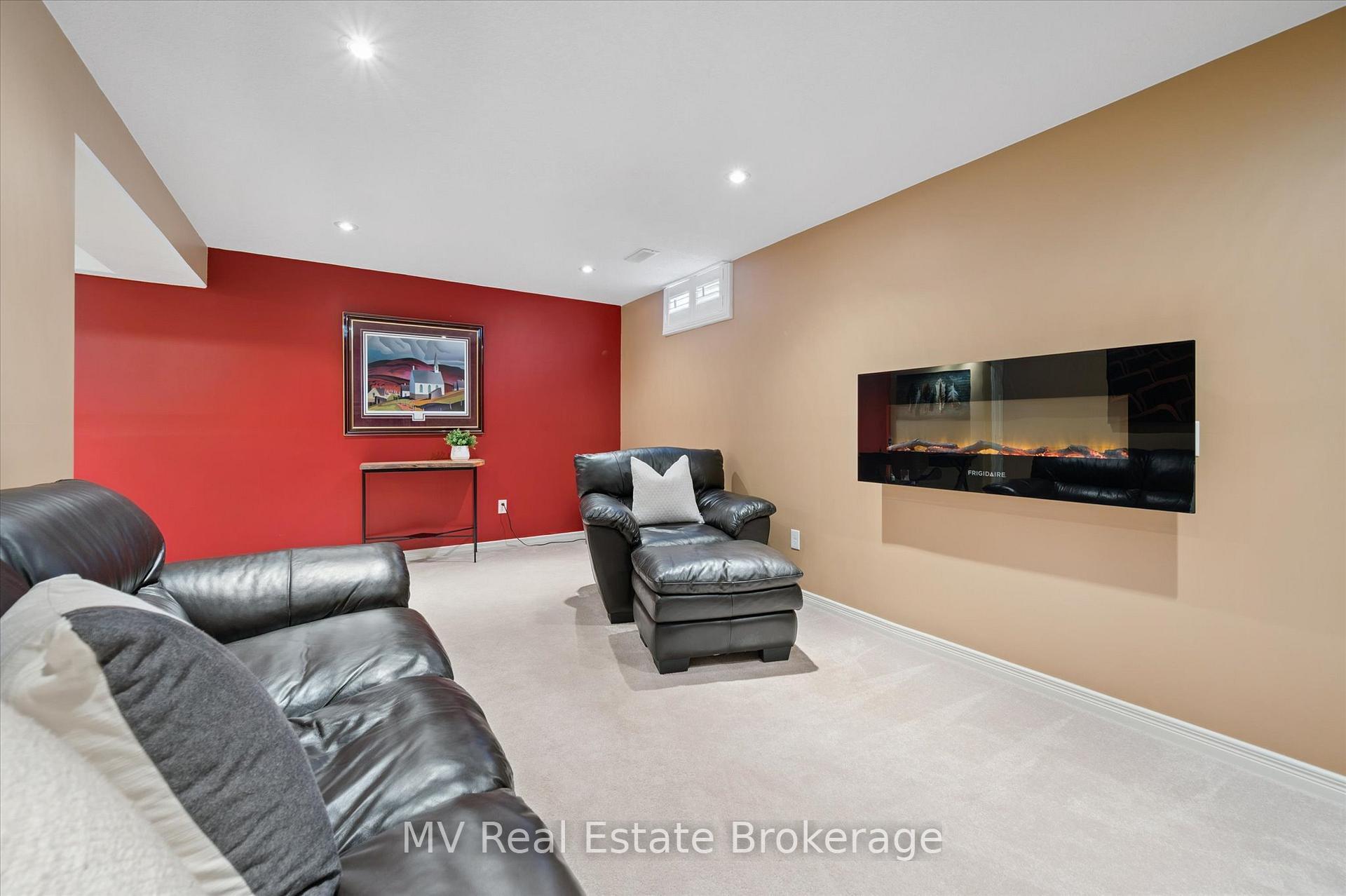 Welcome to one of Fergus’s most loved neighbourhoods in the north end where pride of ownership and community spirit shine. This stunning, meticulously maintained townhouse doesn’t feel like one inside or out. Thoughtfully designed, it offers the perfect balance of comfort, privacy, and modern living, set on a deep, beautifully landscaped lot backing onto open farmland for peaceful views. Step inside to discover a bright, open-concept main floor with a large window and patio door that fill the home with natural light. The living room features a cozy gas fireplace, while the spacious kitchen offers ample storage and a view to the backyard oasis. Upstairs, you’ll find three inviting bedrooms including a generous primary suite, office space, and a beautifully updated bathroom with a brand new custom glass shower. Downstairs, the fully finished basement extends your living space with a large family room featuring an electric fireplace perfect for movie nights or a playroom along with plenty of storage. Outside, unwind on the private front porch surrounded by mature landscaping or enjoy evenings in your backyard paradise, complete with a custom firepit area, pond, more stunning landscaping, and newer fencing. Backing onto protected forestry and farmer fields, with incredible views, sunsets and wildlife, not your typical subdivision views here. Every upgrade has been professionally done, from newer flooring and lighting to roof, furnace, A/C, water softener, eavestroughs and more. PLUS, a door from the the interior of the home to the garage, a truly rare find! Located steps from parks, the dog park, trails, and shopping, this move-in ready home offers exceptional value in one of Fergus’s most desirable areas. With wonderful neighbours and a layout designed for families, first-time buyers, or downsizers alike, its easy to see why homes like this rarely come to market. Interboard listing (Cornerstone): 40780842