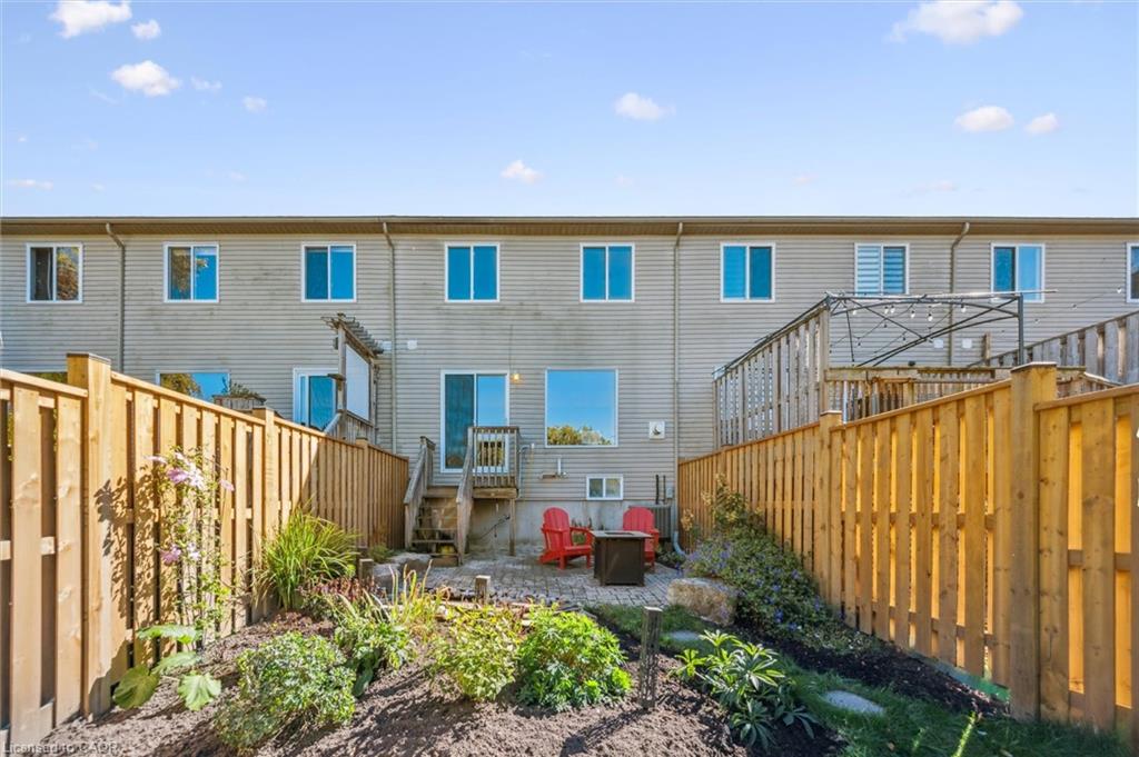 WWelcome to one of Fergus’s most loved neighbourhoods in the north end where pride of ownership and community spirit shine. This stunning, meticulously maintained townhouse doesn’t feel like one inside or out. Thoughtfully designed, it offers the perfect balance of comfort, privacy, and modern living, set on a deep, beautifully landscaped lot backing onto open farmland for peaceful views. Step inside to discover a bright, open-concept main floor with a large window and patio door that fill the home with natural light. The living room features a cozy gas fireplace, while the spacious kitchen offers ample storage and a view to the backyard oasis. Upstairs, you’ll find three inviting bedrooms including a generous primary suite, office space, and a beautifully updated bathroom with a brand new custom glass shower. Downstairs, the fully finished basement extends your living space with a large family room featuring an electric fireplace perfect for movie nights or a playroom along with plenty of storage. Outside, unwind on the private front porch surrounded by mature landscaping or enjoy evenings in your backyard paradise, complete with a custom firepit area, pond, more stunning landscaping, and newer fencing. Backing onto protected forestry and farmer fields, with incredible views, sunsets and wildlife, not your typical subdivision views here. Every upgrade has been professionally done, from newer flooring and lighting to roof, furnace, A/C, water softener, eavestroughs and more. PLUS, a door from the the interior of the home to the garage, a truly rare find! Located steps from parks, the dog park, trails, and shopping, this move-in ready home offers exceptional value in one of Fergus’s most desirable areas. With wonderful neighbours and a layout designed for families, first-time buyers, or downsizers alike, its easy to see why homes like this rarely come to market.