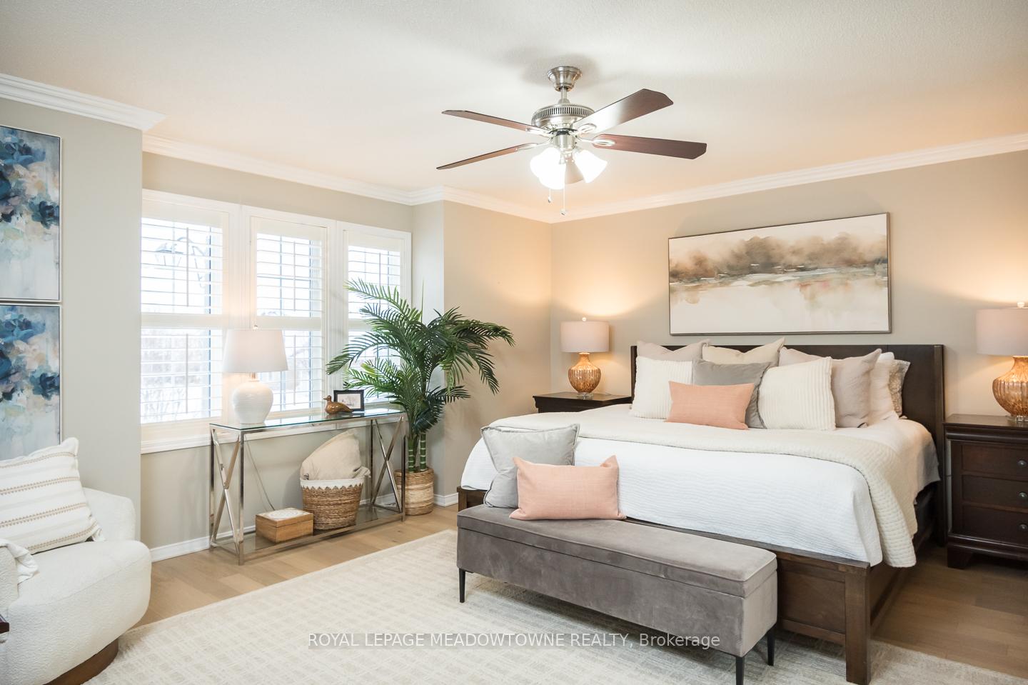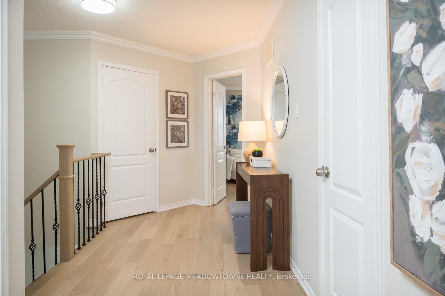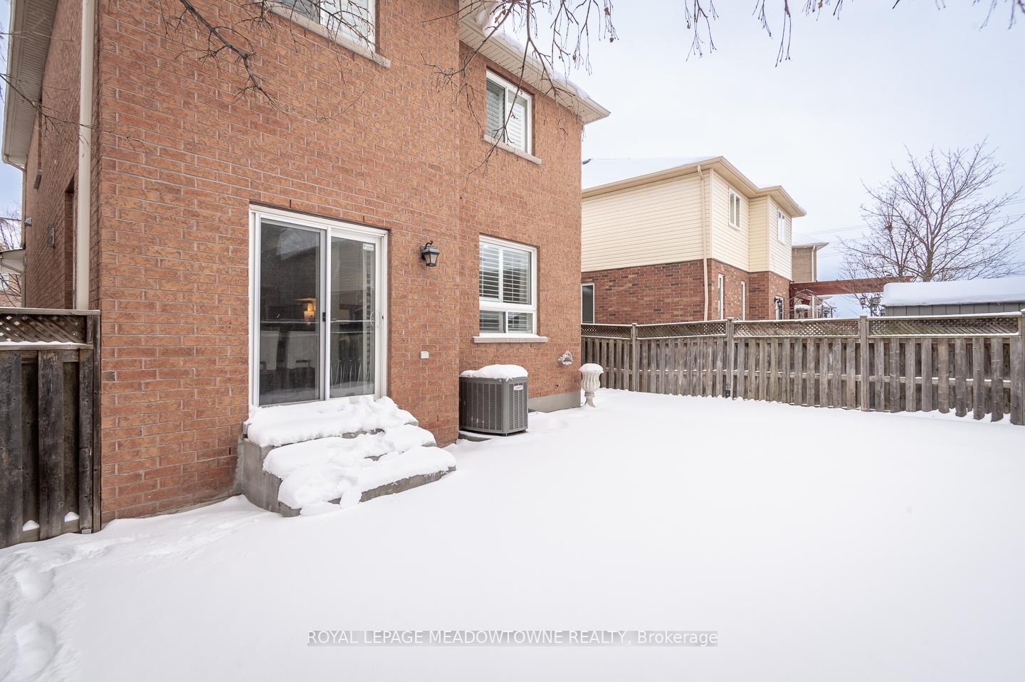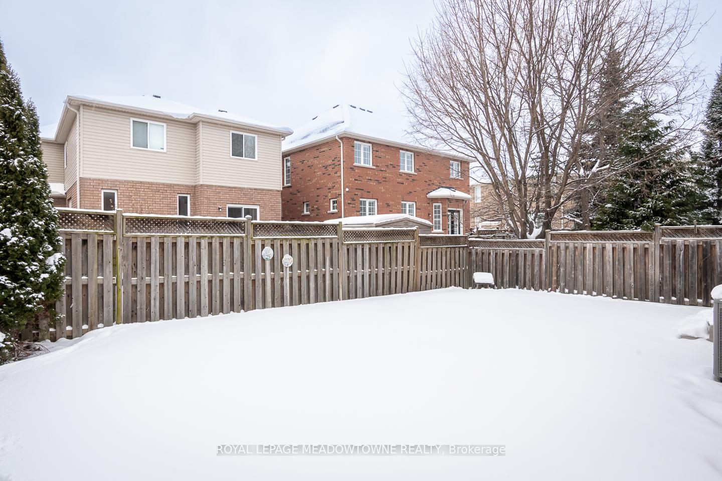 Located in the desirable Beaty neighbourhood of Milton, this beautifully maintained home offers an exceptional blend of space, updates, and commuter convenience. Within walking distance to parks, schools, and everyday amenities and with quick access to the 401, 407, and GO Station, the location is ideal for busy families and professionals alike. The home features impressive curb appeal with a large covered front porch, no sidewalk, and parking for up to six vehicles including a double car garage with interior access. Inside, 9-foot ceilings, crown mouldings, hardwood flooring, upgraded lighting, pot lights, and a neutral colour palette enhance the open-concept main floor, which also includes a powder room. The bright eat-in kitchen showcases granite countertops, tile backsplash, stainless steel appliances and direct access to the fully fenced backyard with a low-maintenance concrete patio and garage walk-through. Upstairs, three generously sized bedrooms include a spacious primary retreat with walk-in closet and 4-piece ensuite, complemented by an updated main bath and laundry room. The beautifully finished basement (2023) adds valuable living space with a large rec room, bonus office space, bedroom, and full bath, perfect for guests or extended family. Major updates include furnace and air conditioner (2022) and roof (2023), offering peace of mind and move-in-ready comfort.
