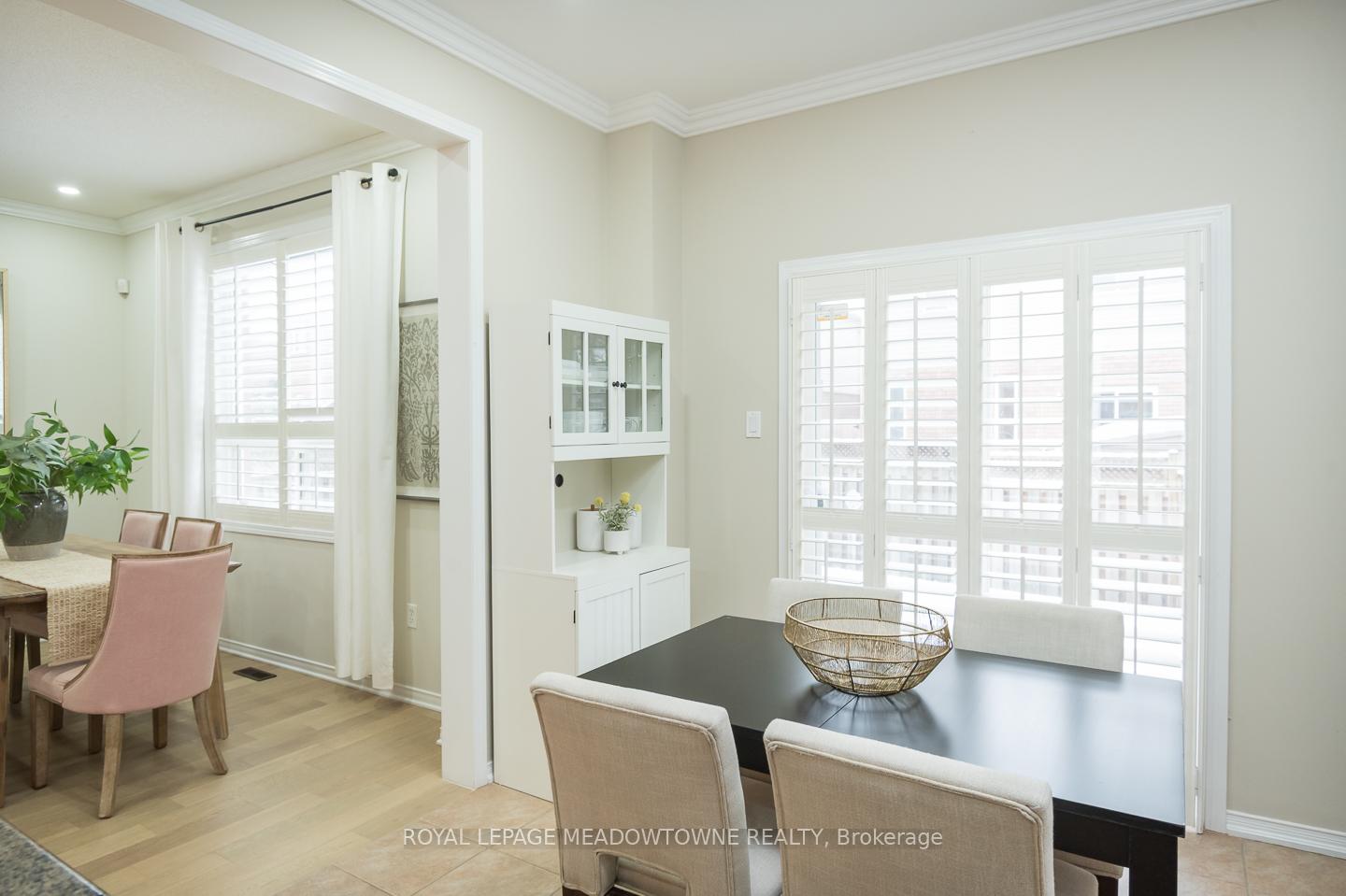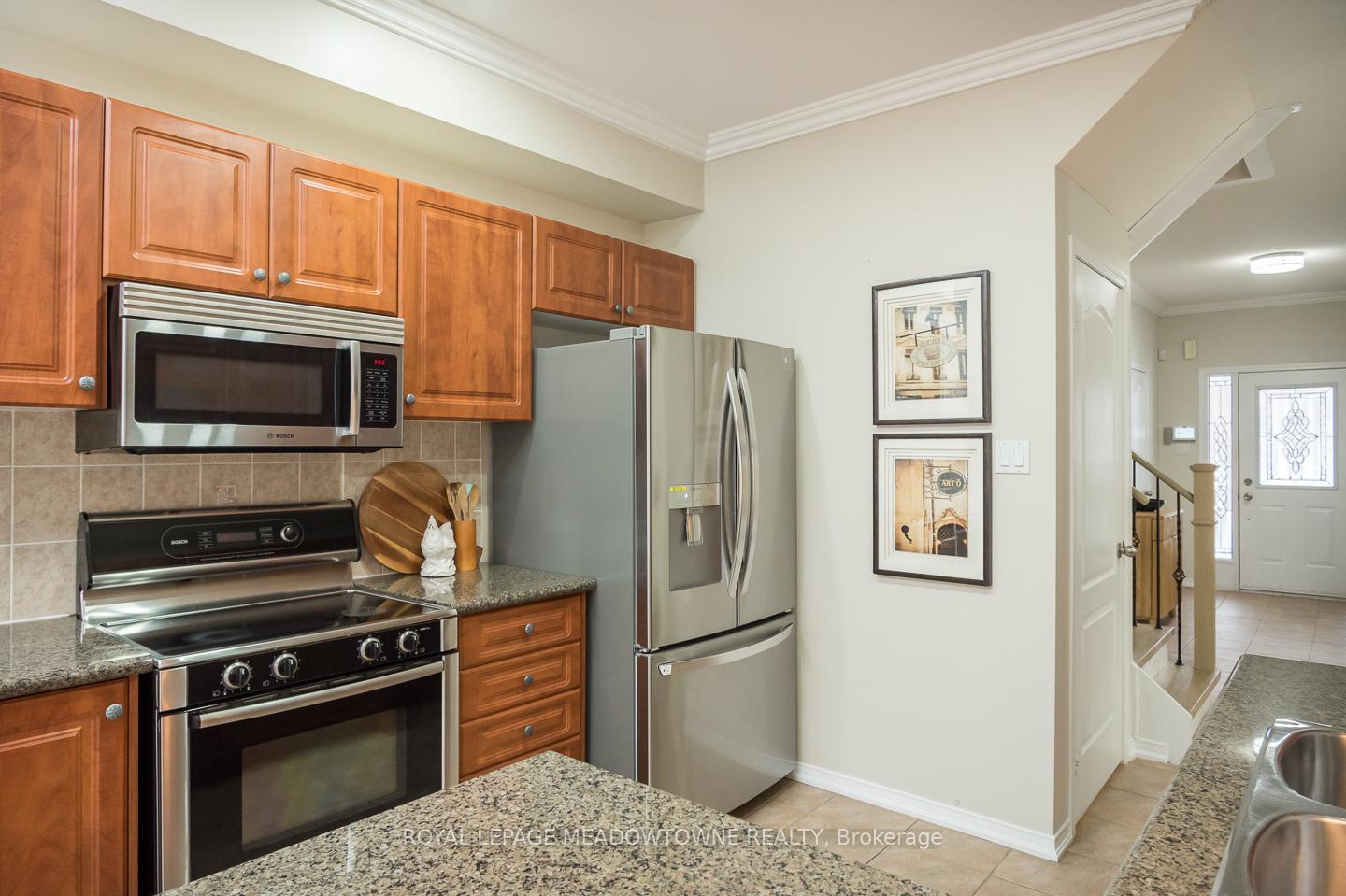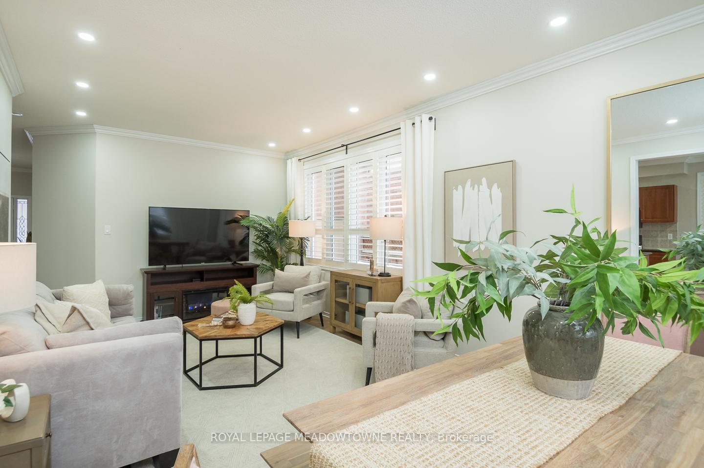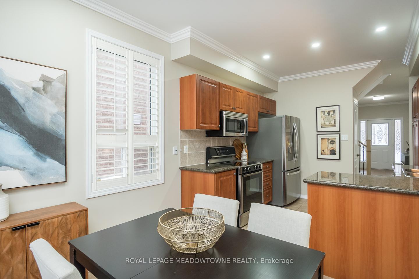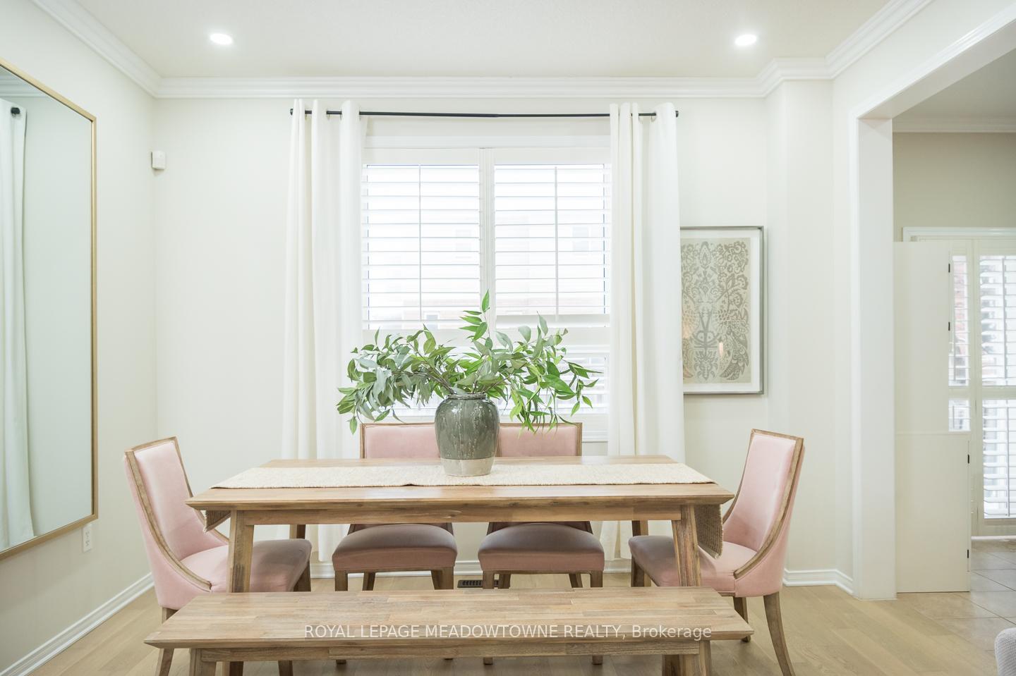 Located in the desirable Beaty neighbourhood of Milton, this beautifully maintained home offers an exceptional blend of space, updates, and commuter convenience. Within walking distance to parks, schools, and everyday amenities and with quick access to the 401, 407, and GO Station, the location is ideal for busy families and professionals alike. The home features impressive curb appeal with a large covered front porch, no sidewalk, and parking for up to six vehicles including a double car garage with interior access. Inside, 9-foot ceilings, crown mouldings, hardwood flooring, upgraded lighting, pot lights, and a neutral colour palette enhance the open-concept main floor, which also includes a powder room. The bright eat-in kitchen showcases granite countertops, tile backsplash, stainless steel appliances and direct access to the fully fenced backyard with a low-maintenance concrete patio and garage walk-through. Upstairs, three generously sized bedrooms include a spacious primary retreat with walk-in closet and 4-piece ensuite, complemented by an updated main bath and laundry room. The beautifully finished basement (2023) adds valuable living space with a large rec room, bonus office space, bedroom, and full bath, perfect for guests or extended family. Major updates include furnace and air conditioner (2022) and roof (2023), offering peace of mind and move-in-ready comfort.