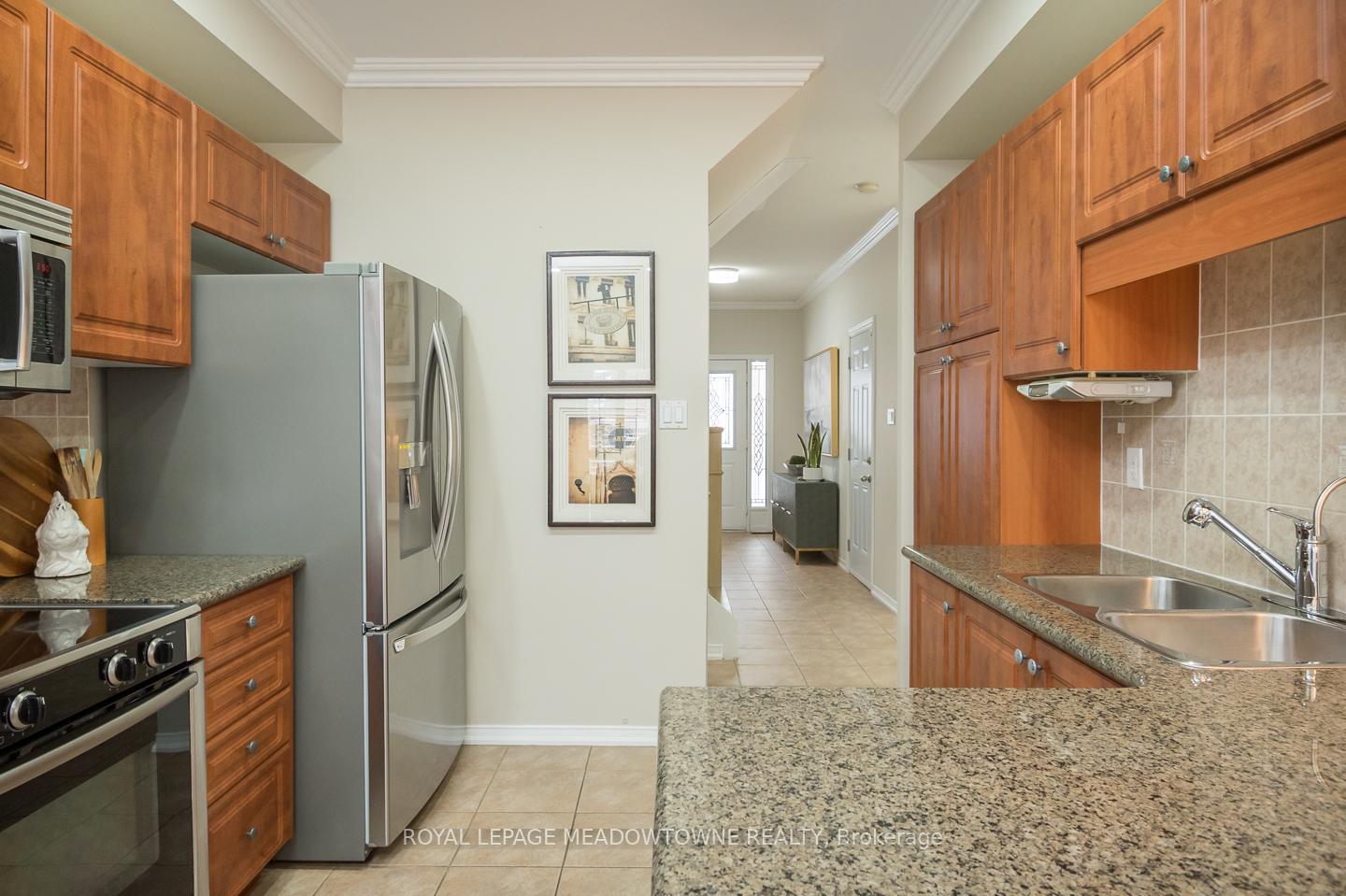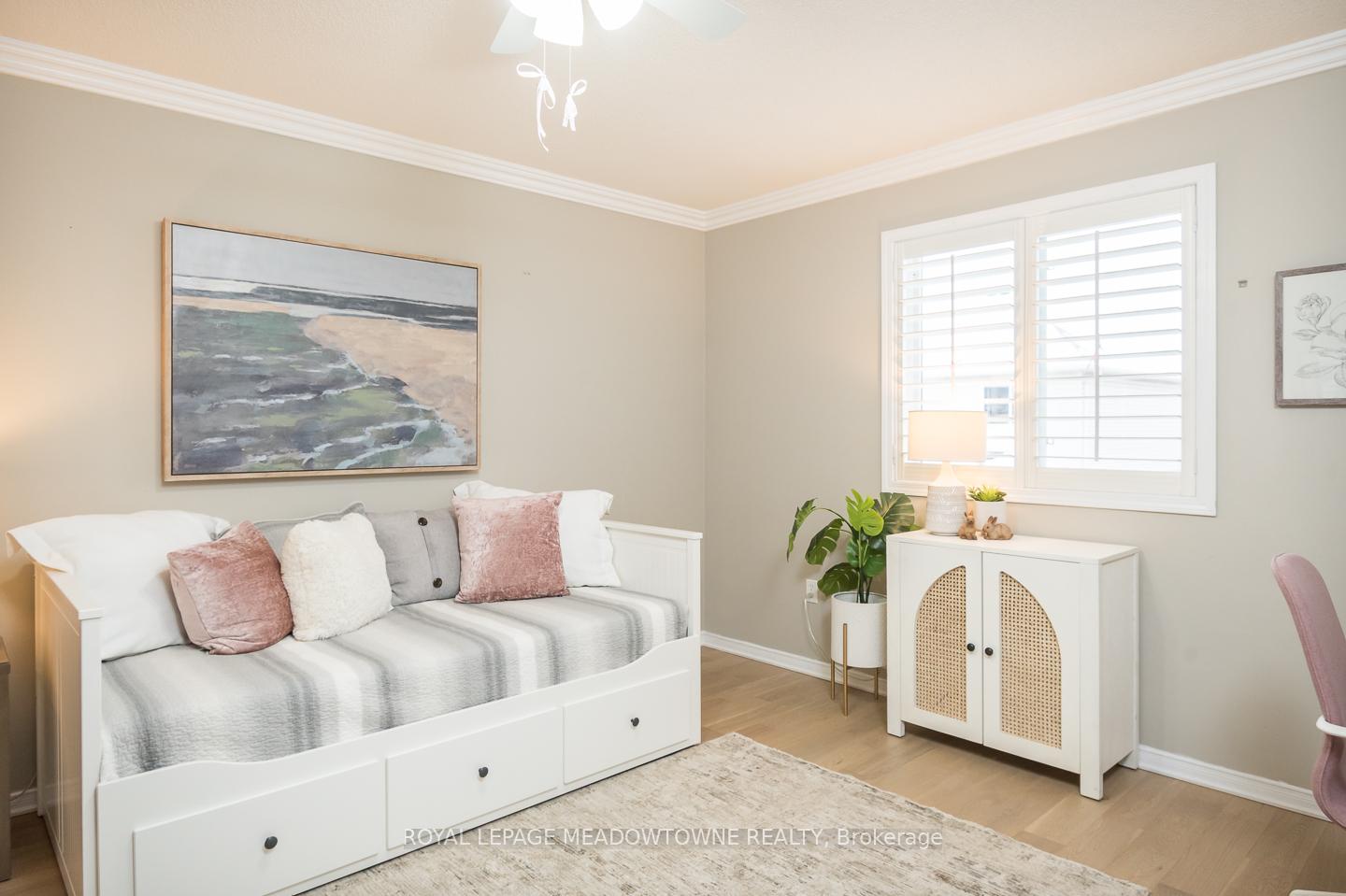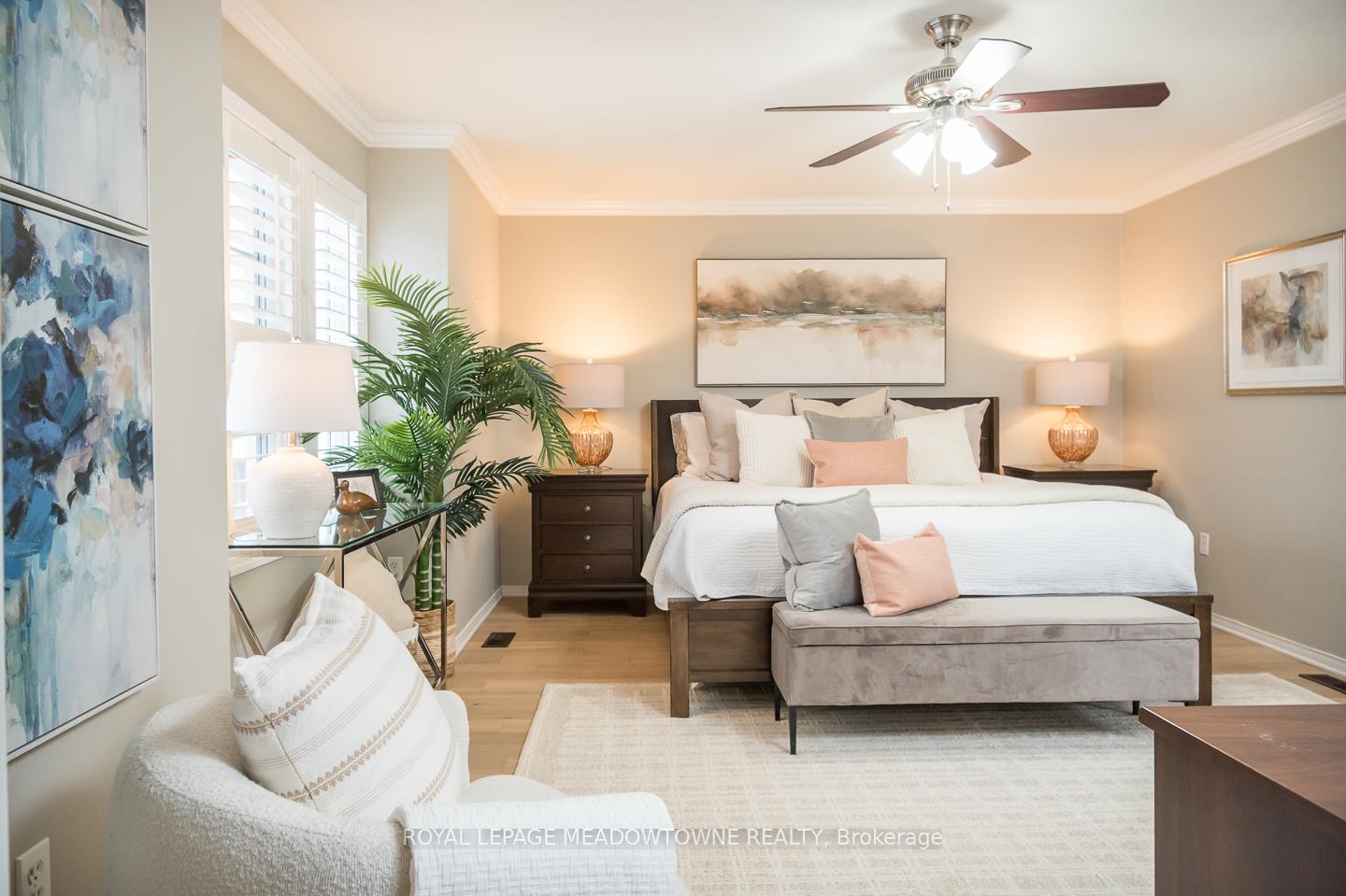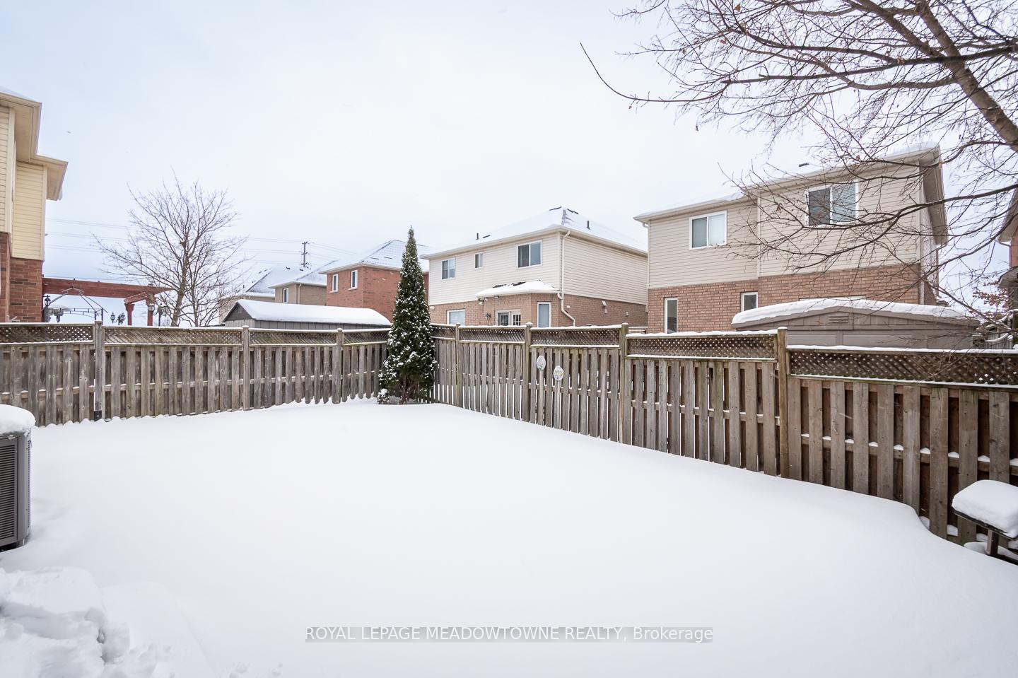 Located in the desirable Beaty neighbourhood of Milton, this beautifully maintained home offers an exceptional blend of space, updates, and commuter convenience. Within walking distance to parks, schools, and everyday amenities and with quick access to the 401, 407, and GO Station, the location is ideal for busy families and professionals alike. The home features impressive curb appeal with a large covered front porch, no sidewalk, and parking for up to six vehicles including a double car garage with interior access. Inside, 9-foot ceilings, crown mouldings, hardwood flooring, upgraded lighting, pot lights, and a neutral colour palette enhance the open-concept main floor, which also includes a powder room. The bright eat-in kitchen showcases granite countertops, tile backsplash, stainless steel appliances and direct access to the fully fenced backyard with a low-maintenance concrete patio and garage walk-through. Upstairs, three generously sized bedrooms include a spacious primary retreat with walk-in closet and 4-piece ensuite, complemented by an updated main bath and laundry room. The beautifully finished basement (2023) adds valuable living space with a large rec room, bonus office space, bedroom, and full bath, perfect for guests or extended family. Major updates include furnace and air conditioner (2022) and roof (2023), offering peace of mind and move-in-ready comfort.