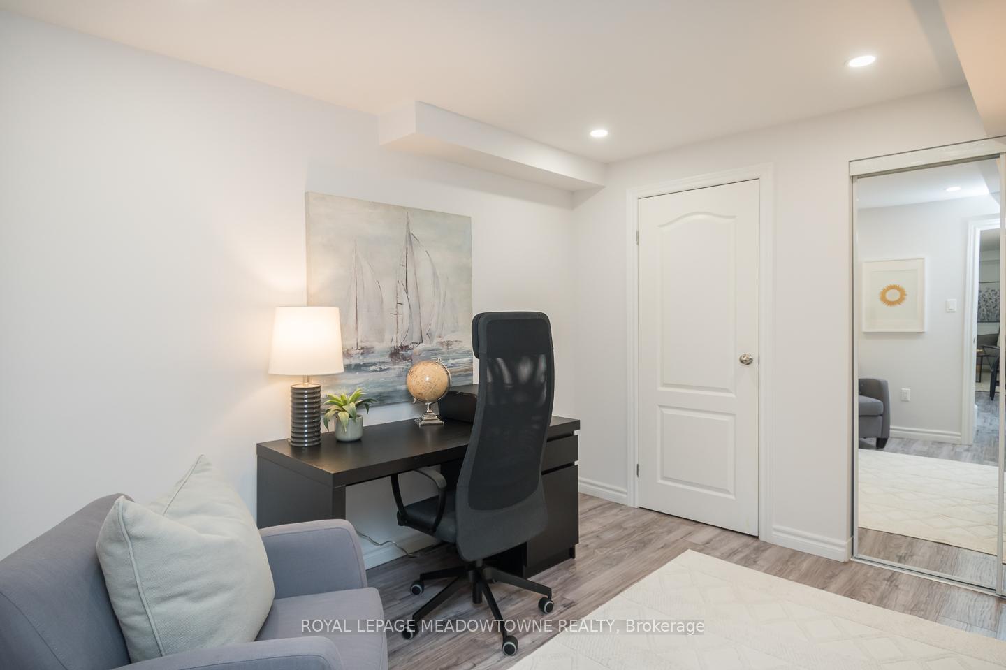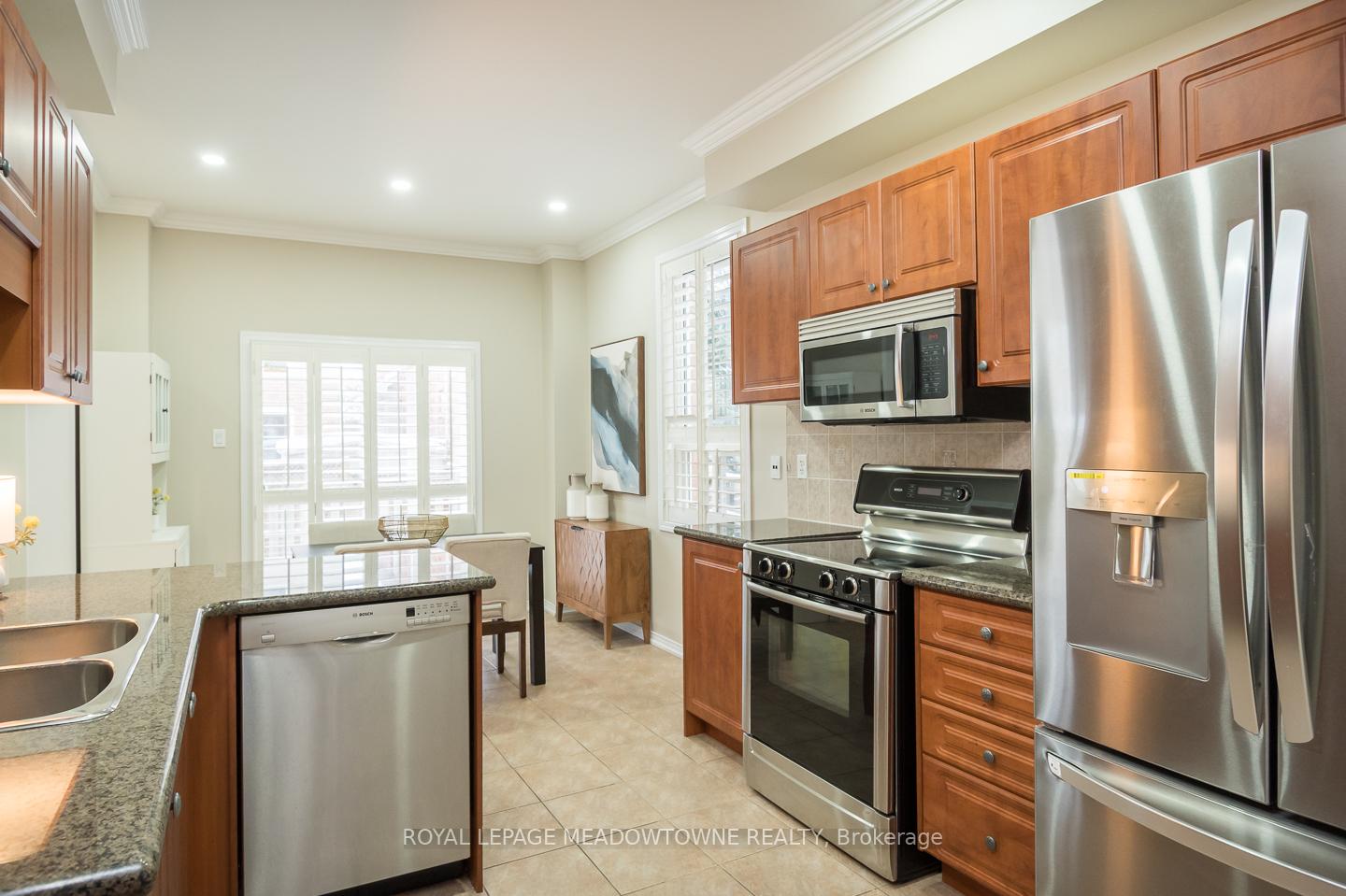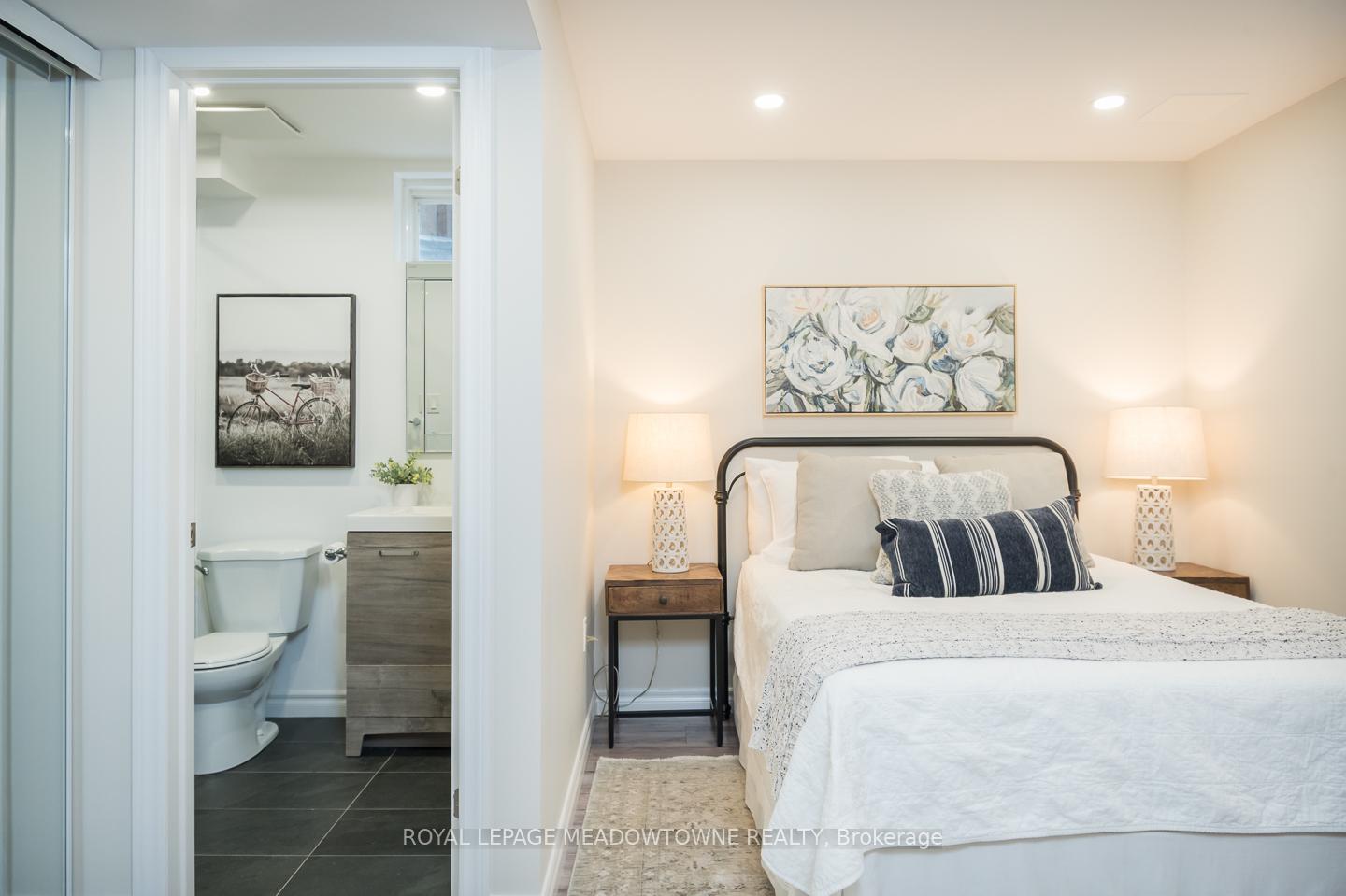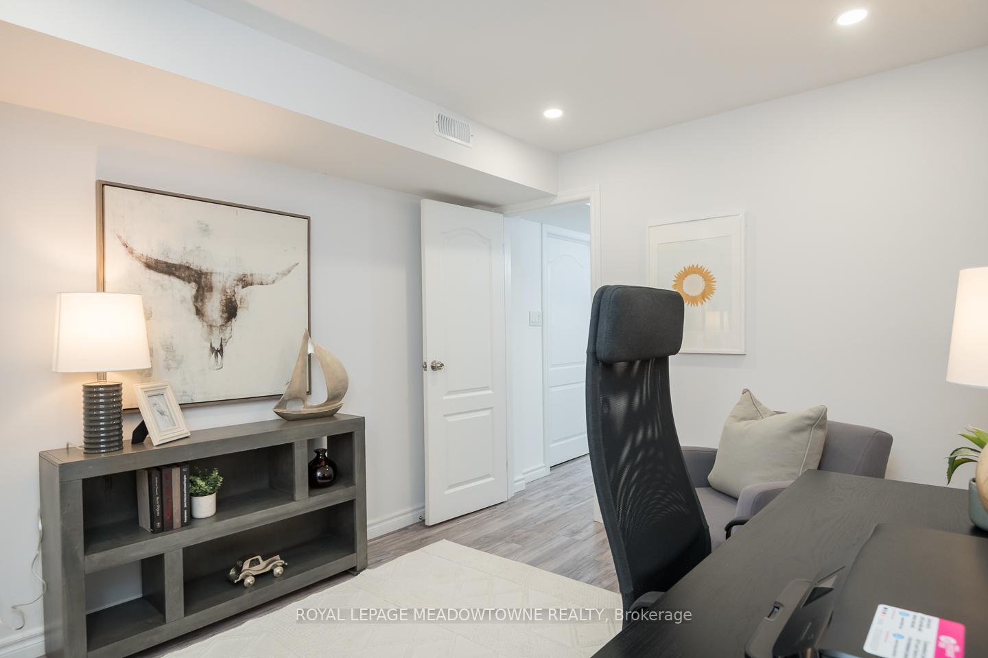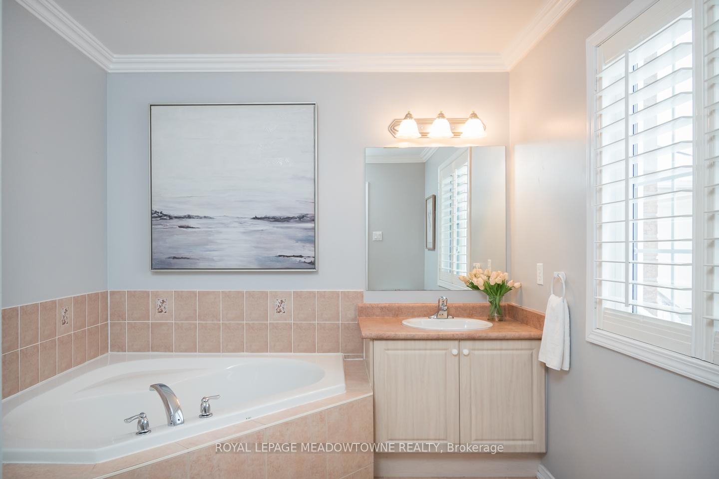Located in the desirable Beaty neighbourhood of Milton, this beautifully maintained home offers an exceptional blend of space, updates, and commuter convenience. Within walking distance to parks, schools, and everyday amenities and with quick access to the 401, 407, and GO Station, the location is ideal for busy families and professionals alike. The home features impressive curb appeal with a large covered front porch, no sidewalk, and parking for up to six vehicles including a double car garage with interior access. Inside, 9-foot ceilings, crown mouldings, hardwood flooring, upgraded lighting, pot lights, and a neutral colour palette enhance the open-concept main floor, which also includes a powder room. The bright eat-in kitchen showcases granite countertops, tile backsplash, stainless steel appliances and direct access to the fully fenced backyard with a low-maintenance concrete patio and garage walk-through. Upstairs, three generously sized bedrooms include a spacious primary retreat with walk-in closet and 4-piece ensuite, complemented by an updated main bath and laundry room. The beautifully finished basement (2023) adds valuable living space with a large rec room, bonus office space, bedroom, and full bath, perfect for guests or extended family. Major updates include furnace and air conditioner (2022) and roof (2023), offering peace of mind and move-in-ready comfort.