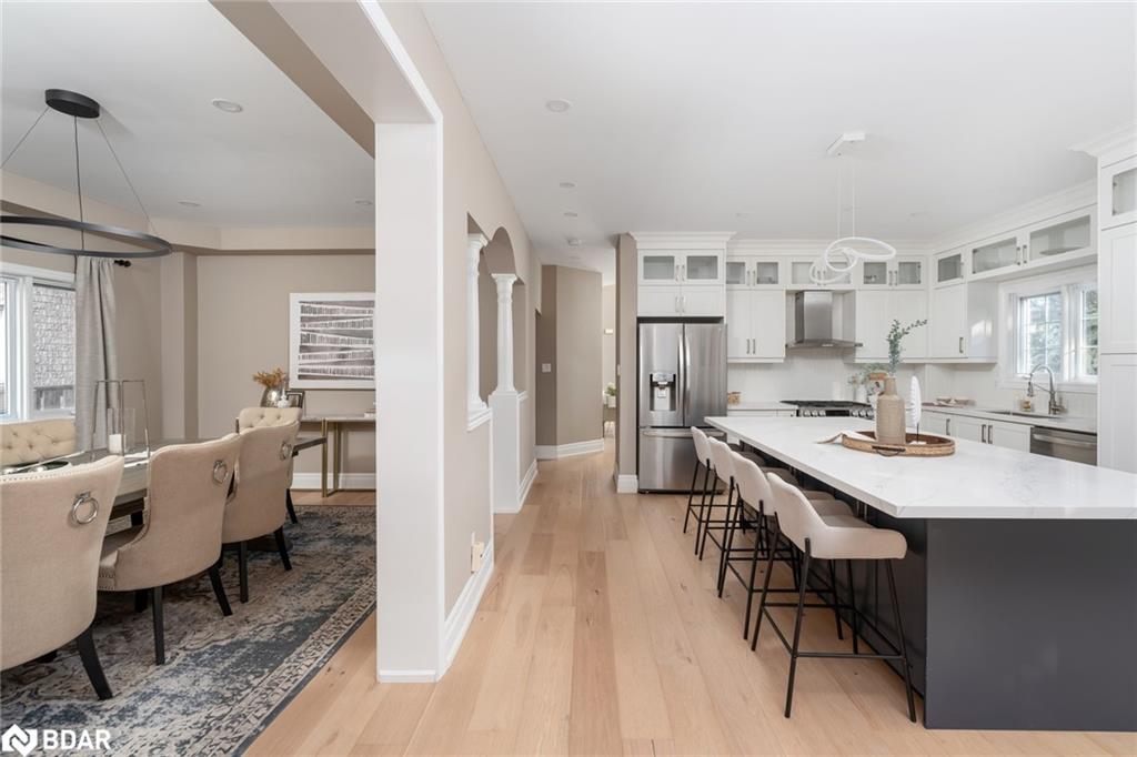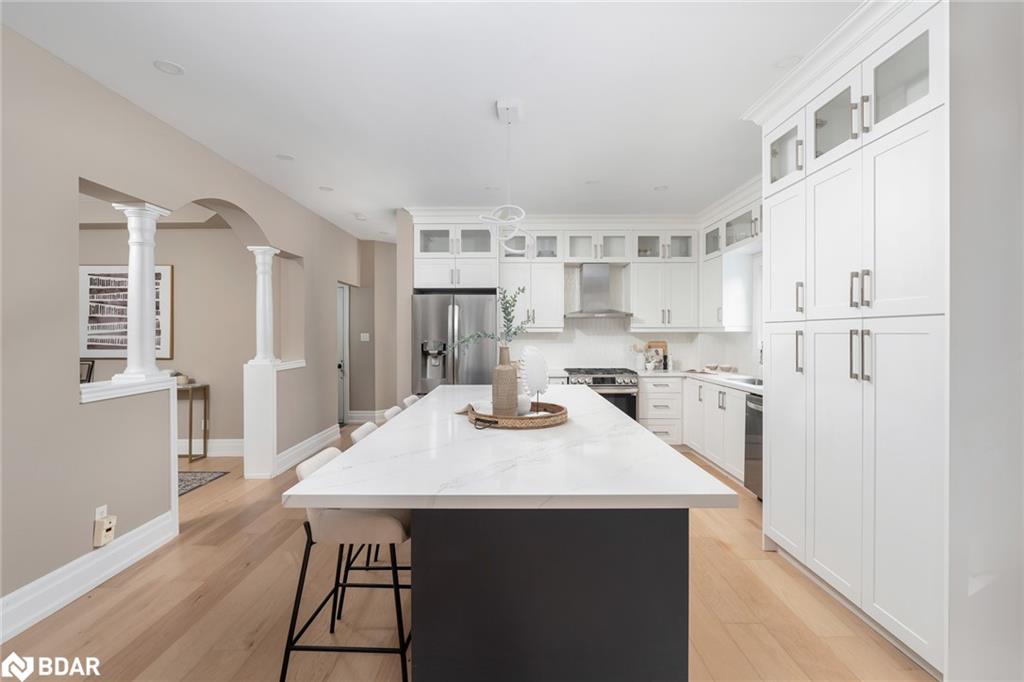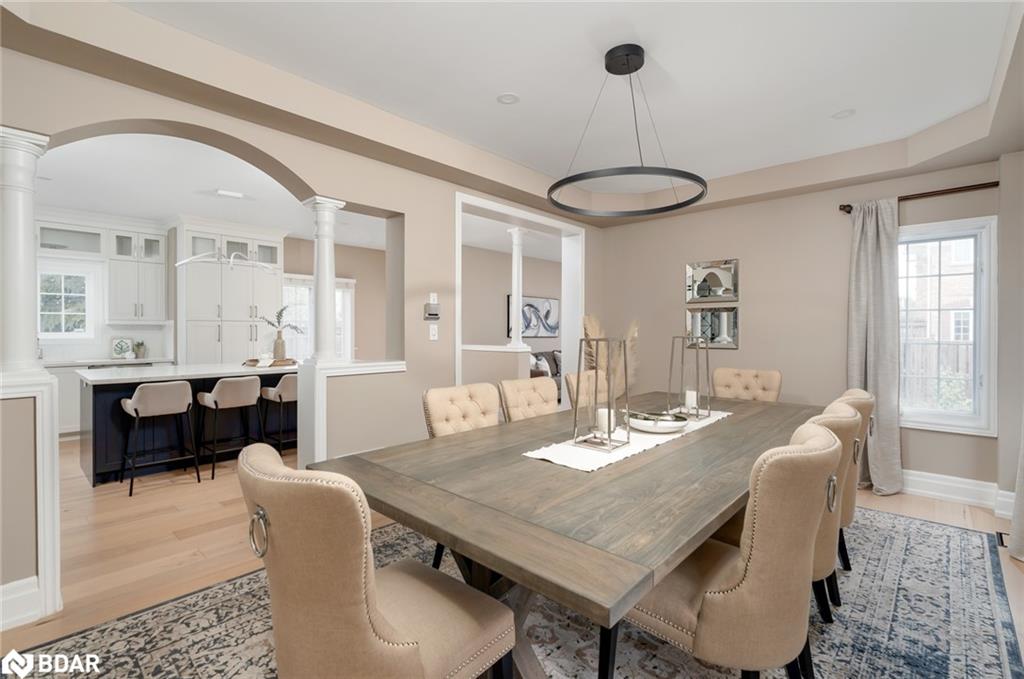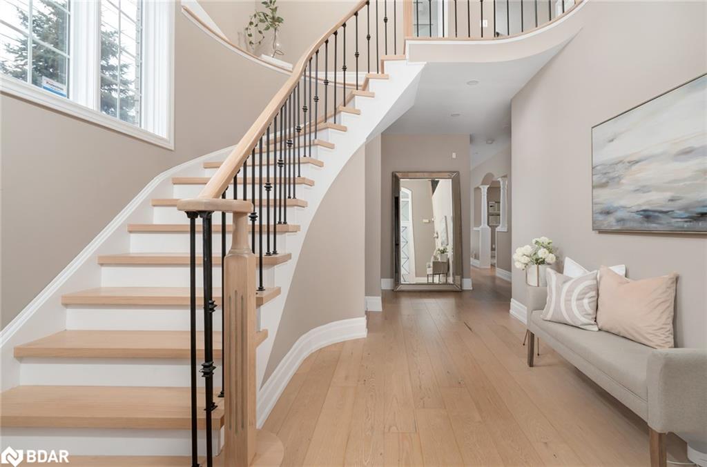 Simply stunning! This impeccably maintained home with over 3300 sq ft total living space is perched at the edge of a crescent in the charming Clarke neighborhood. This home offers an exceptional floor plan with elegant finishes throughout. The sky is the limit with a foyer with soaring ceilings and a sweeping oak staircase. This home has been updated with the kitchen as the main focus. We all know that the kitchen is the heart of the home – and what a heart this home has. You can feel the love that goes into every meal and every dinner party. The sprawling Quartz island allows for guests and family members to mingle while sharing their stories from the day. With 9 ceilings you feel spaciousness all around you and this kitchens custom cabinets are with you all the way up. An inviting colour palate paired with tasteful decor is the cherry on top of this main floor. The main level features a spacious formal dining room, perfect for entertaining and a cozy living room with a gas fireplace offers a warm and welcoming retreat. The oversized dining room used to be a living + dining room, but has been opened up for those large holiday parties. Walkout to a pleasant, fully fenced backyard complete with rear and side yard, and stone patio an ideal space for summer gatherings. Main floor laundry with direct access to the garage for added convenience. Upstairs, you’ll discover four generous bedrooms, including a luxurious primary suite featuring a huge walk-in closet and a private 4-piece ensuite bath. Fully finished basement adds extra hang out space for the family. Other notable features include hardwood floors, newer appliances (Stove, Fridge, Dishwasher, Washer/Dryer – 2022), pot lights throughout the main floor, Benjamin Moore paint, mudroom updated cabinets, renovated primary ensuite freestanding tub. A huge benefit of this location is the the direct access to the GO station bus, which is virtually at your doorstep. A unique convenience of this fantastic location!