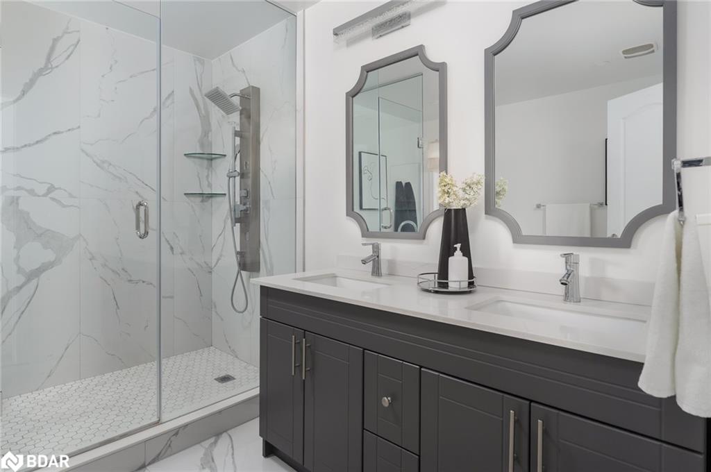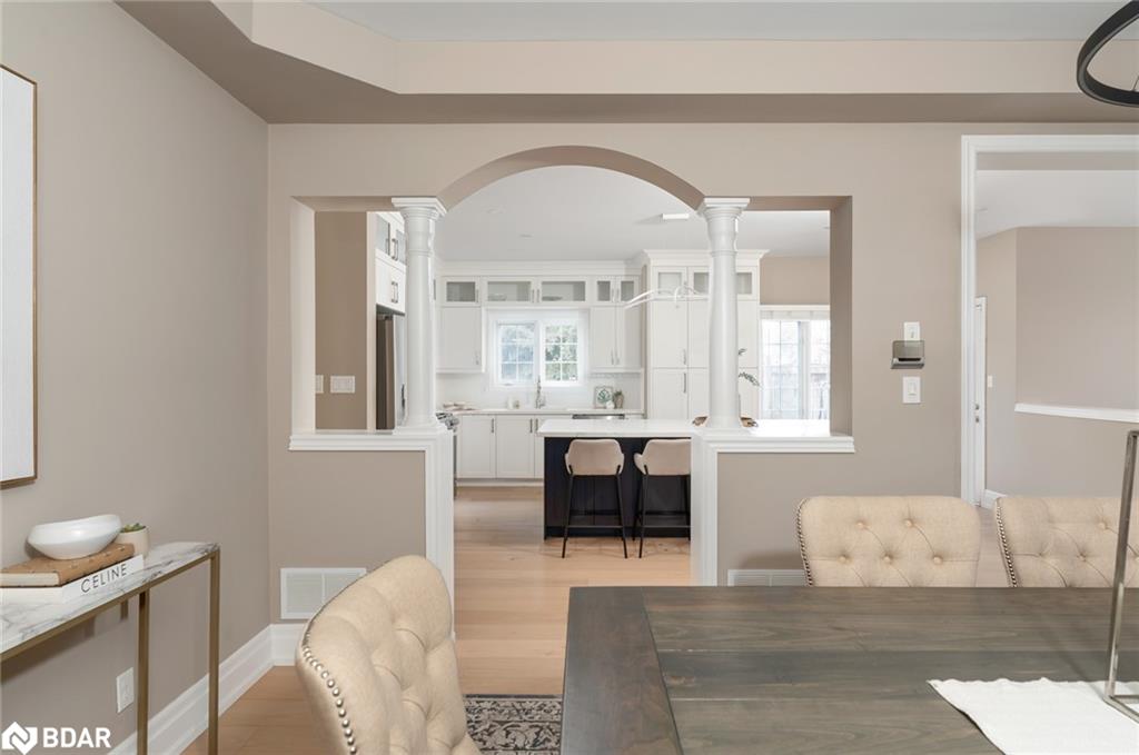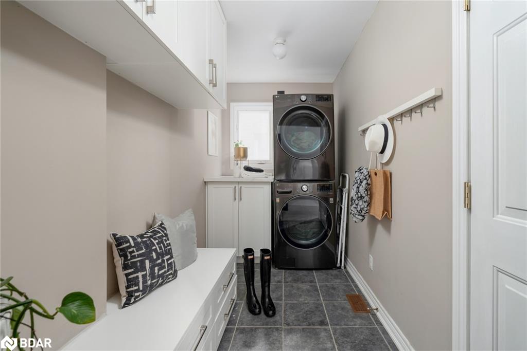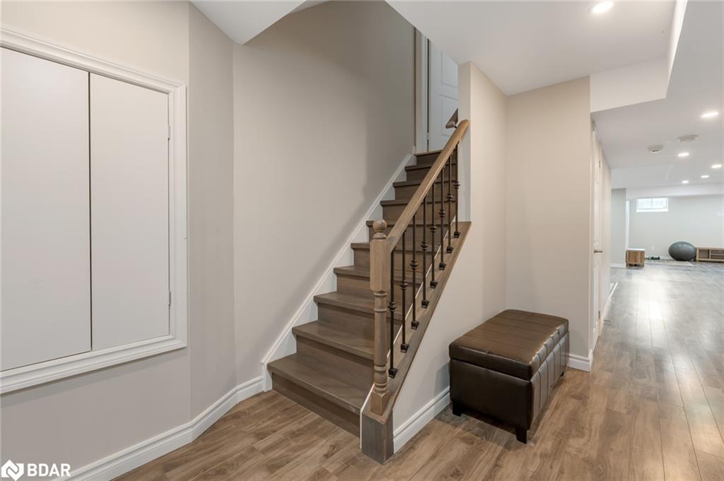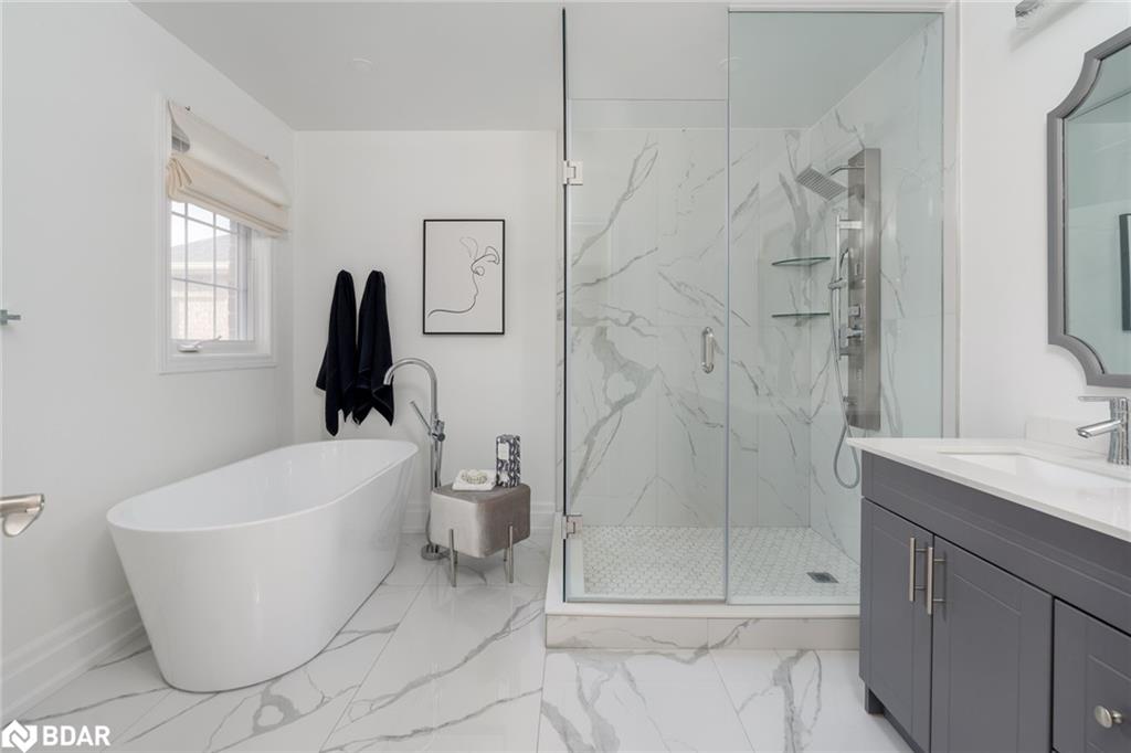 Simply stunning! This impeccably maintained home with over 3300 sq ft total living space is perched at the edge of a crescent in the charming Clarke neighborhood. This home offers an exceptional floor plan with elegant finishes throughout. The sky is the limit with a foyer with soaring ceilings and a sweeping oak staircase. This home has been updated with the kitchen as the main focus. We all know that the kitchen is the heart of the home – and what a heart this home has. You can feel the love that goes into every meal and every dinner party. The sprawling Quartz island allows for guests and family members to mingle while sharing their stories from the day. With 9 ceilings you feel spaciousness all around you and this kitchens custom cabinets are with you all the way up. An inviting colour palate paired with tasteful decor is the cherry on top of this main floor. The main level features a spacious formal dining room, perfect for entertaining and a cozy living room with a gas fireplace offers a warm and welcoming retreat. The oversized dining room used to be a living + dining room, but has been opened up for those large holiday parties. Walkout to a pleasant, fully fenced backyard complete with rear and side yard, and stone patio an ideal space for summer gatherings. Main floor laundry with direct access to the garage for added convenience. Upstairs, you’ll discover four generous bedrooms, including a luxurious primary suite featuring a huge walk-in closet and a private 4-piece ensuite bath. Fully finished basement adds extra hang out space for the family. Other notable features include hardwood floors, newer appliances (Stove, Fridge, Dishwasher, Washer/Dryer – 2022), pot lights throughout the main floor, Benjamin Moore paint, mudroom updated cabinets, renovated primary ensuite freestanding tub. A huge benefit of this location is the the direct access to the GO station bus, which is virtually at your doorstep. A unique convenience of this fantastic location!