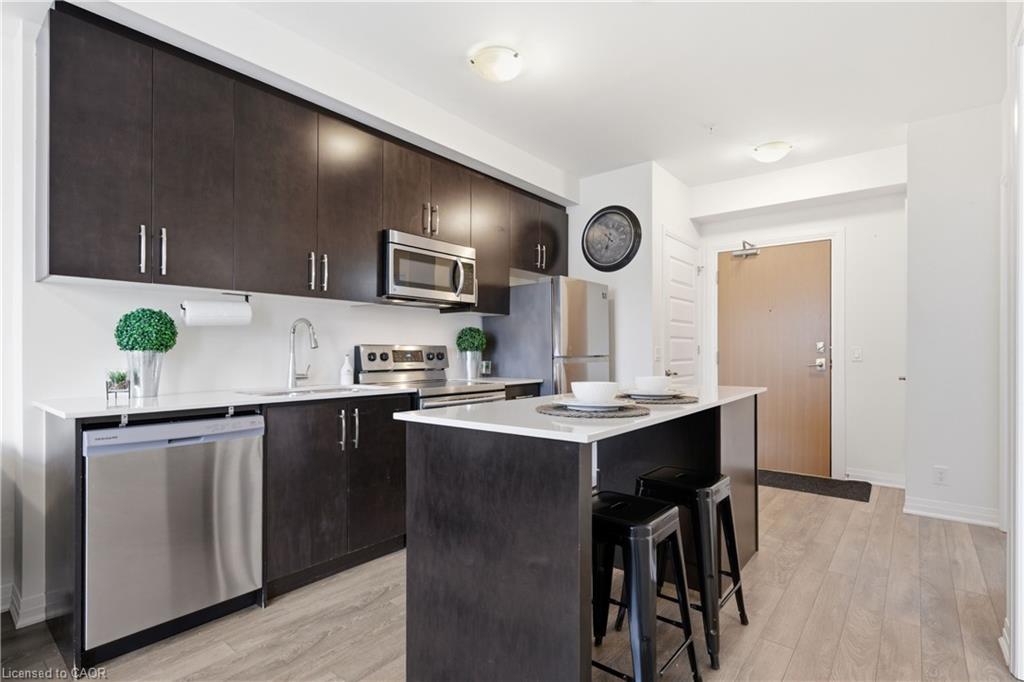 Welcome to comfortable, modern living in Milton’s popular Ford neighbourhood. This bright 1-bedroom, 1-bath condo features a smart open layout that works well for both day-to-day living and having people over. The kitchen is the heart of the space, with a large island, stainless steel appliances, granite counters, and plenty of storage. The finishes are clean and modern, and the unit gets great natural light throughout. Being on the ground floor really sets this one apart. You get a spacious garden terrace that extends your living space outside, with the option to add a privacy screen if you want a more secluded feel. There’s also the added convenience of direct access from visitor parking, so no need to go through the main lobby. The unit comes with underground parking, a private locker, and there’s plenty of visitor parking available. You’re in a walkable area, just steps to groceries, banks, restaurants, and shops, with easy access to parks, trails, schools, and Milton District Hospital. A great option for first-time buyers, downsizers, or investors looking to get into a growing, family-friendly neighbourhood. A smart move in a growing neighbourhood, come and see the value for yourself!