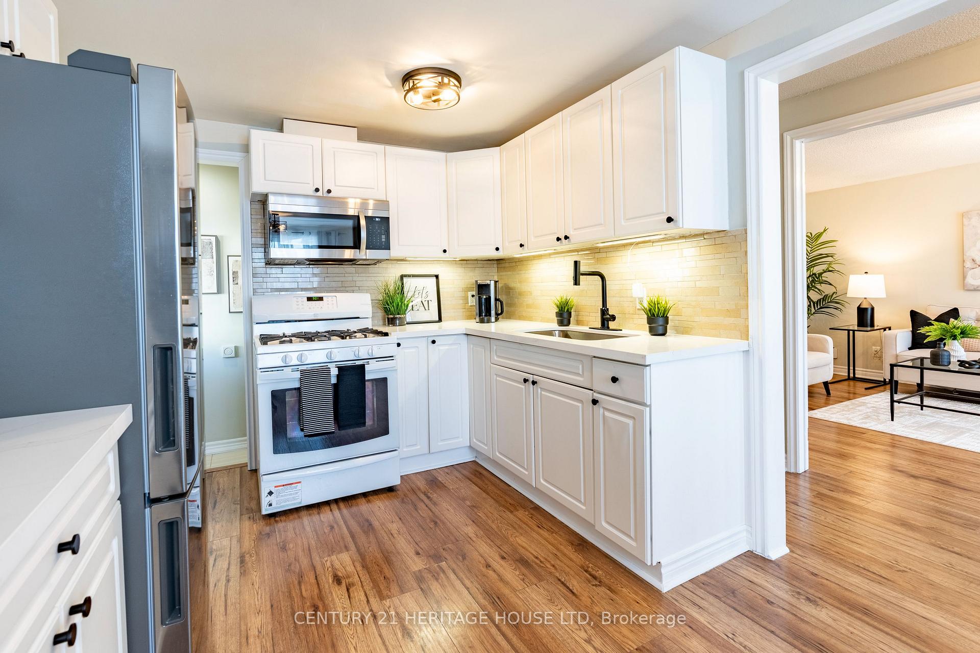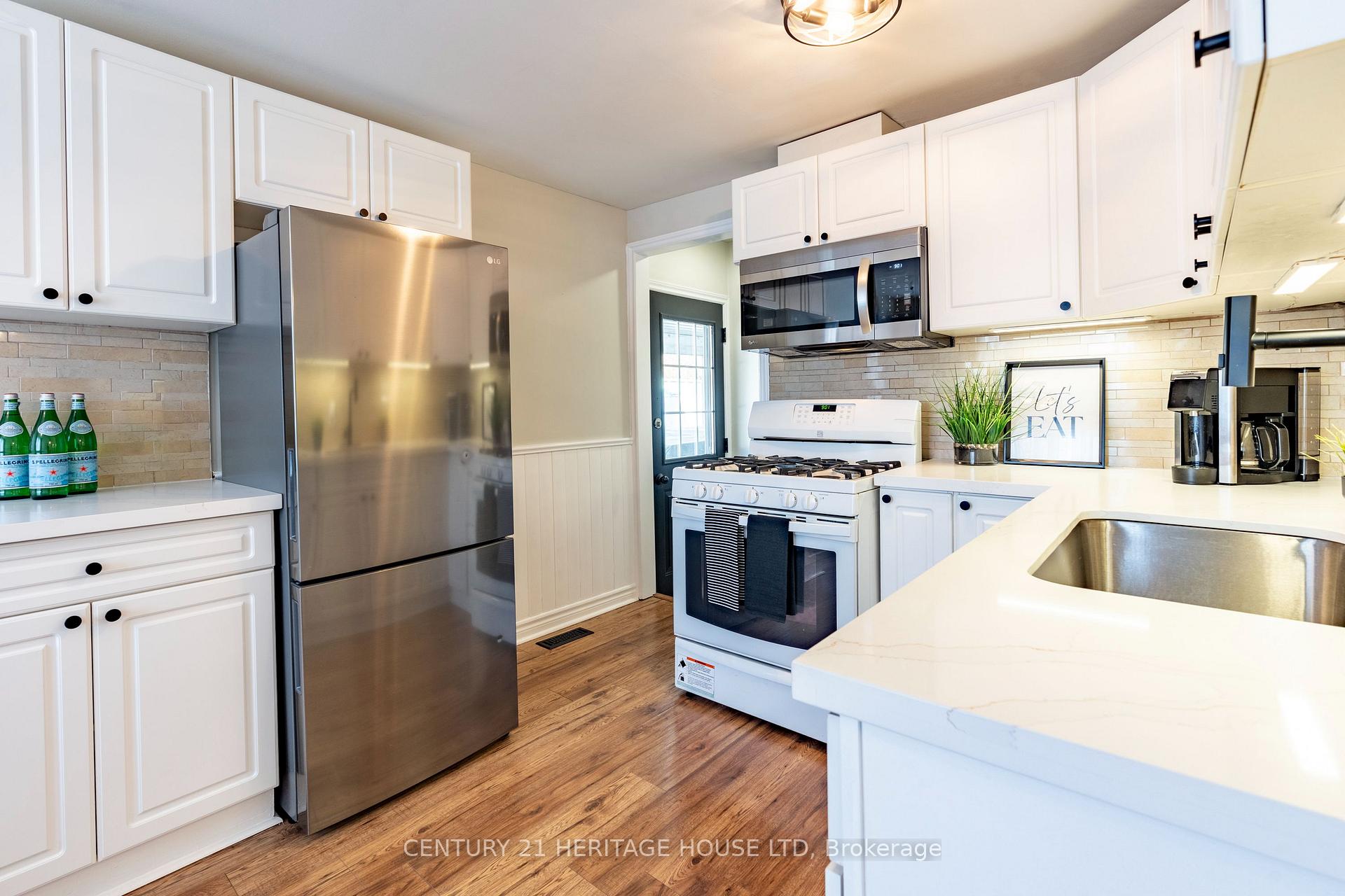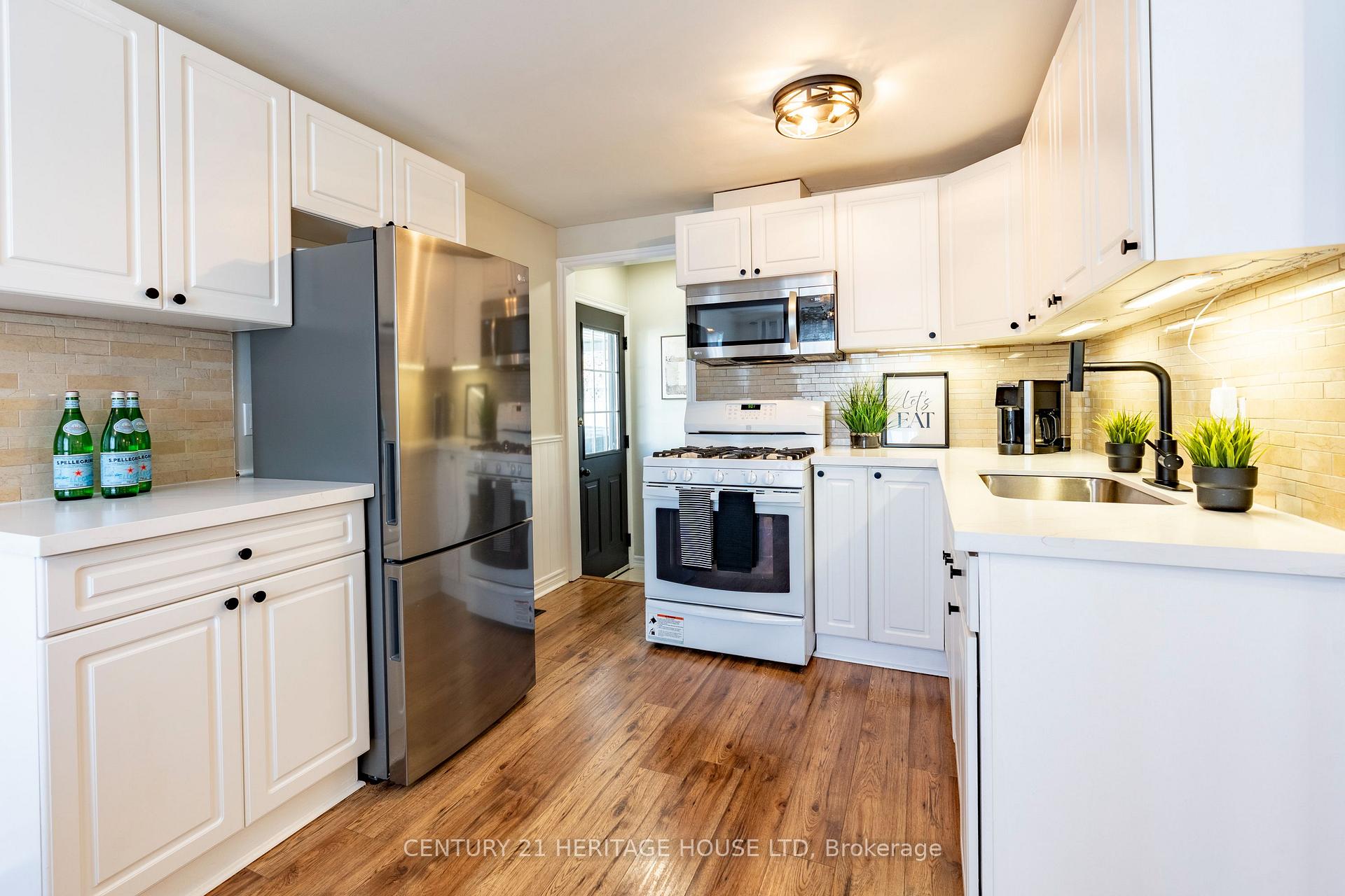 Welcome to 106 Hickory Heights Crescent, a beautifully updated 3+1 bedroom, 2 full bathroom bungalow offering over 1,800 square feet of finished living space in a quiet, family-friendly neighbourhood. The bright main floor features modern flooring installed in 2022, fresh paint throughout, and large windows that fill the home with natural light. The updated kitchen offers quartz countertops installed in 2026, sleek finishes, and a brand new kitchen window (2025), creating a functional and stylish space for everyday living and entertaining. The finished basement adds valuable additional living space, including a fourth bedroom and second full bathroom, along with a separate side entrance that offers excellent potential for an in-law setup or future income suite. Several basement windows were replaced in 2026, improving both efficiency and comfort. This home has seen numerous important upgrades, including an updated electrical panel (2014), furnace (2017), owned water softener (2014), and rental water heater, providing added peace of mind for buyers. Situated on a large pie-shaped lot backing onto a school, the property offers extra privacy and open space behind the home. The long driveway, carport, and detached workshop provide ample parking and excellent space for hobbies, storage, or projects. Move-in ready with major updates already completed, this is a fantastic opportunity for families, investors, or anyone looking for a well-maintained bungalow in a desirable Kitchener location.