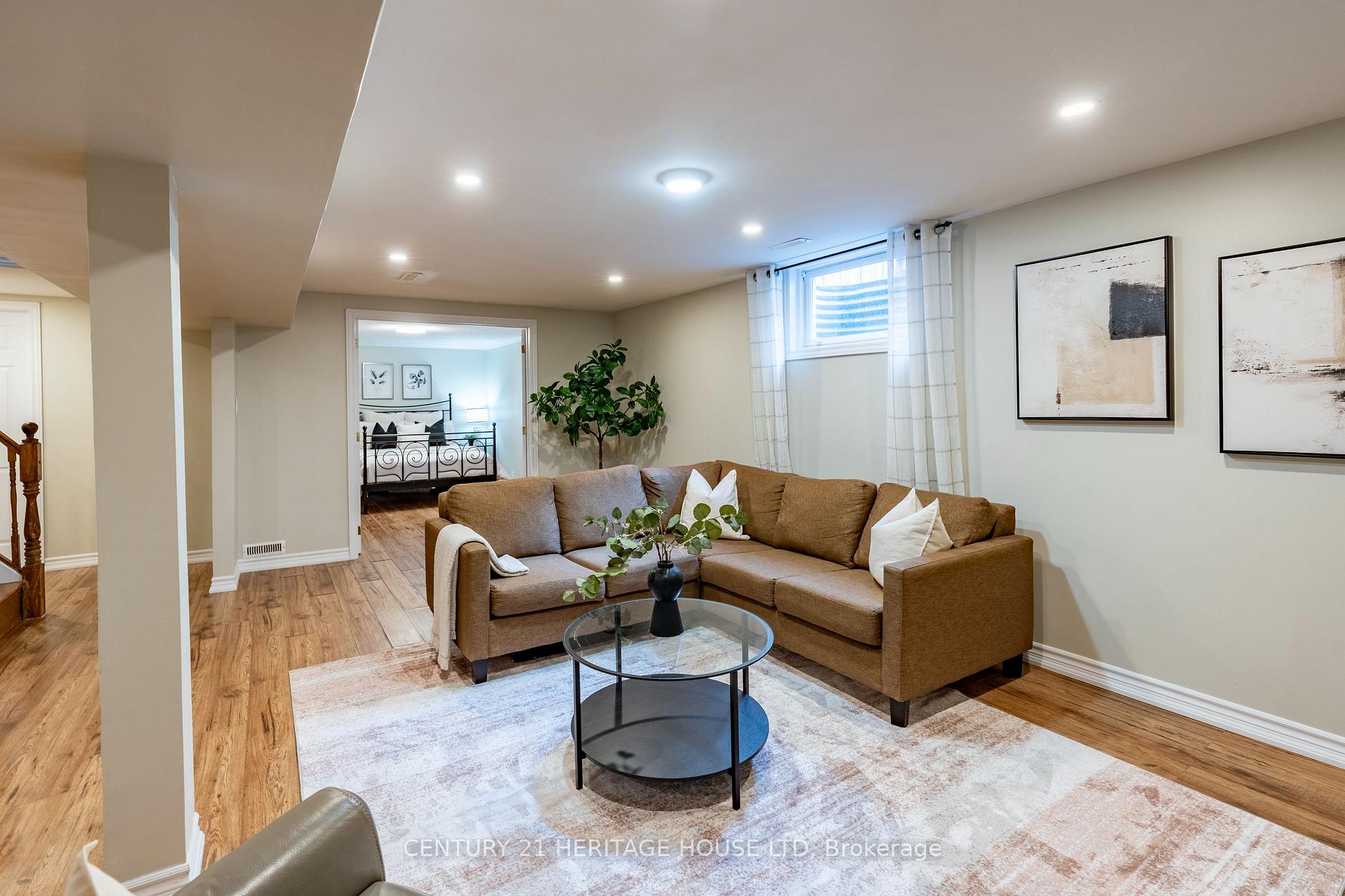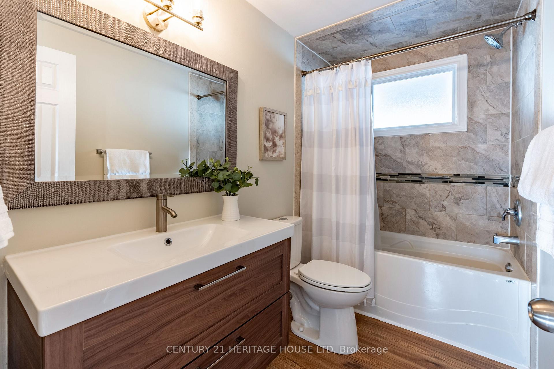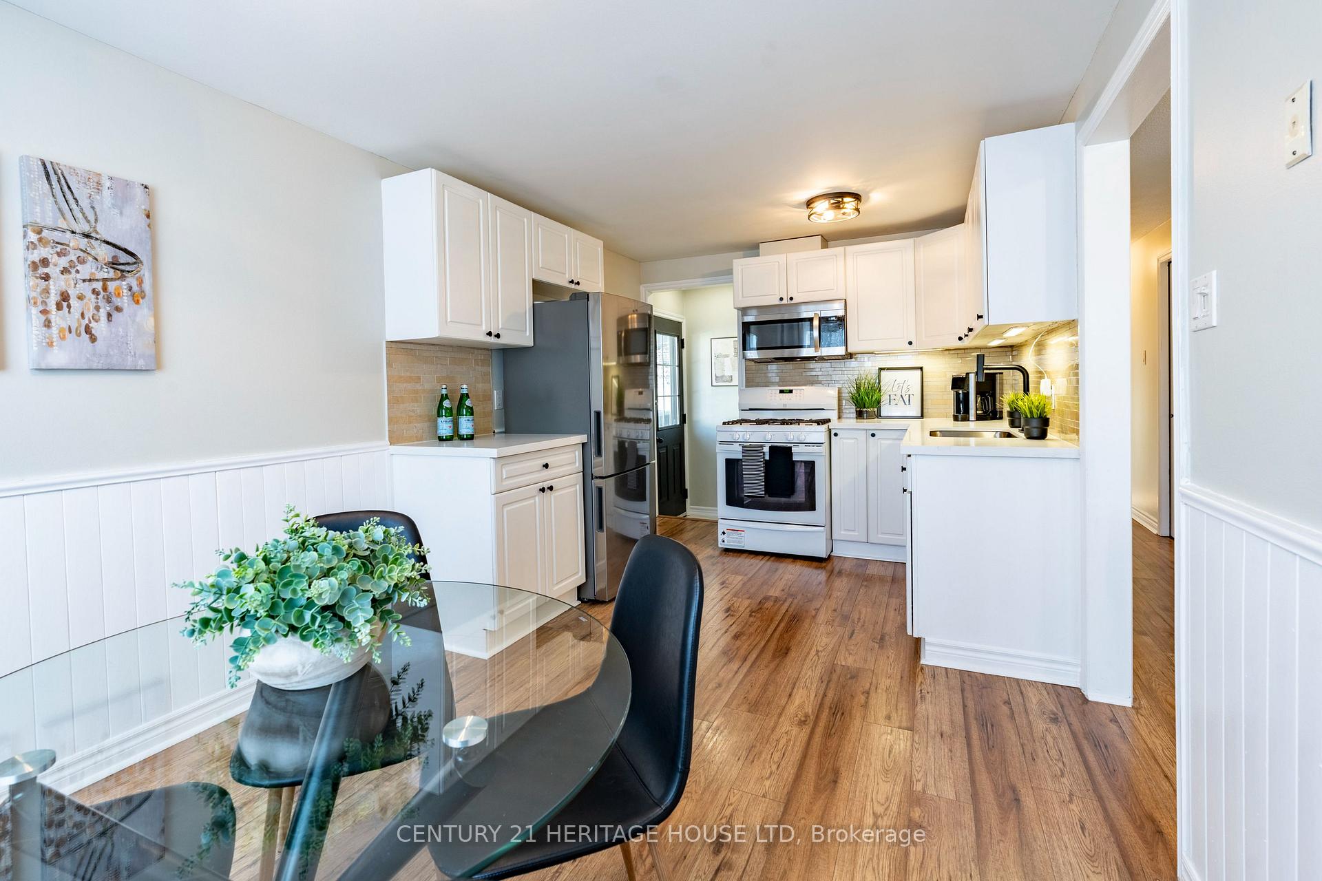 Welcome to 106 Hickory Heights Crescent, a beautifully updated 3+1 bedroom, 2 full bathroom bungalow offering over 1,800 square feet of finished living space in a quiet, family-friendly neighbourhood. The bright main floor features modern flooring installed in 2022, fresh paint throughout, and large windows that fill the home with natural light. The updated kitchen offers quartz countertops installed in 2026, sleek finishes, and a brand new kitchen window (2025), creating a functional and stylish space for everyday living and entertaining. The finished basement adds valuable additional living space, including a fourth bedroom and second full bathroom, along with a separate side entrance that offers excellent potential for an in-law setup or future income suite. Several basement windows were replaced in 2026, improving both efficiency and comfort. This home has seen numerous important upgrades, including an updated electrical panel (2014), furnace (2017), owned water softener (2014), and rental water heater, providing added peace of mind for buyers. Situated on a large pie-shaped lot backing onto a school, the property offers extra privacy and open space behind the home. The long driveway, carport, and detached workshop provide ample parking and excellent space for hobbies, storage, or projects. Move-in ready with major updates already completed, this is a fantastic opportunity for families, investors, or anyone looking for a well-maintained bungalow in a desirable Kitchener location.