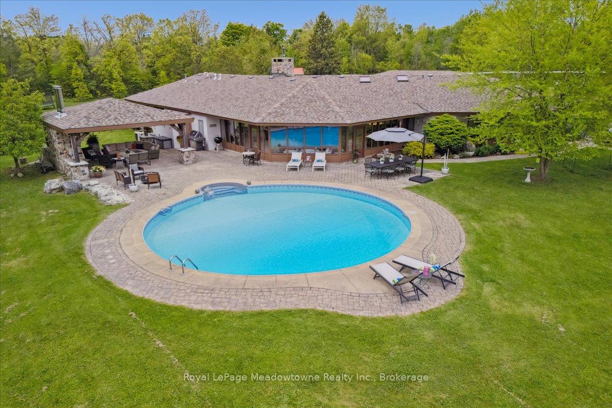 A Once-in-a-Lifetime Countryside Estate where Architectural Prestige Meets Natural Beauty. Tucked away down a sweeping drive through a majestic forest, this exceptional estate offers a rare blend of architectural pedigree, timeless design, and serene country living. Designed by renowned architect Grant Whatmough, celebrated for his iconic mid-century modern vision, this sprawling bungalow is a masterpiece of craftsmanship and innovation. Set on over 33 acres of a pristine mixed-terrain horse farm, the property is a nature lovers dream, with private trails, rolling fields, and various peaceful vistas. The thoughtfully designed 6-bedroom split layout is an early showcase of contemporary architecture, perfectly suited for extended families or those seeking space and privacy. Every inch of the home reflects care and quality, with numerous updates including Cranberry Hill Designed Kitchens, baths, and a recently added in-law suite. The design allows a seamless interaction to nature with panoramic window views and numerous walk outs. A one-bedroom studio apartment attached to the 4-car garage offers flexibility for guests, multigenerational living, or rental income. Enjoy an impressive 5 stall barn with 4 paddocks for equestrian pursuits or creative endeavors, a resort-style round pool, a cozy wood fire in the spectacular pergola, hot tub, and room to breathe and grow. This is more than a home, its a legacy estate built for generations. Come experience the perfect balance of elegance, tranquility, and function. Opportunities like this don’t come twice. Reach out to schedule your private viewing and step into the extraordinary.