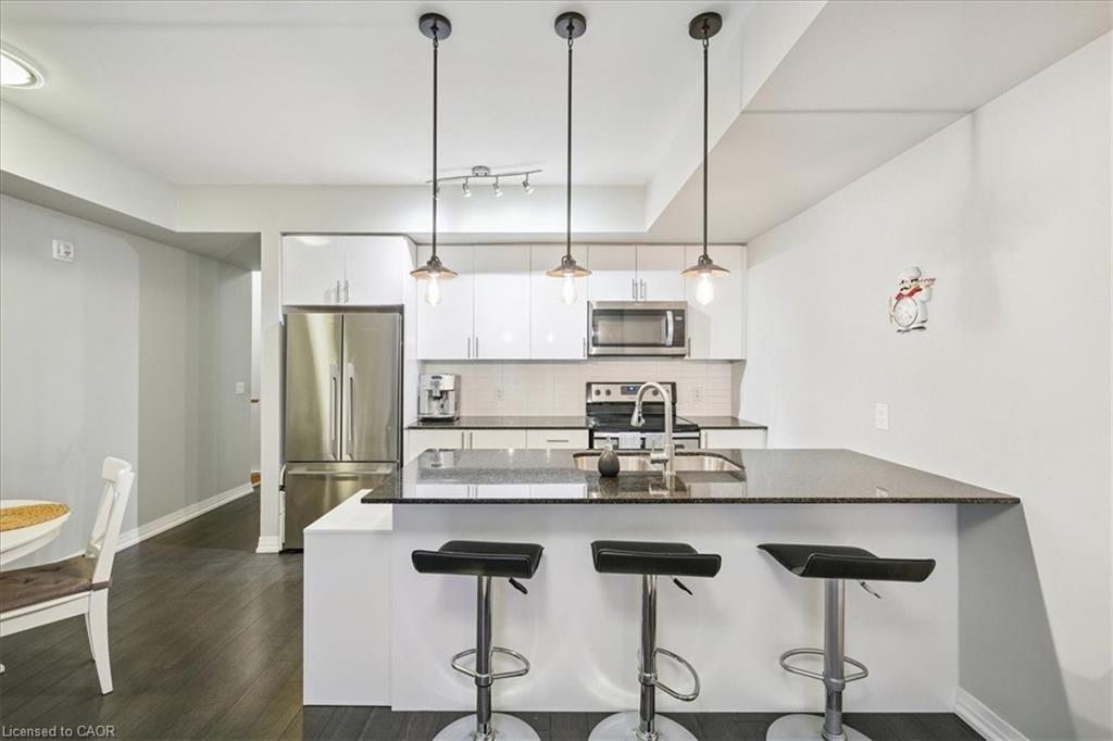 Welcome To This Bright & Beautiful 2 Bedroom, 2.5 Bathroom Stacked Townhome In One Of Milton’s Most Desirable Communities! Offering A Perfect Blend Of Modern Design, Comfort & Convenience – Ideal For First-Time Buyers, Downsizers, Or Anyone Seeking A Stylish Low-Maintenance Home. The Open-Concept Layout Features 9′ Ceilings, Oversized Windows & Rich Hardwood Flooring Throughout Main Level. The Kitchen Shines With Granite Counters, A Large Island, Extended Cabinetry, Classic Subway Tile Backsplash & Walk-Out To A Private Outdoor Space – Perfect For Morning Coffee Or Evening Relaxation! The Primary Bedroom Boasts A Walk-In Closet & A Modern 3-Pc Ensuite W/ Glass Shower, While The Second Bedroom, 4-Pc Bath, Laundry & Ample Storage Complete The Home. Close To GO Station, Parks, Schools, Shopping, Scenic Escarpment Trails & Major Highways – This One Has It All!