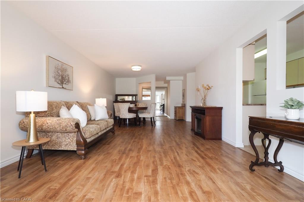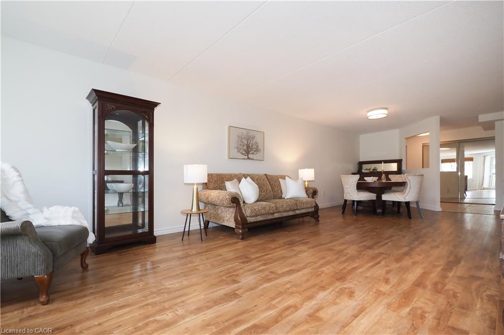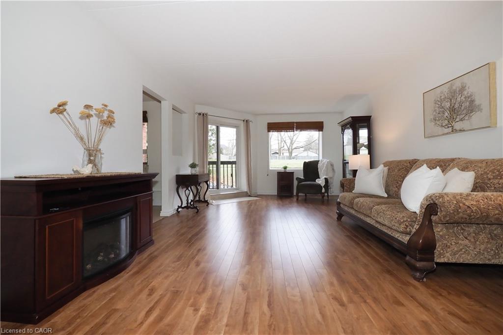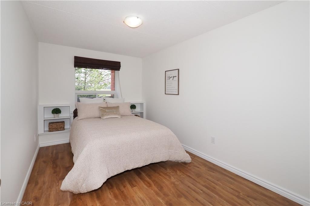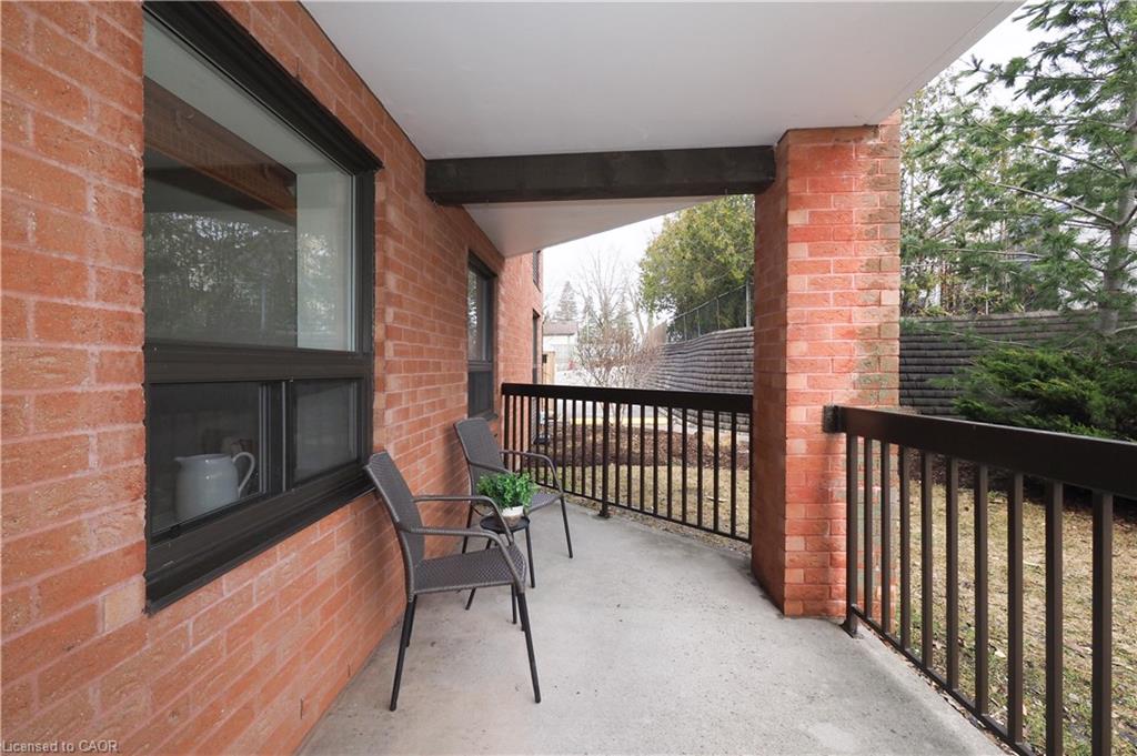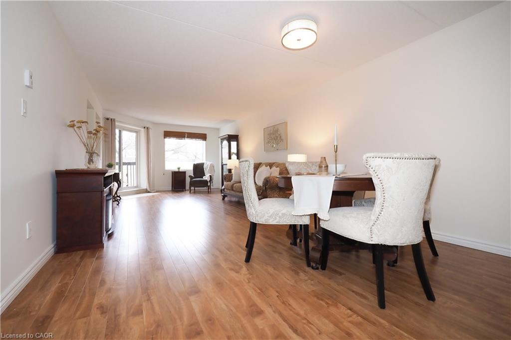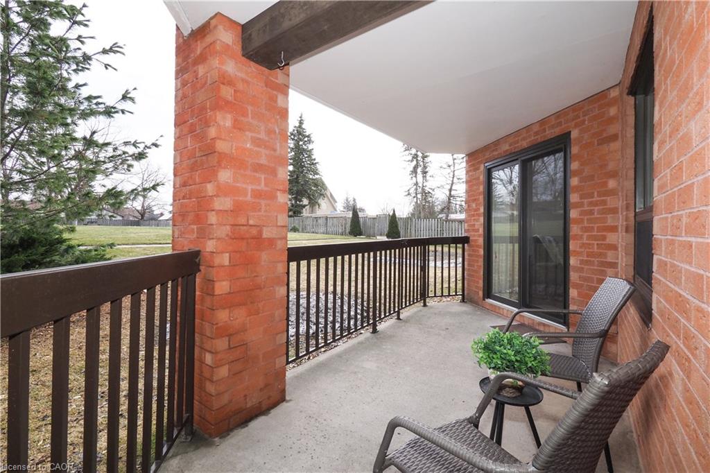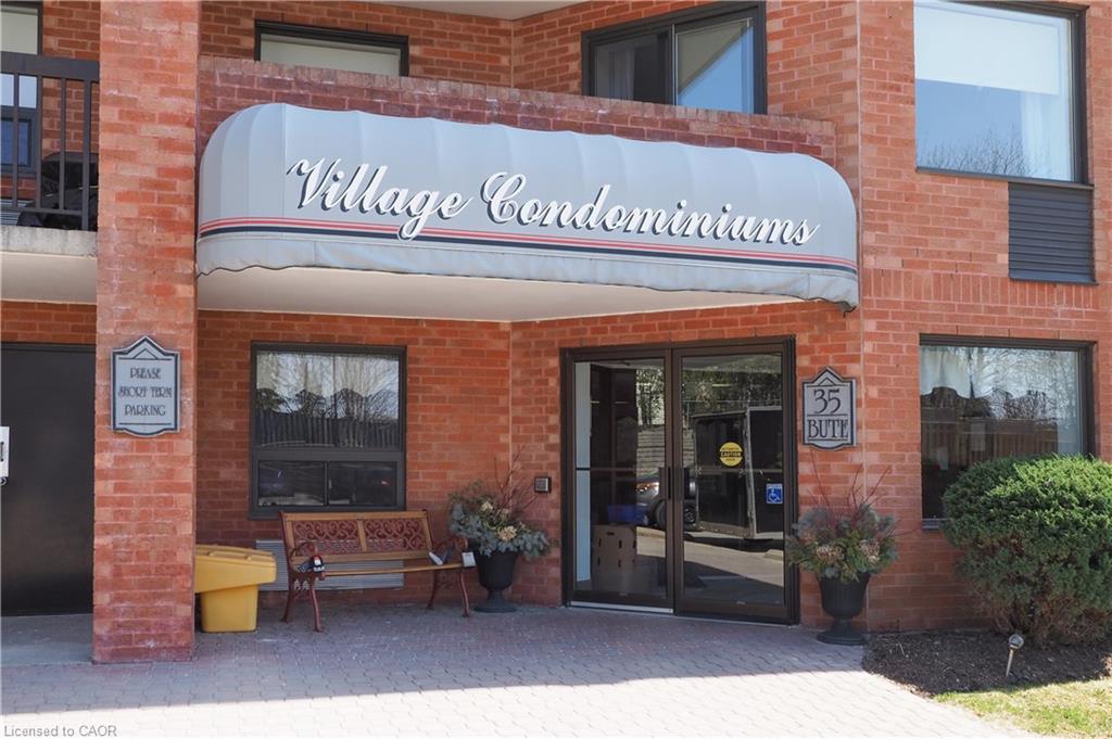 Welcome Home to #107 35 Bute Street. Nestled at the end of Bute St in Ayr, the Village Condominiums offer a wonderful lifestyle. This 1250sq ft condo is located on the main floor with a walkout to a private deck that overlooks the grounds and gardens of the Condominium Building. This condo boasts an abundance of natural light – the spacious living room and dining room offers plenty of room for all of your furnishings. The kitchen has heated floors, dishwasher and space for a small table and chairs. The primary bedroom can easily accommodate a king bed and accessory furniture – it also has double closets and an updated 4pc ensuite that has heated floors. The second bedroom provides great guest accommodations or could also be a perfect home office or den. There is another 3pc bath that has also been updated. The front entrance has new furnishings and a comfortable area to sit and have a visit with your neighbours. The building also offers a party room for the extended family to gather for those special events. It’s conveniently located close to Cambridge, Kitchener, Paris and the 401. The village of Ayr offers wonderful walking trails, a fabulous community centre (NDCC) with a walking track, restaurants and grocery store. This condo may just be what your “next chapter” looks like…can’t wait to show you through.