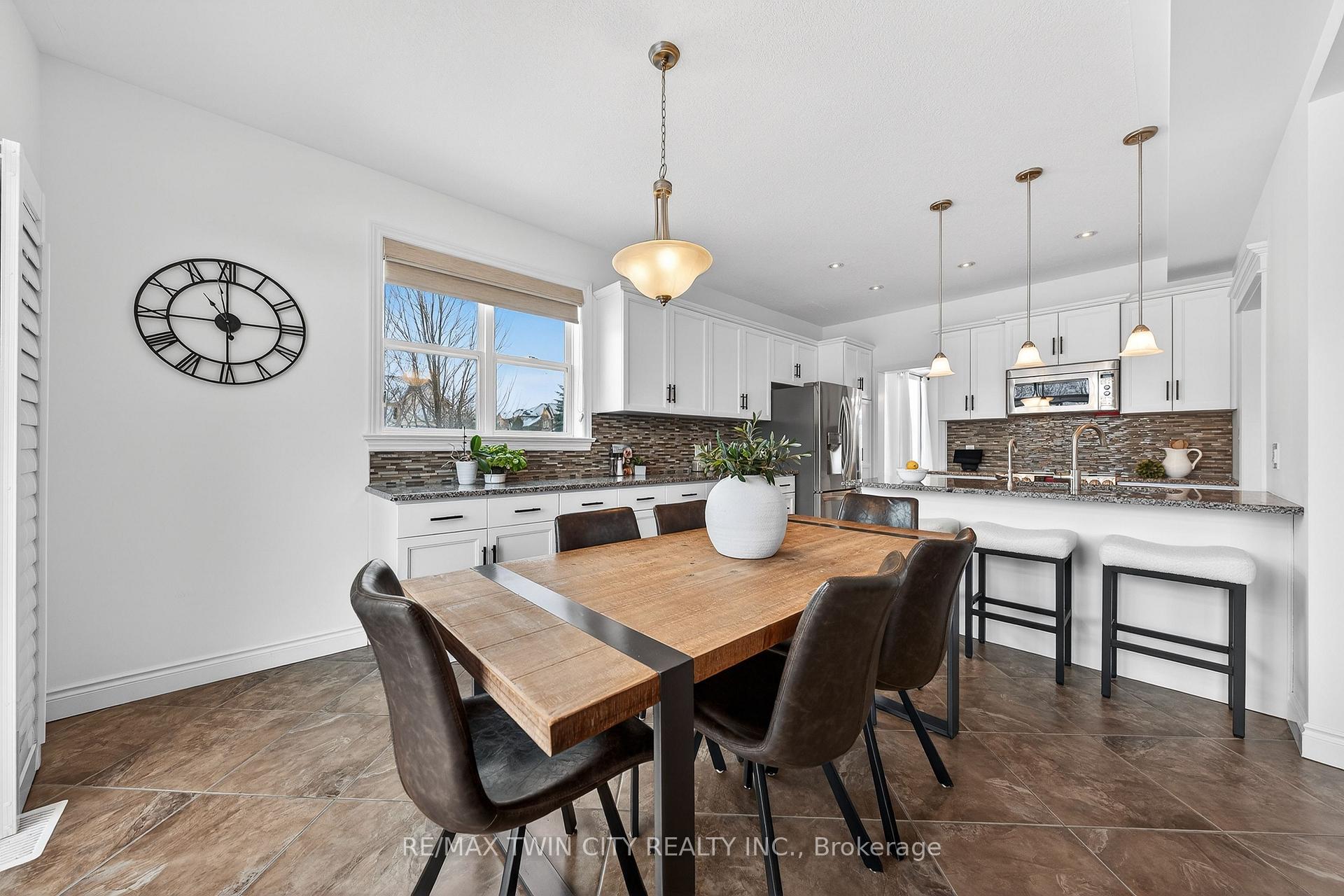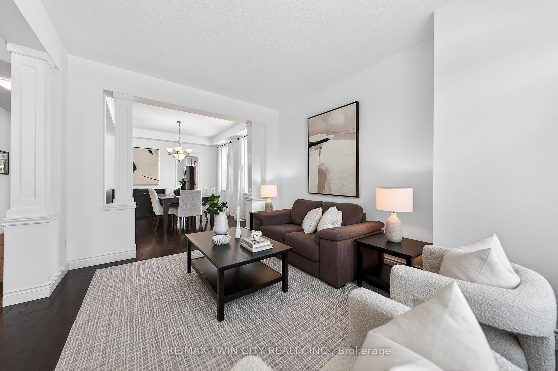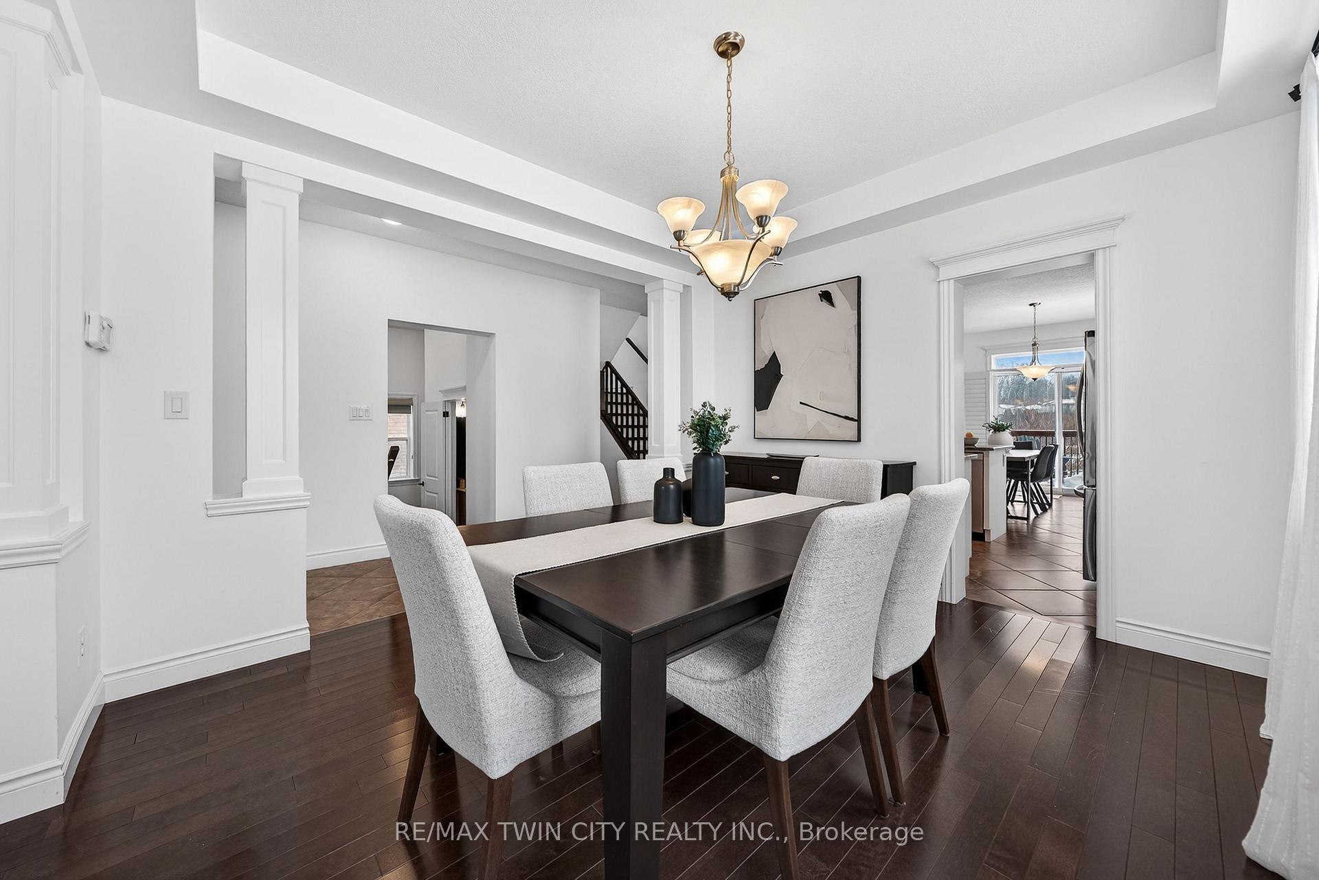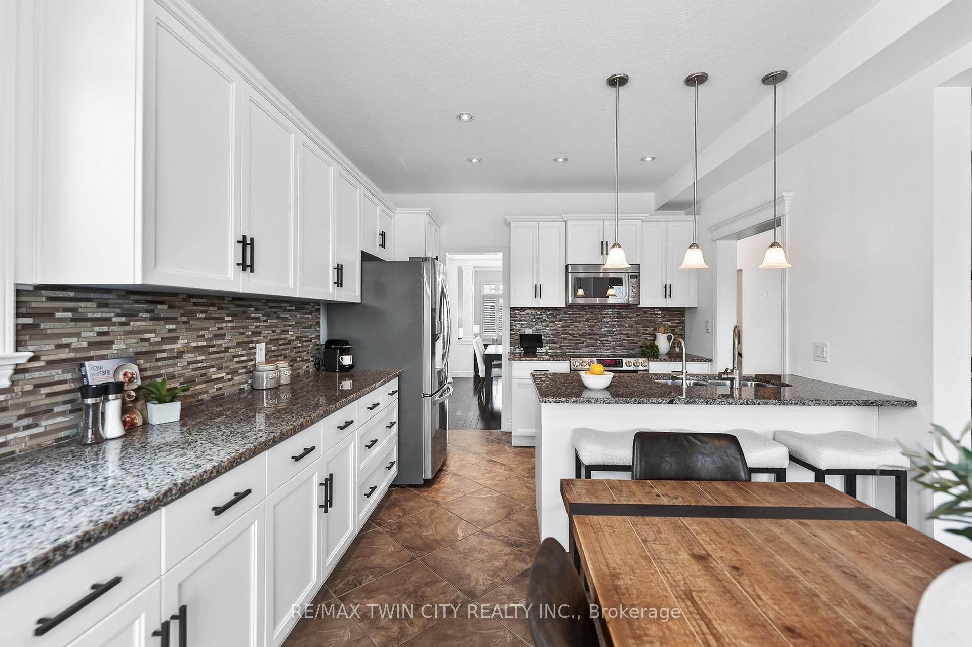 Welcome to 107 Janine Street, perfectly positioned in the heart of Edgewater Estates-one of Kitchener’s most sought-after neighbourhoods. Backing onto a tranquil pond & protected greenbelt, with no rear neighbour & parkland along the right side, this beautifully updated custom-built executive home offers a rare blend of privacy, quiet luxury, & an exceptional natural setting. Offering 2,859 SF with 5-bedrms, & 3-bathrms, this exceptional home is thoughtfully designed for family living & entertaining. The bright main level features formal living & dining spaces that flow into a modern kitchen with granite counters, premium appliances, breakfast bar, abundant cabinetry, & dinette with walkout to the deck. The spacious great rm showcases custom built-ins, gas fireplace with stone surround, & expansive windows with window seat framing the serene views. Hardwood & tile flring run throughout the main level. A well-designed mudrm with oversized walk-in closet & 2-pc bath completes the main flr. Upstairs, the luxurious primary retreat features double-door entry, window seat, walk-in closet, & a spa-like 5-pc ensuite with dual sinks, lrg shower, & soaker tub. 4 additional bedrms & a 4-pc main bathrm completes the upper level. Freshly painted throughout, with hardwood flring in the upper hallway & new carpet in all bedrms. California shutters & custom window coverings throughout. The private backyard is a beautifully landscaped retreat with extensive patio areas, mature trees, perennial gardens, built-in firepit, hot tub, & uninterrupted private pond & greenbelt views. Double-car garage & interlocking driveway-parking for 4. The unfinished lower level is fully framed/roughed-in, easy to finish-incredible future potential. Prime location: steps from Chicopee Ski Hill, the Grand River, parks, trails, top-rated schools, shopping, & quick HWY access (Expressway & 401)-ideal for both commuters & families. Homes like this don’t come along often-don’t miss out!