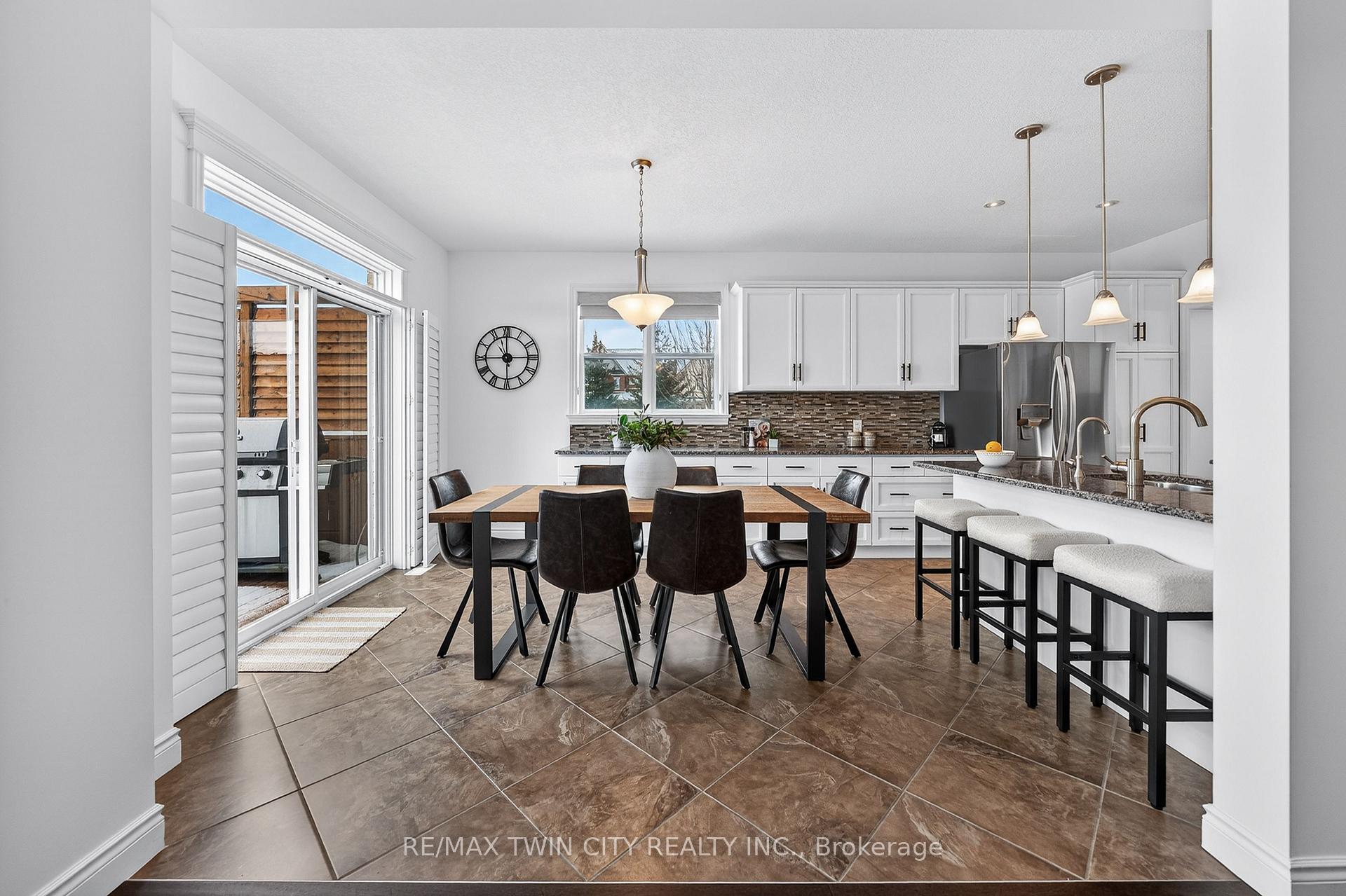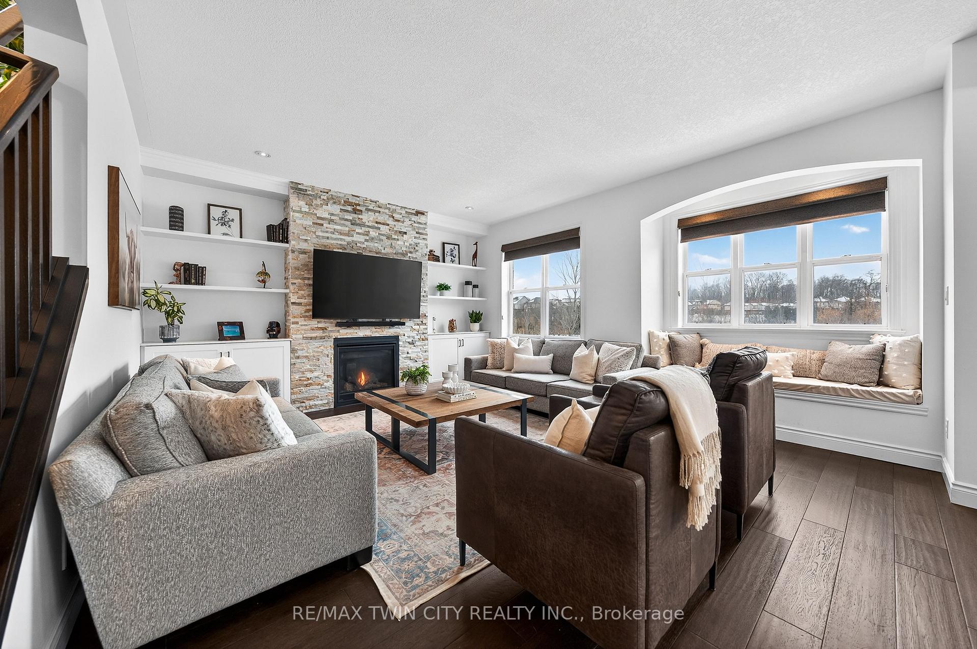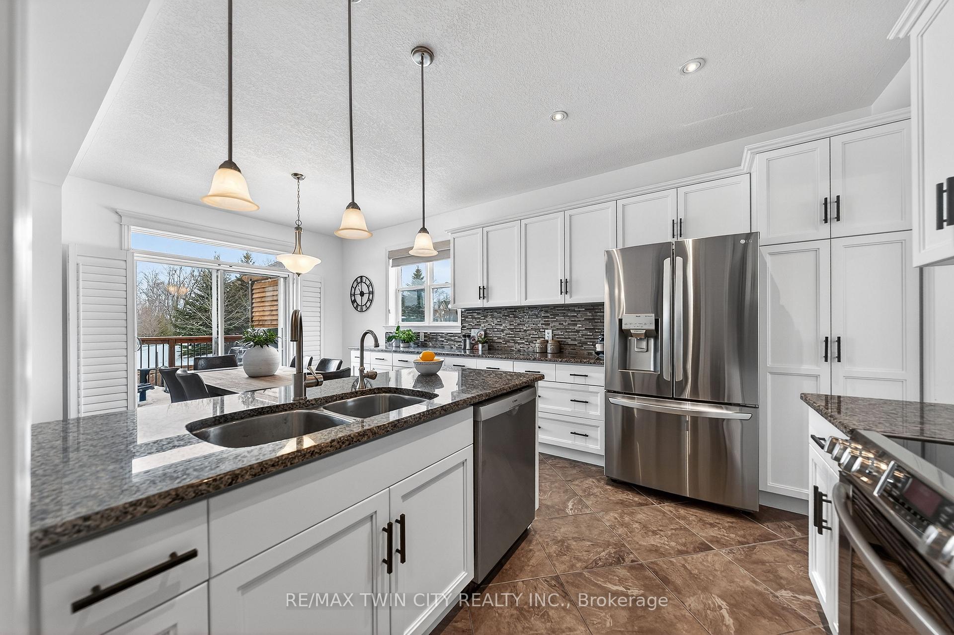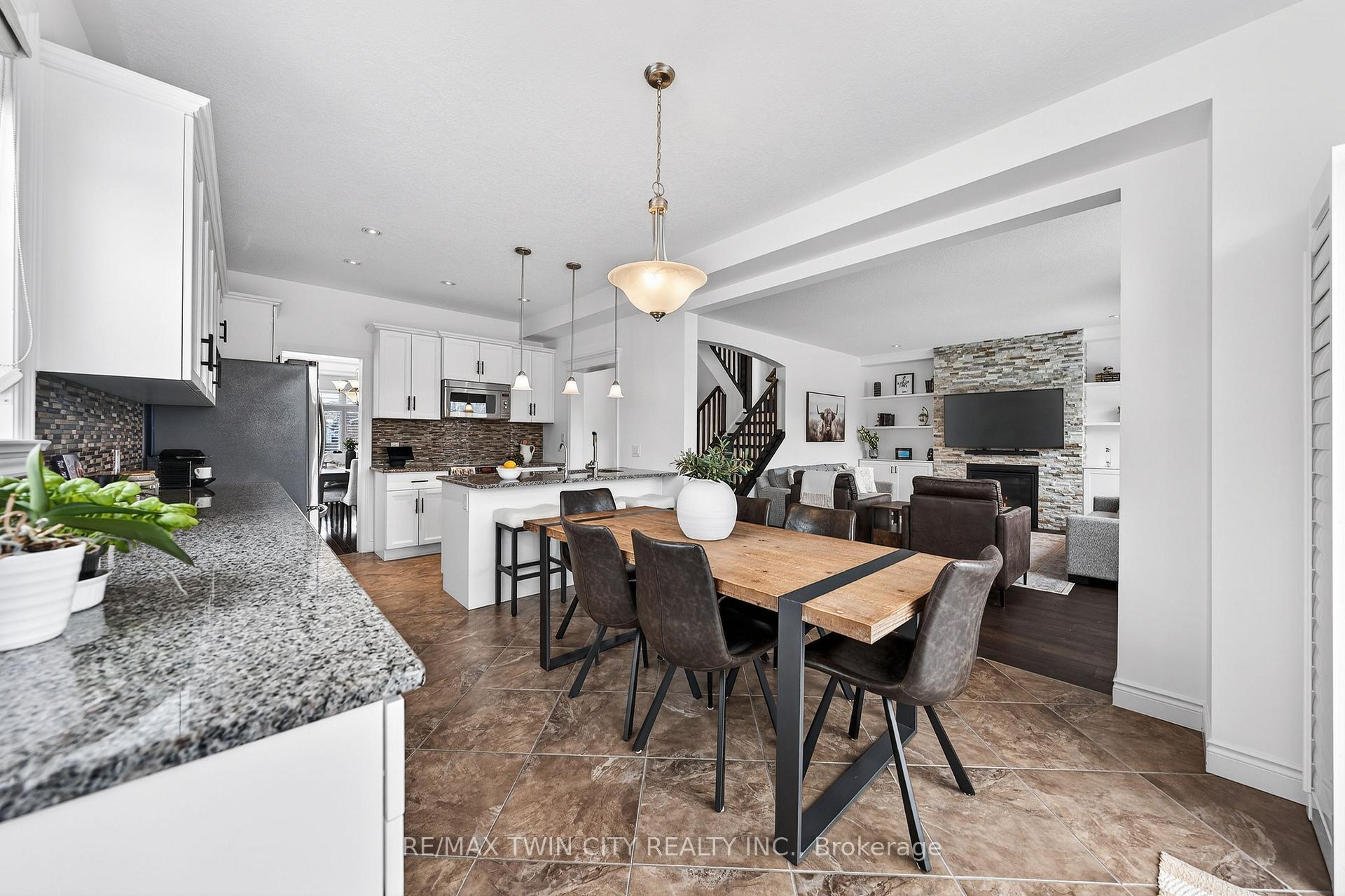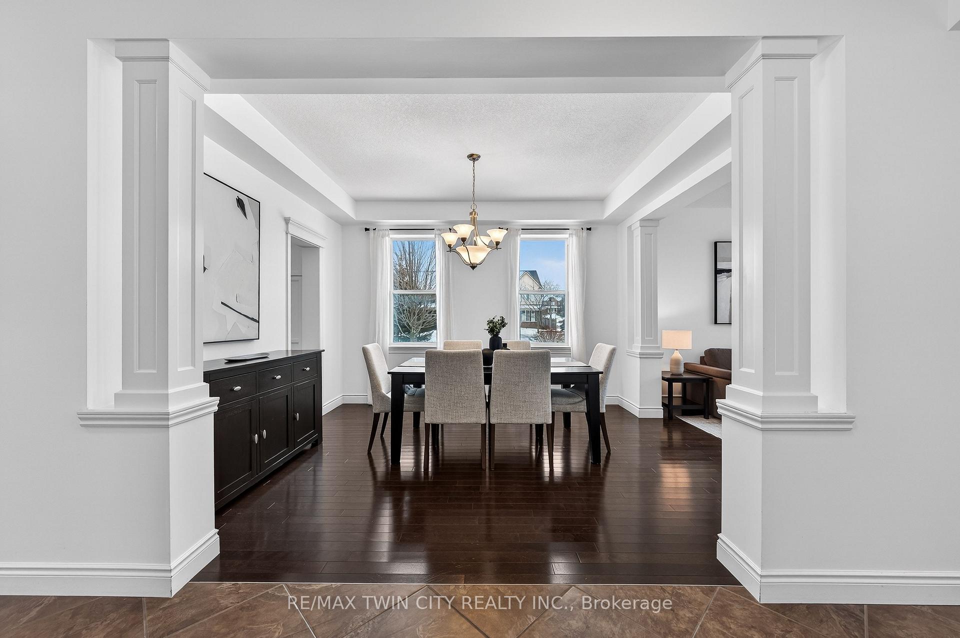 Welcome to 107 Janine Street, perfectly positioned in the heart of Edgewater Estates-one of Kitchener’s most sought-after neighbourhoods. Backing onto a tranquil pond & protected greenbelt, with no rear neighbour & parkland along the right side, this beautifully updated custom-built executive home offers a rare blend of privacy, quiet luxury, & an exceptional natural setting. Offering 2,859 SF with 5-bedrms, & 3-bathrms, this exceptional home is thoughtfully designed for family living & entertaining. The bright main level features formal living & dining spaces that flow into a modern kitchen with granite counters, premium appliances, breakfast bar, abundant cabinetry, & dinette with walkout to the deck. The spacious great rm showcases custom built-ins, gas fireplace with stone surround, & expansive windows with window seat framing the serene views. Hardwood & tile flring run throughout the main level. A well-designed mudrm with oversized walk-in closet & 2-pc bath completes the main flr. Upstairs, the luxurious primary retreat features double-door entry, window seat, walk-in closet, & a spa-like 5-pc ensuite with dual sinks, lrg shower, & soaker tub. 4 additional bedrms & a 4-pc main bathrm completes the upper level. Freshly painted throughout, with hardwood flring in the upper hallway & new carpet in all bedrms. California shutters & custom window coverings throughout. The private backyard is a beautifully landscaped retreat with extensive patio areas, mature trees, perennial gardens, built-in firepit, hot tub, & uninterrupted private pond & greenbelt views. Double-car garage & interlocking driveway-parking for 4. The unfinished lower level is fully framed/roughed-in, easy to finish-incredible future potential. Prime location: steps from Chicopee Ski Hill, the Grand River, parks, trails, top-rated schools, shopping, & quick HWY access (Expressway & 401)-ideal for both commuters & families. Homes like this don’t come along often-don’t miss out!