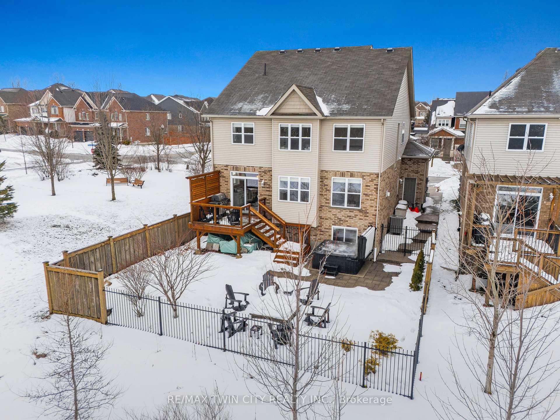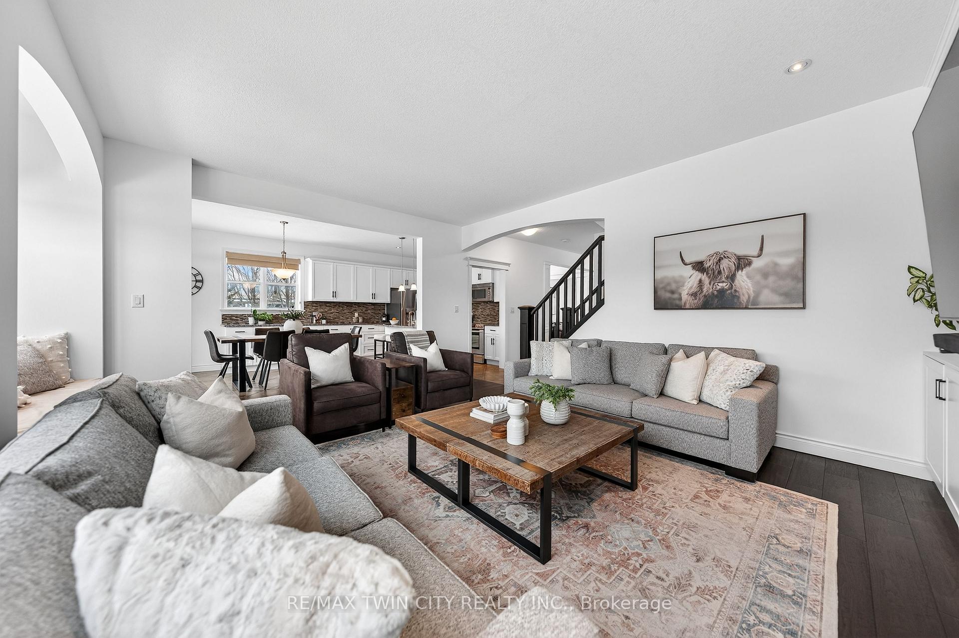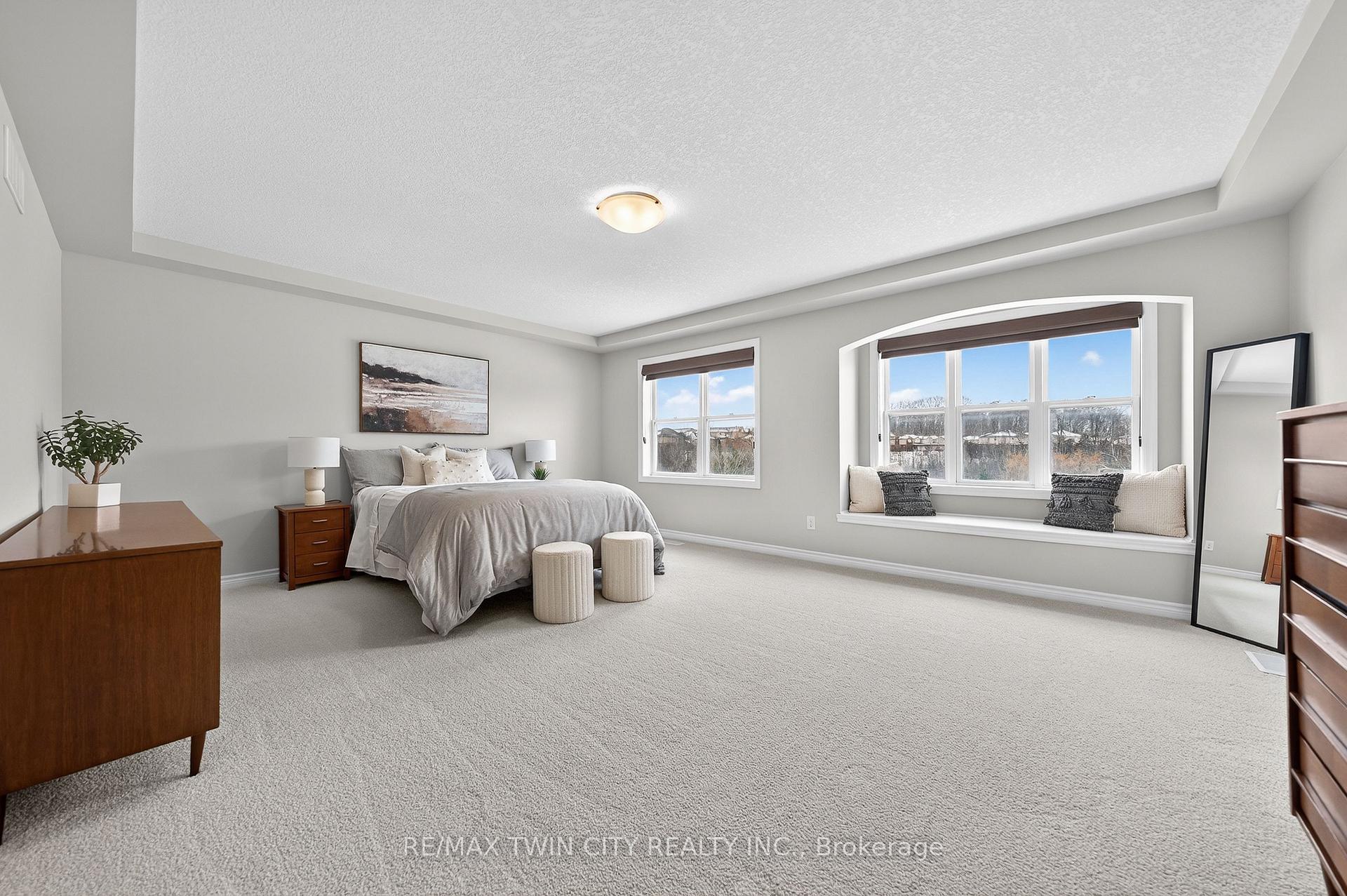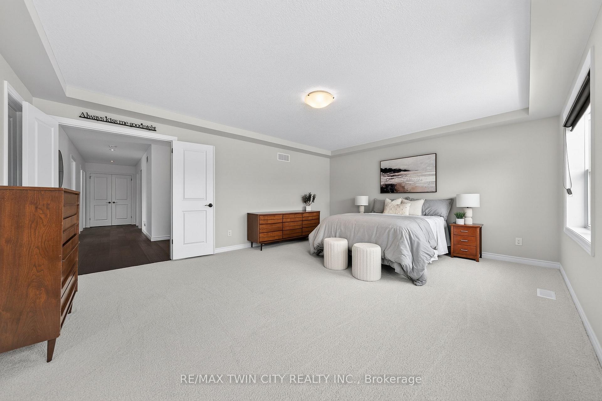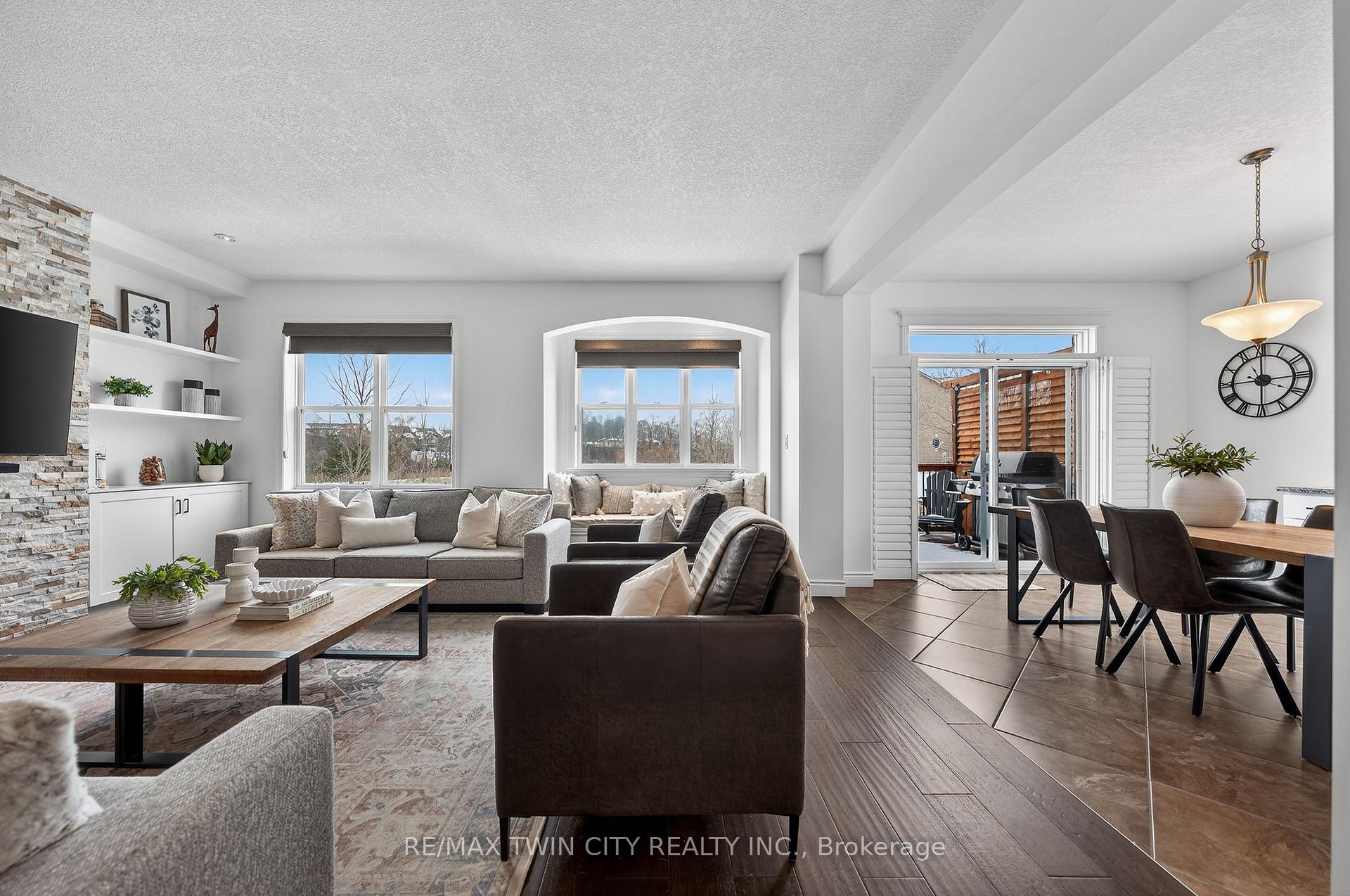Welcome to 107 Janine Street, perfectly positioned in the heart of Edgewater Estates-one of Kitchener’s most sought-after neighbourhoods. Backing onto a tranquil pond & protected greenbelt, with no rear neighbour & parkland along the right side, this beautifully updated custom-built executive home offers a rare blend of privacy, quiet luxury, & an exceptional natural setting. Offering 2,859 SF with 5-bedrms, & 3-bathrms, this exceptional home is thoughtfully designed for family living & entertaining. The bright main level features formal living & dining spaces that flow into a modern kitchen with granite counters, premium appliances, breakfast bar, abundant cabinetry, & dinette with walkout to the deck. The spacious great rm showcases custom built-ins, gas fireplace with stone surround, & expansive windows with window seat framing the serene views. Hardwood & tile flring run throughout the main level. A well-designed mudrm with oversized walk-in closet & 2-pc bath completes the main flr. Upstairs, the luxurious primary retreat features double-door entry, window seat, walk-in closet, & a spa-like 5-pc ensuite with dual sinks, lrg shower, & soaker tub. 4 additional bedrms & a 4-pc main bathrm completes the upper level. Freshly painted throughout, with hardwood flring in the upper hallway & new carpet in all bedrms. California shutters & custom window coverings throughout. The private backyard is a beautifully landscaped retreat with extensive patio areas, mature trees, perennial gardens, built-in firepit, hot tub, & uninterrupted private pond & greenbelt views. Double-car garage & interlocking driveway-parking for 4. The unfinished lower level is fully framed/roughed-in, easy to finish-incredible future potential. Prime location: steps from Chicopee Ski Hill, the Grand River, parks, trails, top-rated schools, shopping, & quick HWY access (Expressway & 401)-ideal for both commuters & families. Homes like this don’t come along often-don’t miss out!