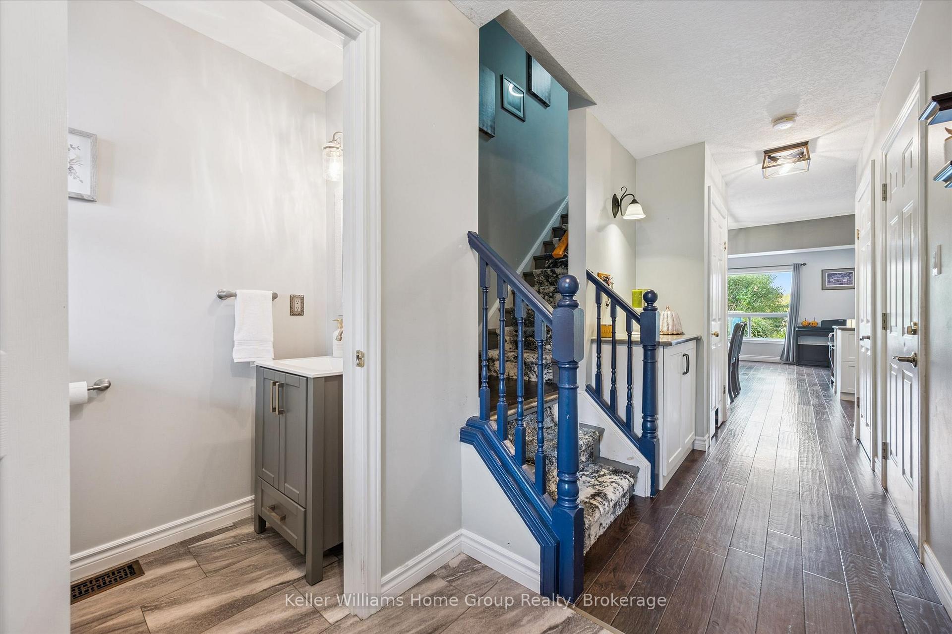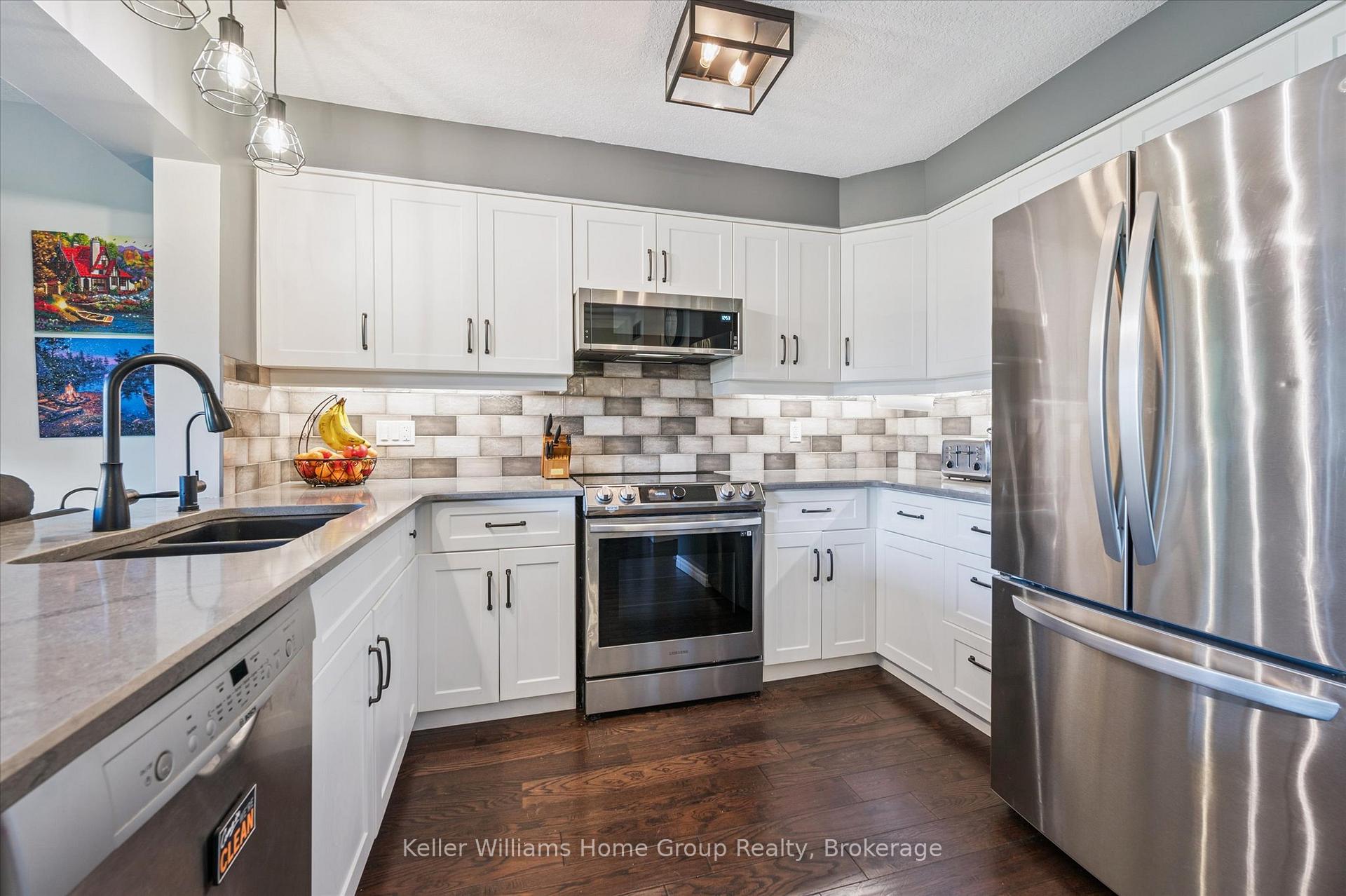This cute townhome with a redesigned kitchen and open concept main floor is located in a wonderful North Fergus neighbourhood close to schools, shopping, trails and parks. Set on a deep lot backing onto farmland and surrounded by mature trees, this home offers a fabulous opportunity to build equity in a wonderful location. Inside, you will find an open, carpet free main floor with 2-piece bathroom, a newly updated kitchen, spacious dining area and a living area filled with natural light. The private backyard is perfect for outdoor enjoyment. Upstairs, you will find a very generous primary bedroom, two additional bedrooms, and a 4 piece bathroom. Downstairs, the basement has been partially finished including a 3-piece bathroom. This townhome offers comfort, convenience and incredible value in a fabulous neighbourhood.