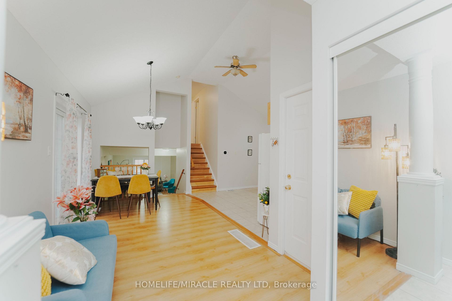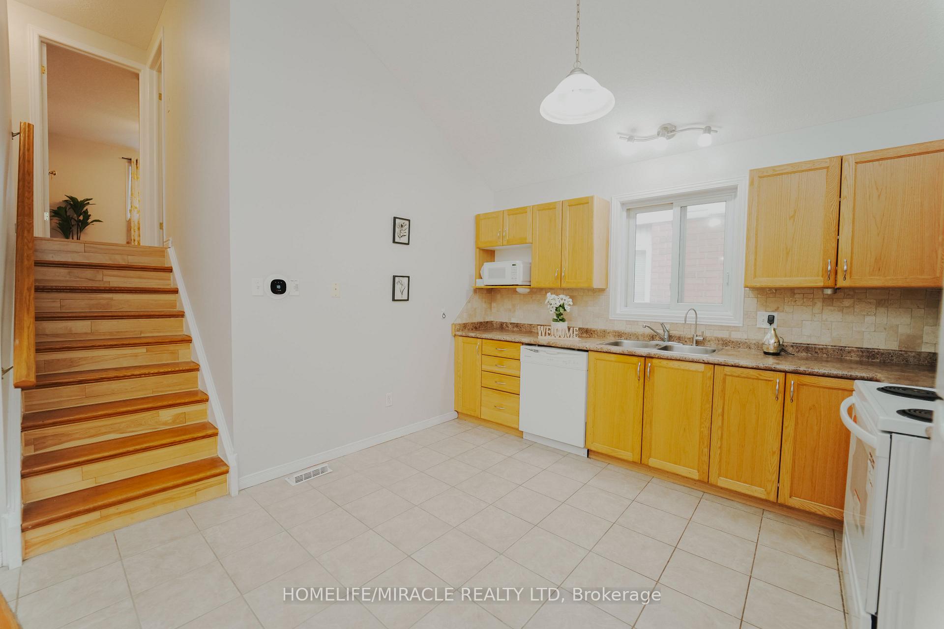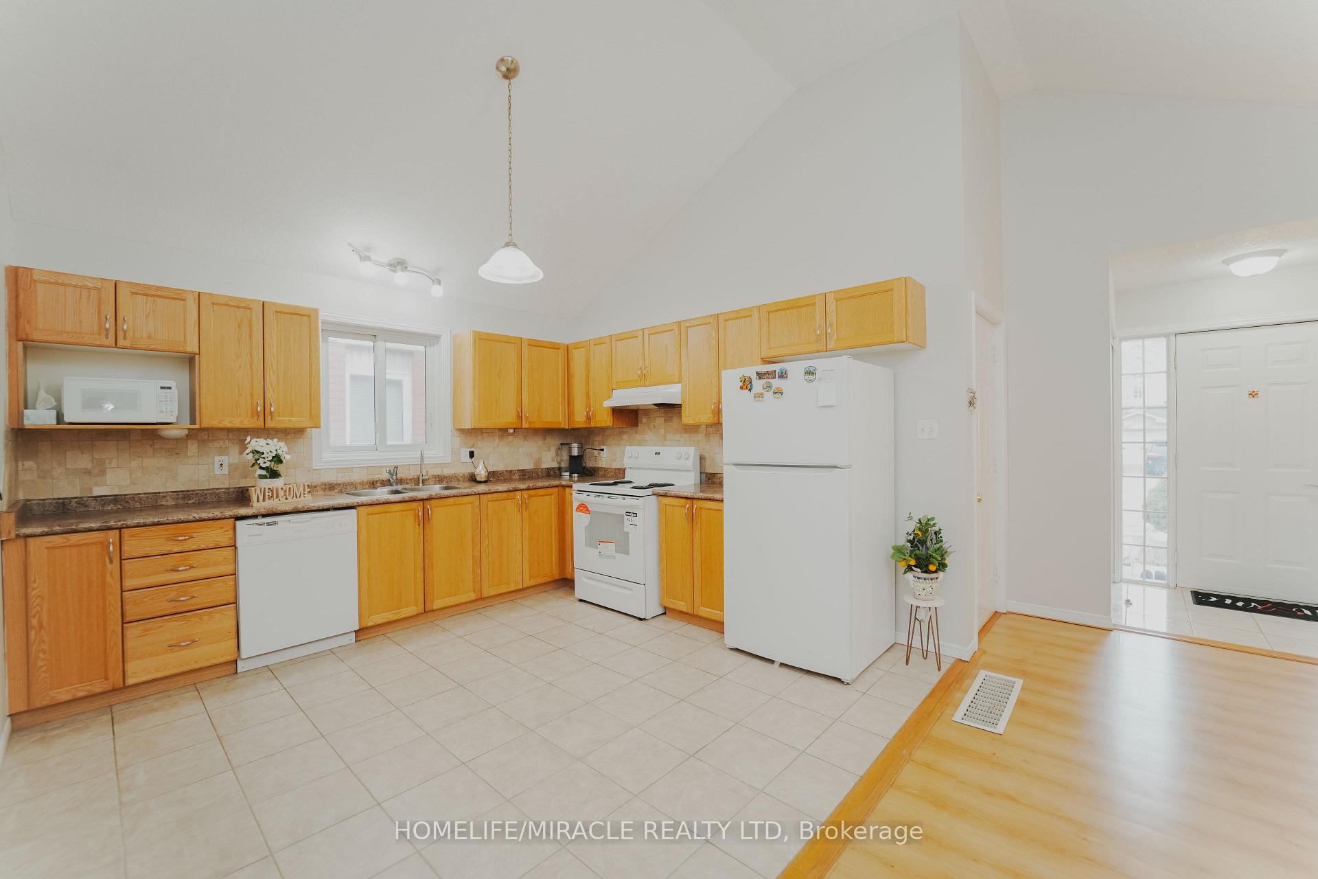 Charming & move-in-ready 3-bedroom backsplit with finished basement detached home in a quiet, family-friendly neighborhood. Surrounded by amenities and steps from schools, shops, and green space, this home offers comfort, space, and convenience. Rare floor plan with less stairs in the neighbourhood. Cathedral ceiling on main level and spacious living/dining area where large windows fill the space with natural light, complemented by beautiful hardwood floors throughout and an open dining area ideal for family dinners and entertaining. The open-concept kitchen blends style and function with wooden cabinetry, tile backsplash, double sink under a large window, and all appliances included-gas stove, dishwasher, and microwave-making everyday living effortless. Up a few steps are three generous bedrooms, each with ample closet space, hardwood flooring, large windows, and neutral tones. Two full 3-piece washrooms include a well-appointed bath with tub/shower, oversized vanity, and tile flooring. The finished basement features a rec room with hardwood flooring, perfect for a home theatre, games room, gym, or play area. Enjoy the private, fully fenced backyard-ideal for BBQing, gardening, or watching kids and pets play freely. Located on a quiet street with minimal traffic, just around the corner from a shopping center with groceries, pharmacy, and dining, a short stroll to a public school, and minutes to charming restaurants and boutiques, this home offers an ideal mix of space, privacy, and everyday convenience.